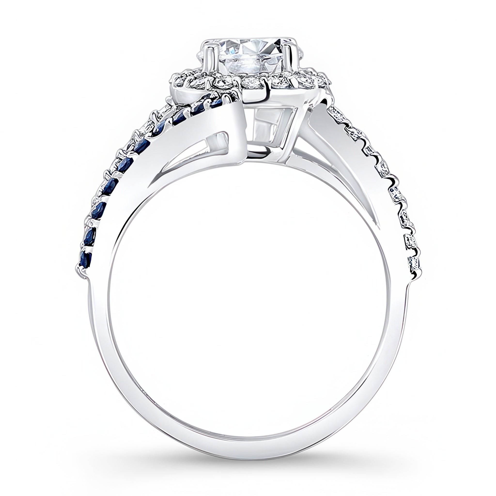 Contemporary Blue Sapphire Accent Moissanite Engagement Ring