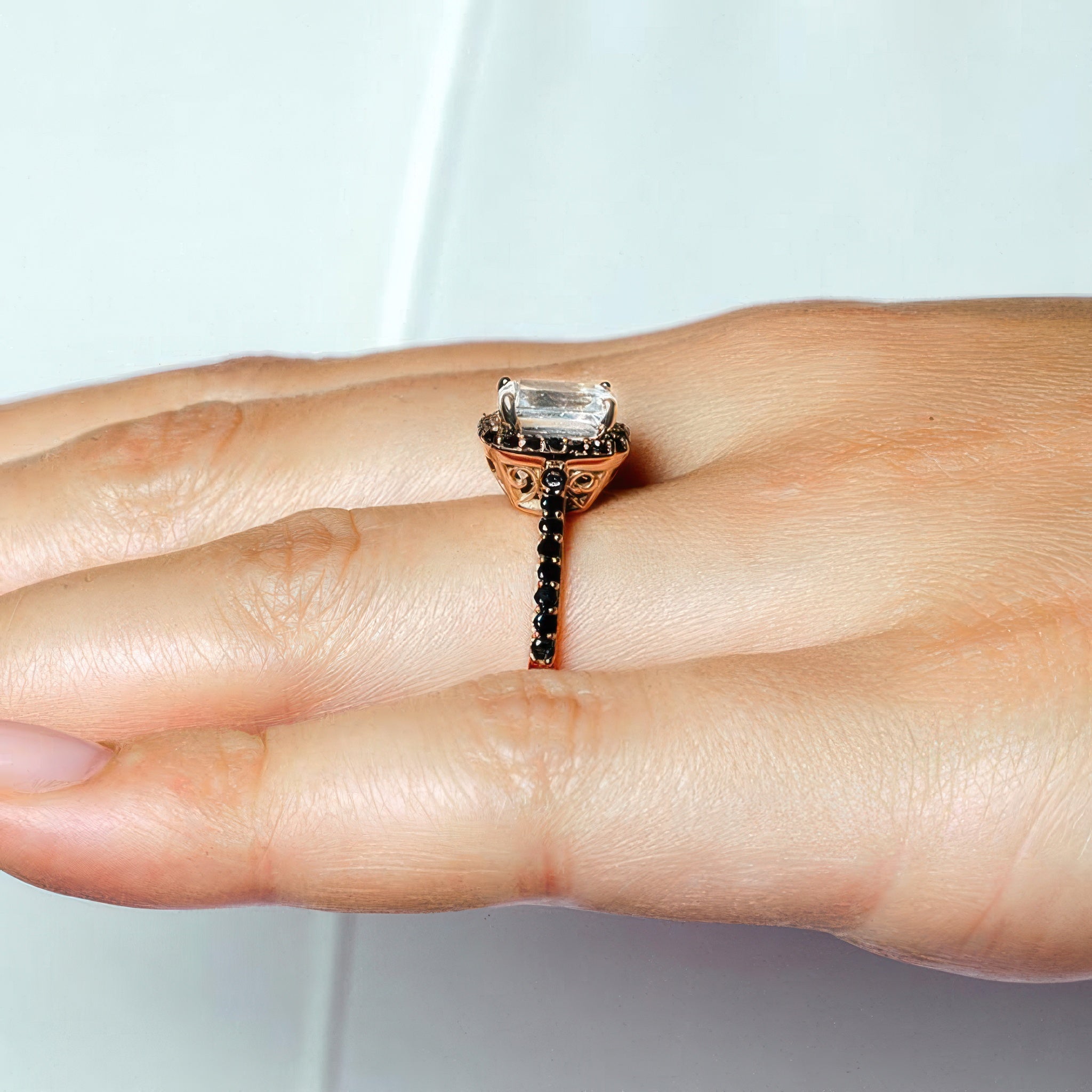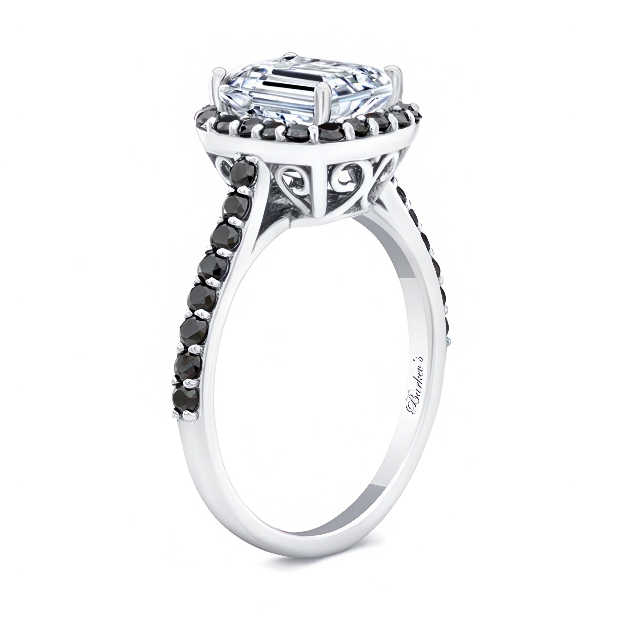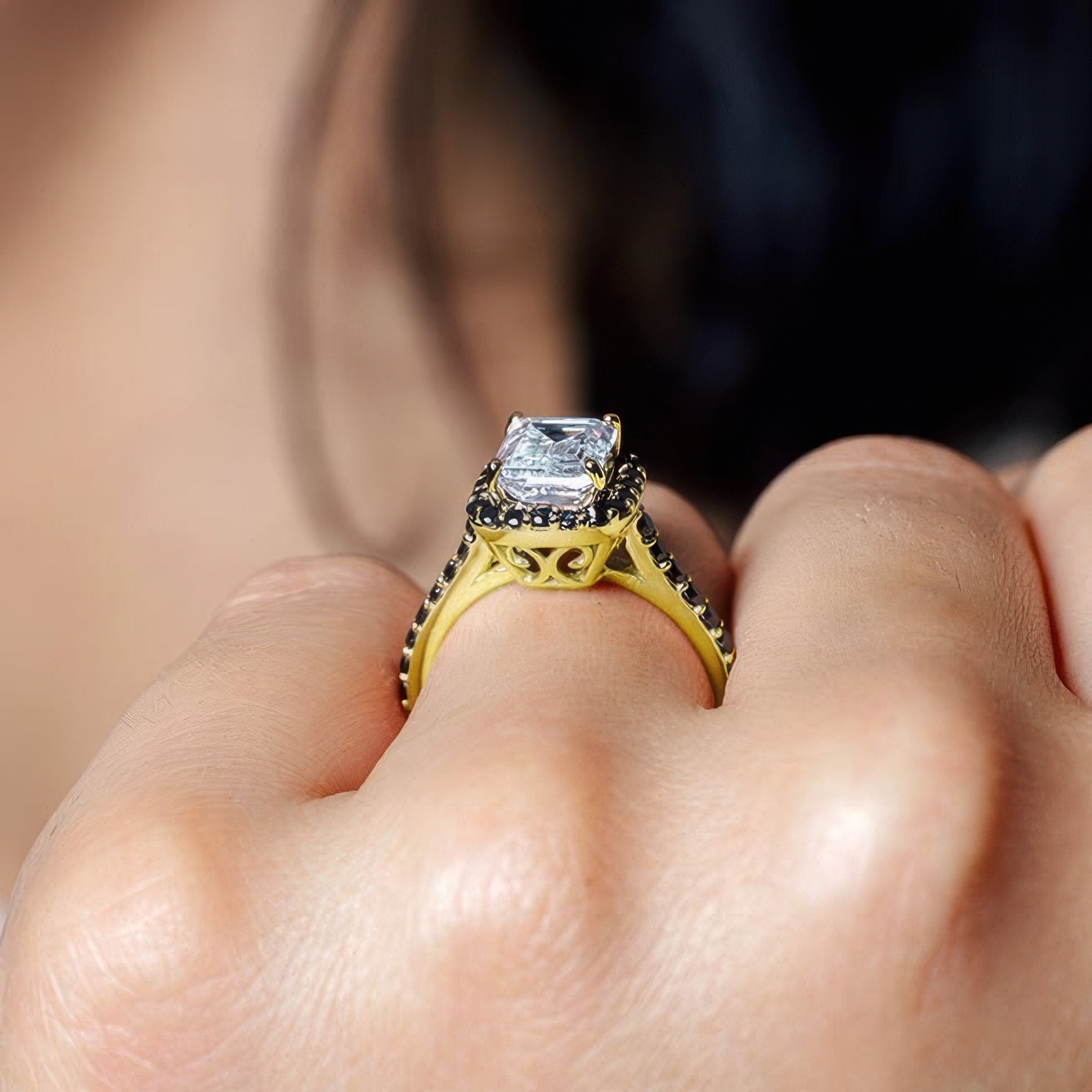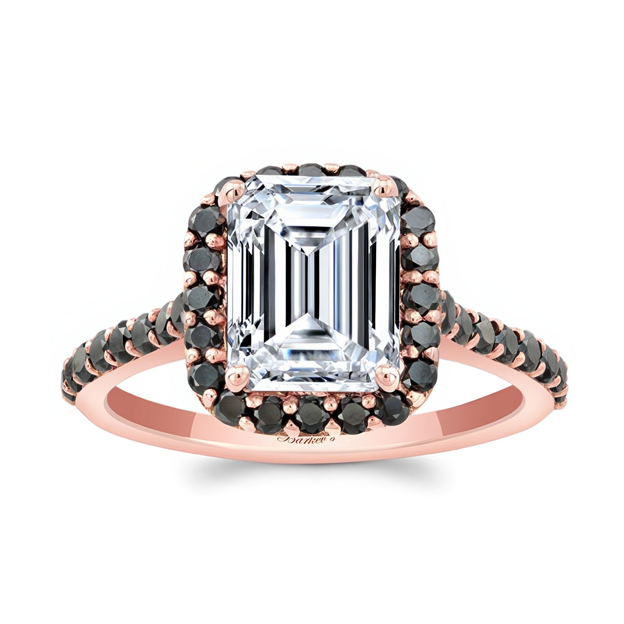 Emerald Cut Moissanite Halo Ring With Black Diamonds
