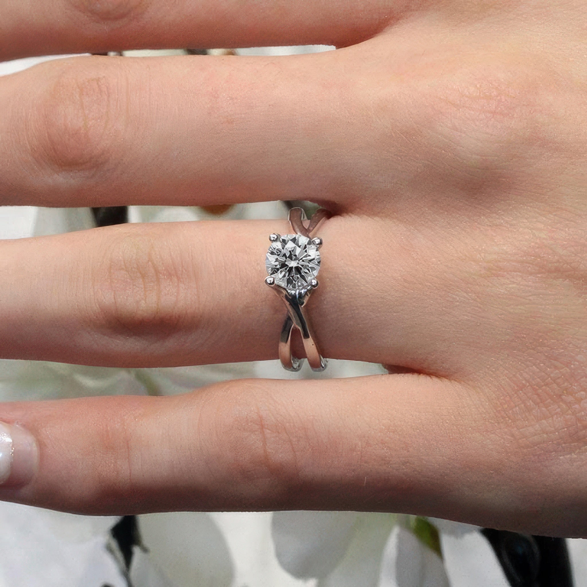 Four Prong Split Shank Moissanite Solitaire Ring