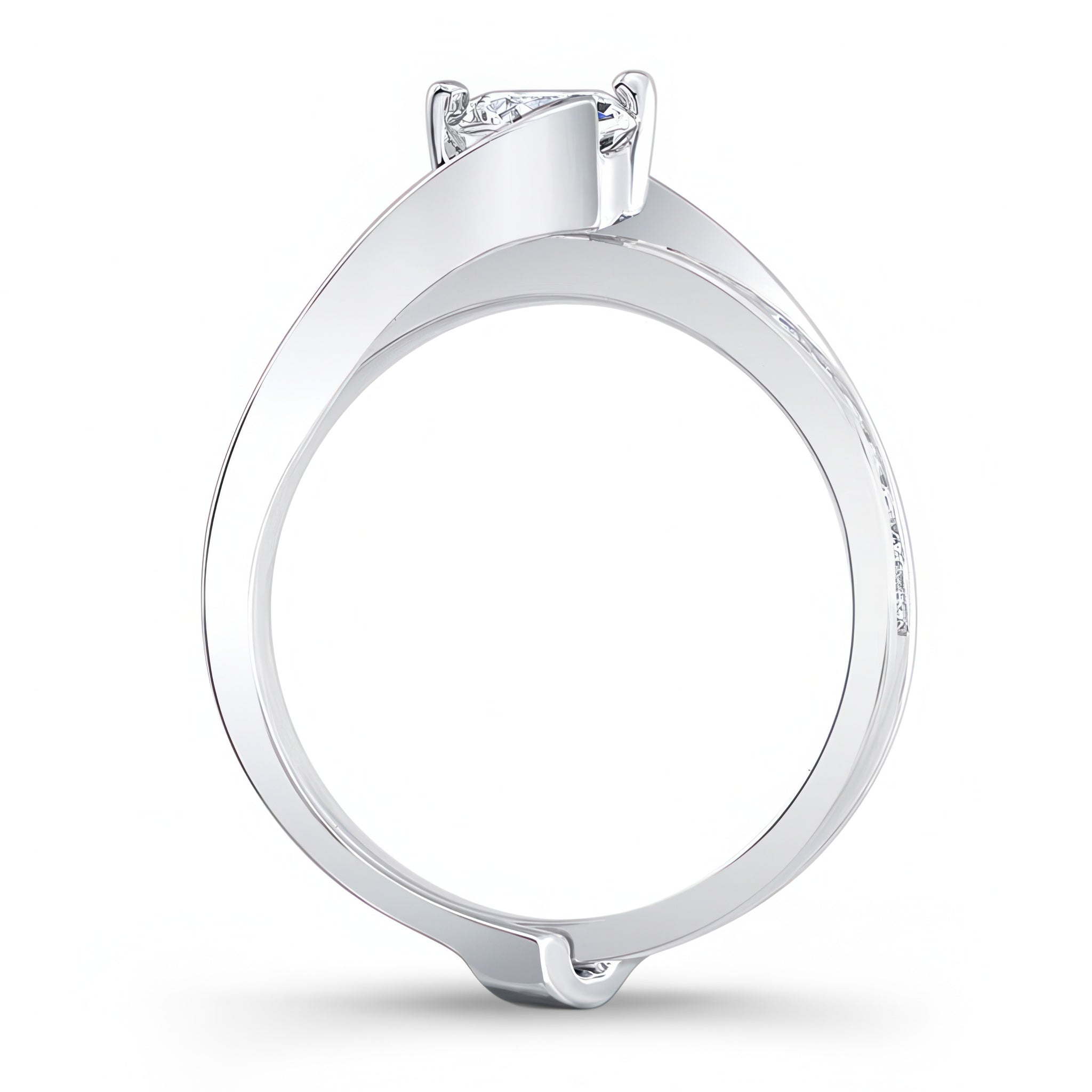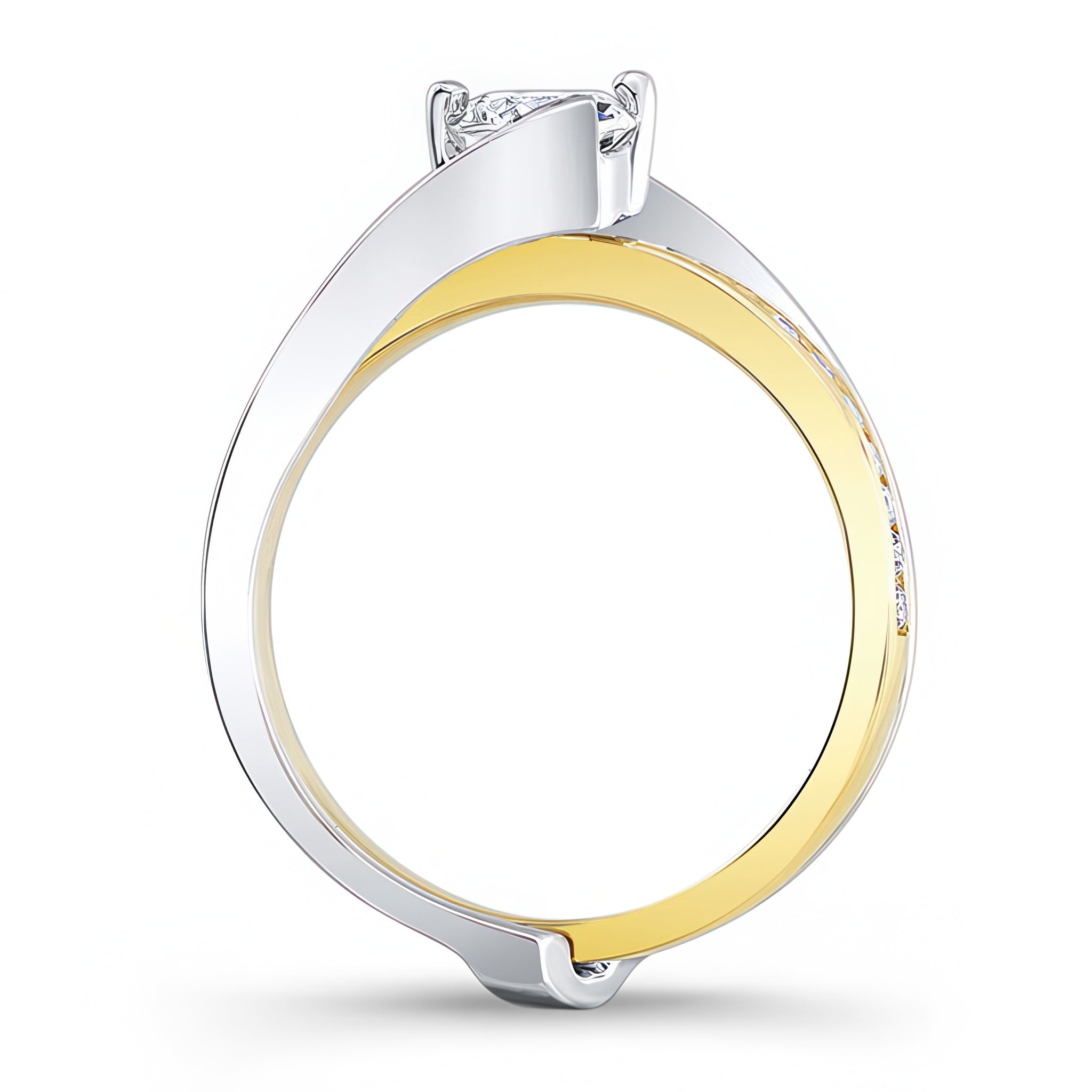 Capture the moment with this half carat moissanite interlock bridal set featuring a half prong half channel set round center with an interlocking channel set diamond wedding band.