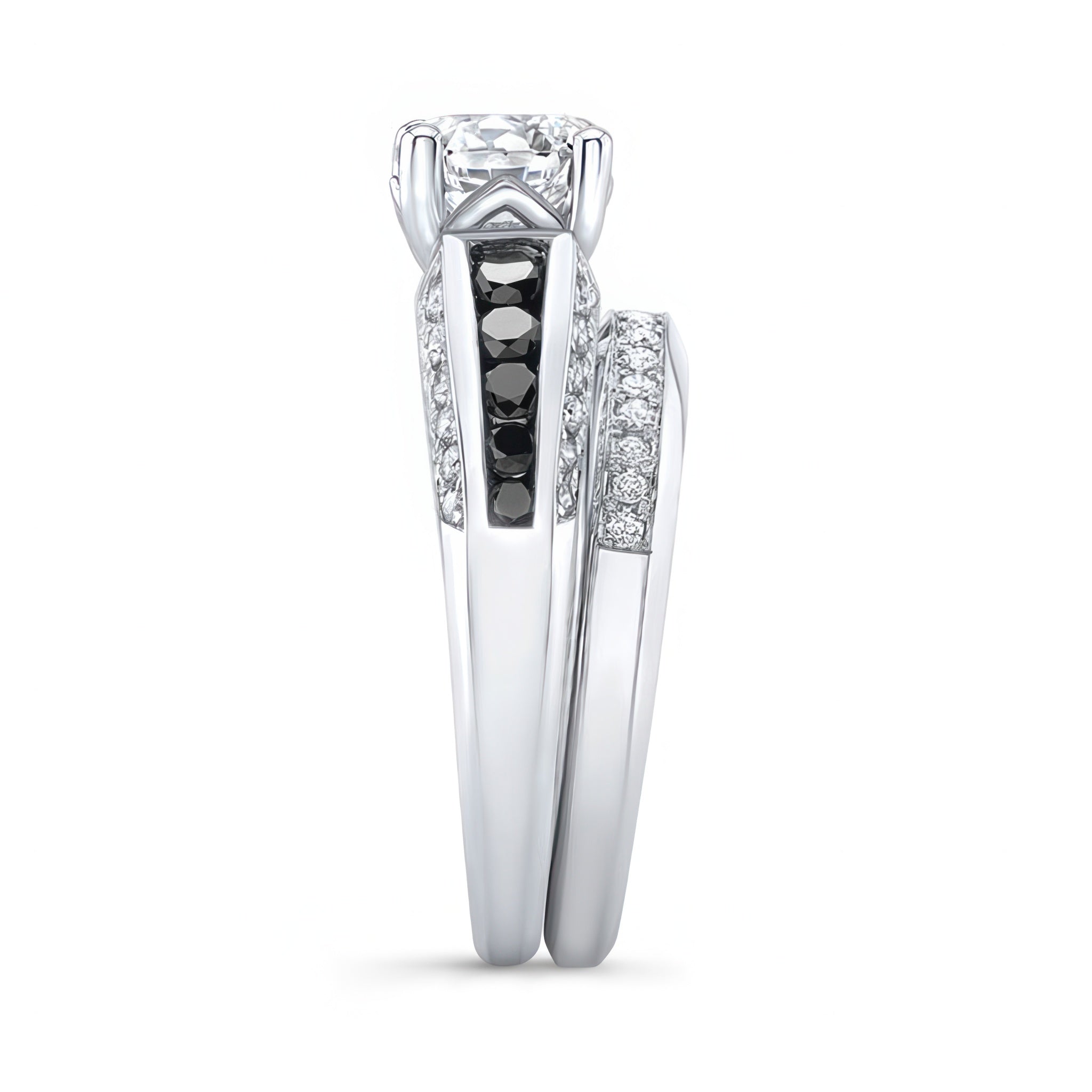 Moissanite Channel Set Wedding Ring Set With Black Diamonds