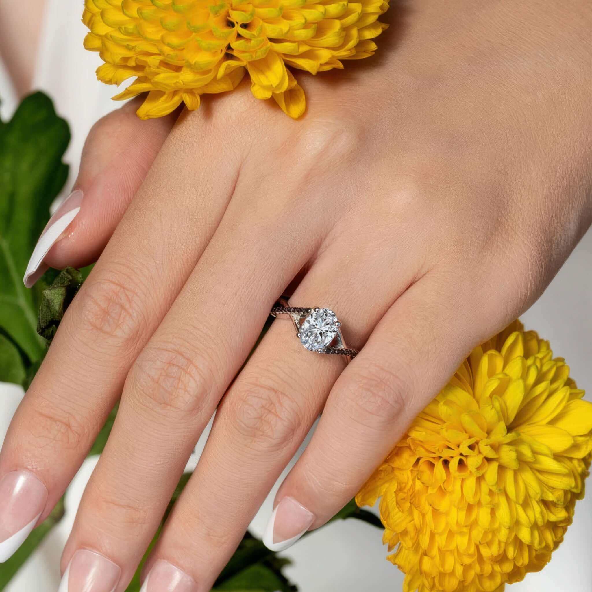 One Carat Oval Moissanite Black Diamond Accent Ring