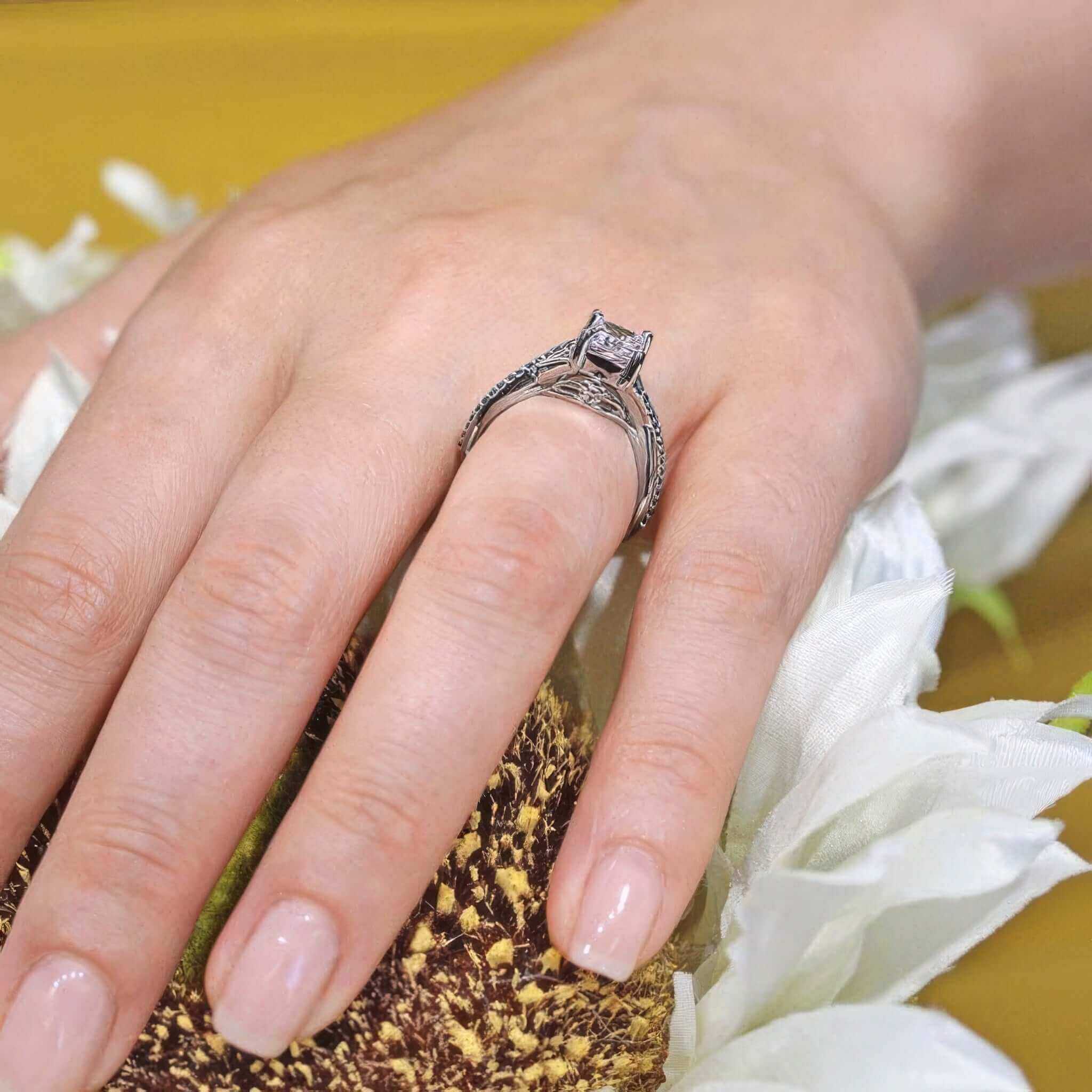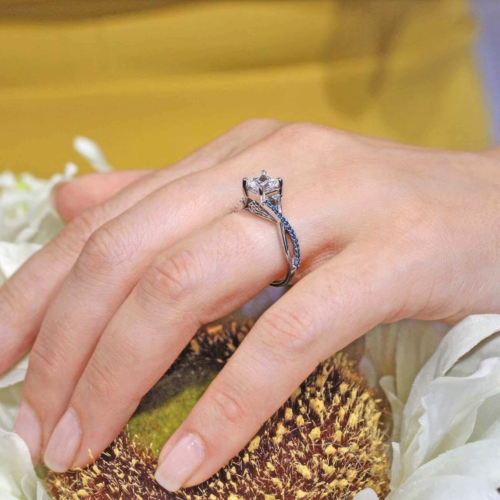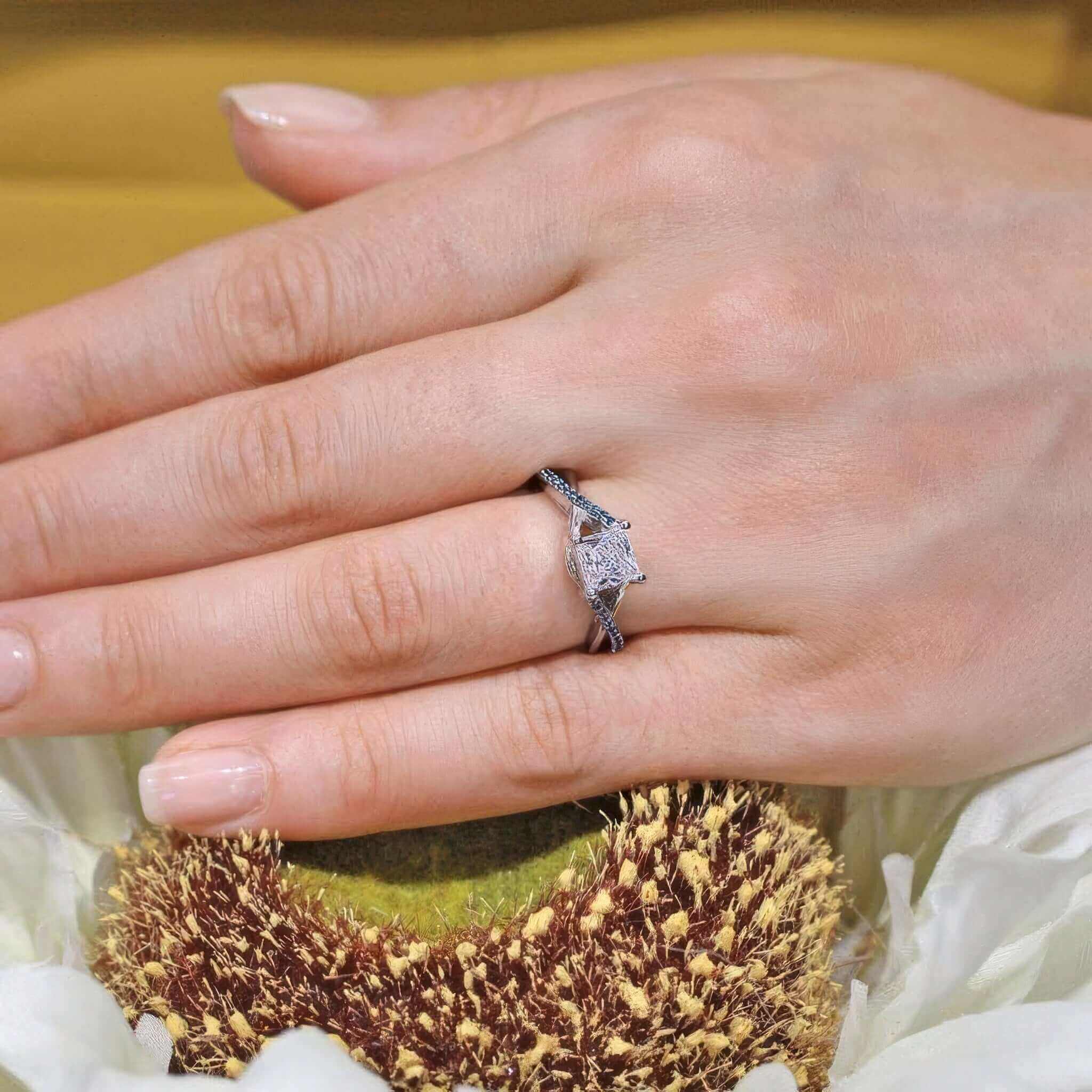One Carat Princess Cut Moissanite Blue Diamond Accent Ring