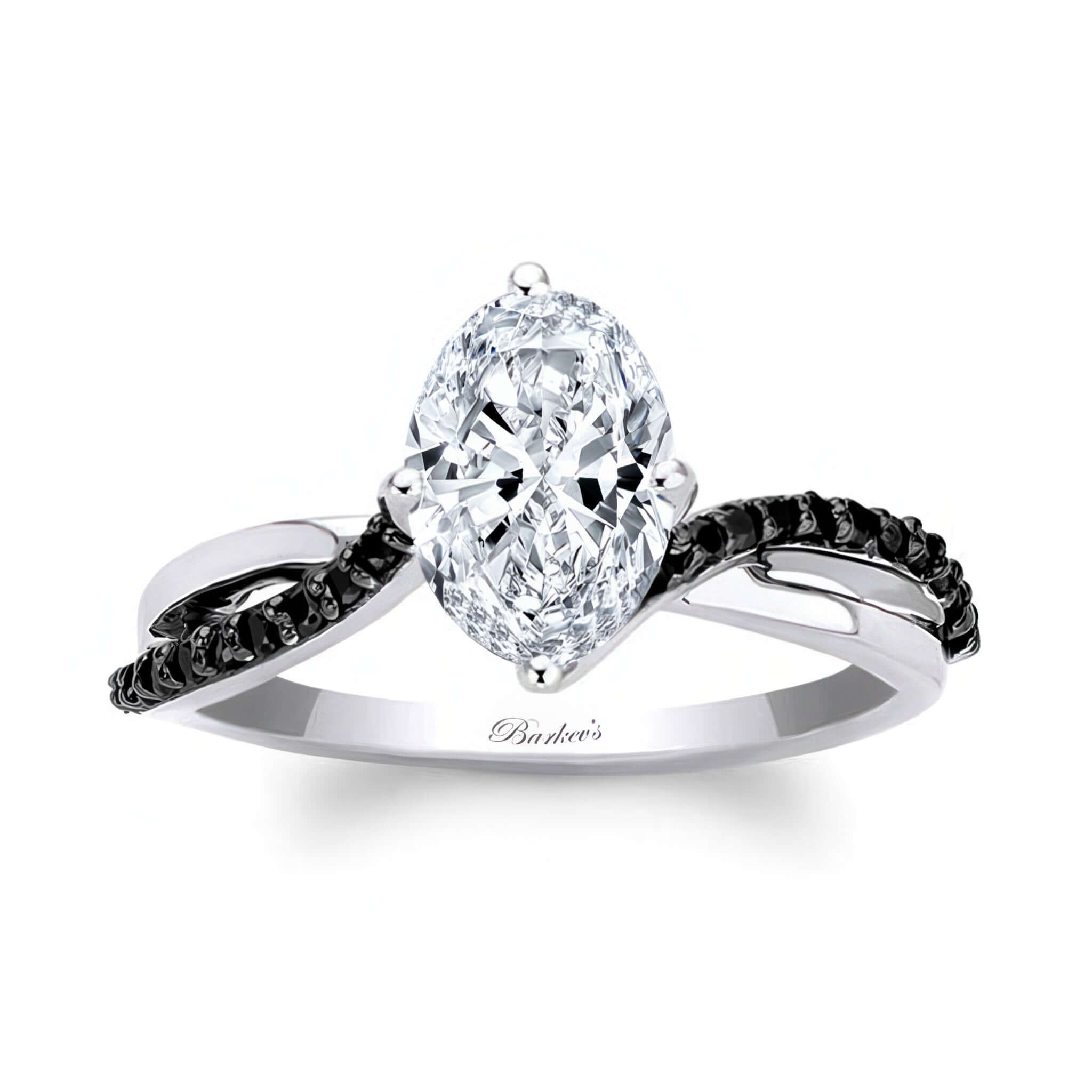 This oval moissanite black diamond accent ring with twisted band features open curving shoulders with an oval center and a shank adorned with shared-prong set black diamonds for a subtle sparkle that will draw the eye.