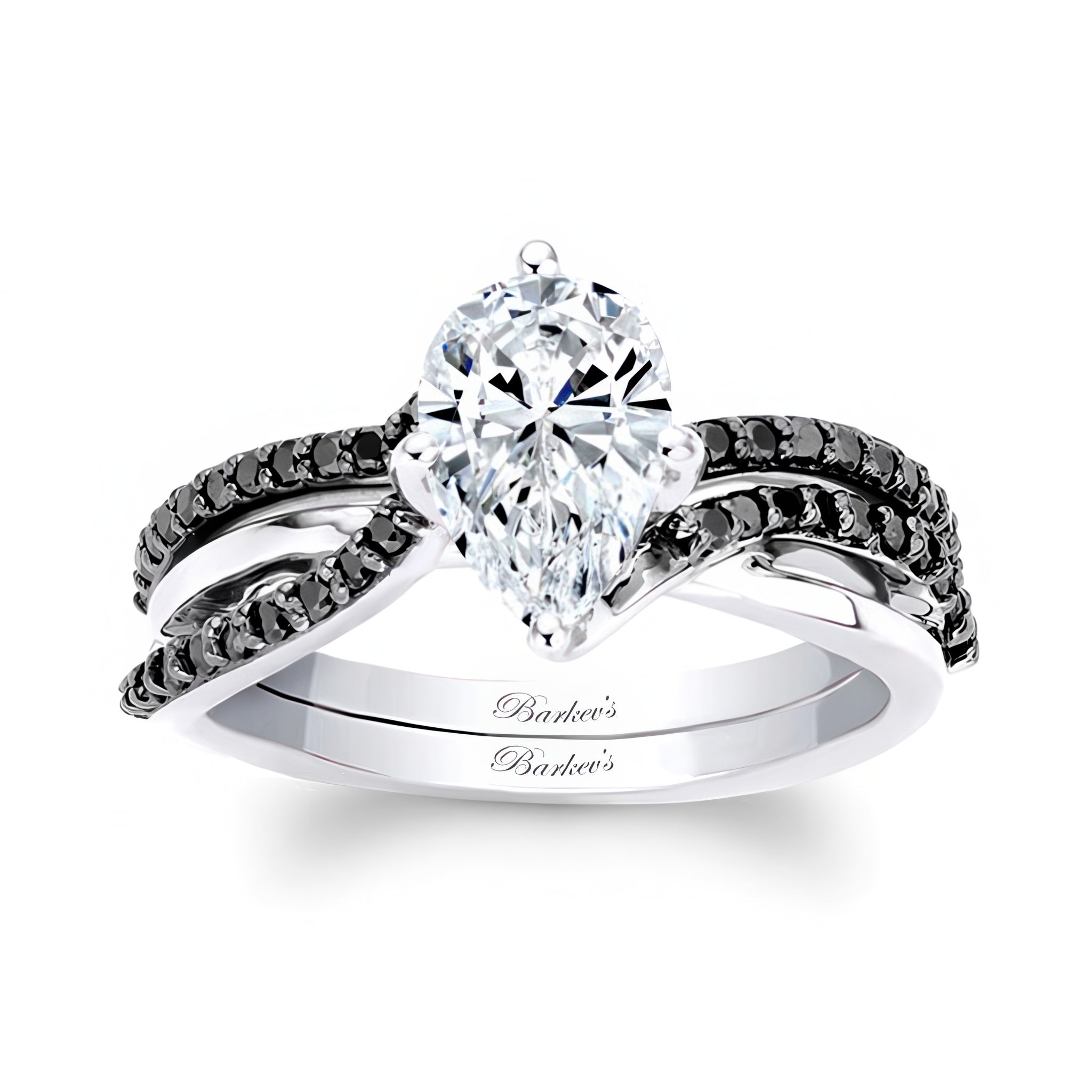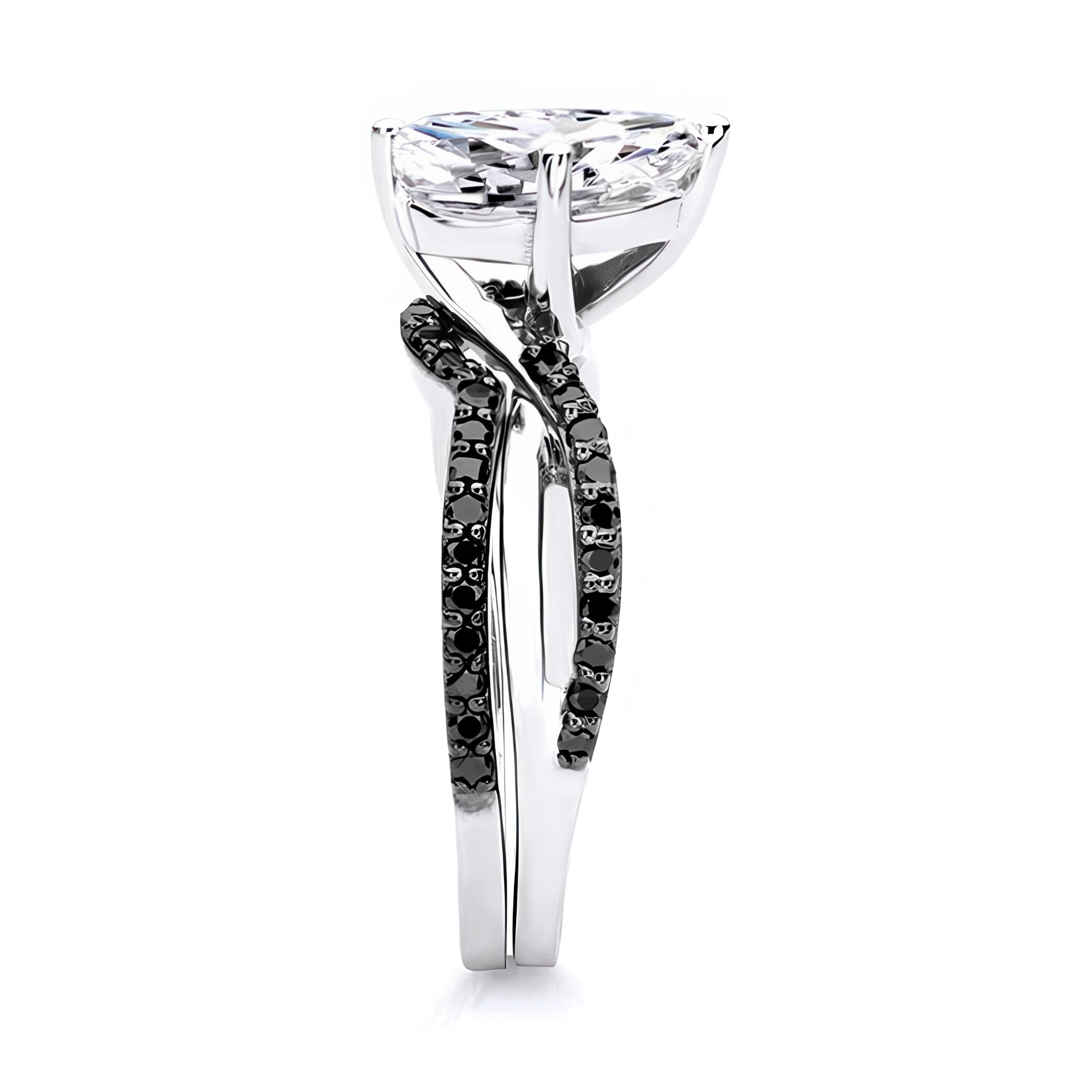 Pear Shaped Moissanite Black Diamond Accent Twist Bridal Set