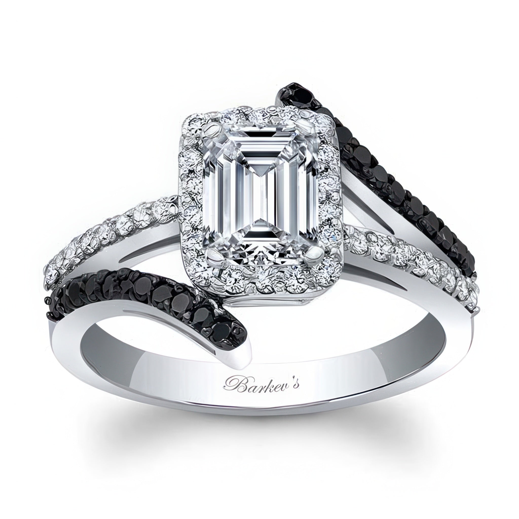 Rectangle Halo Moissanite Engagement Ring With Black Diamonds