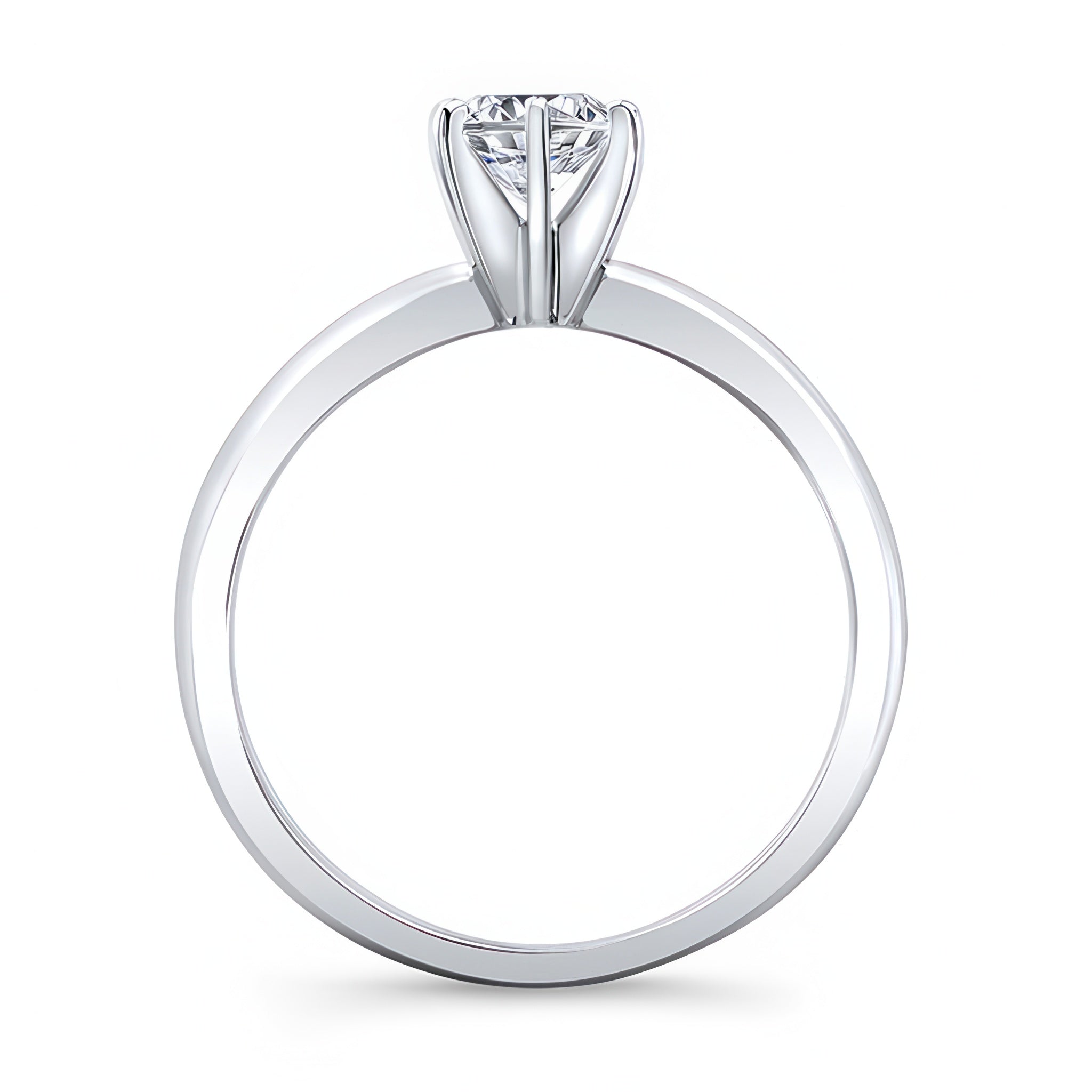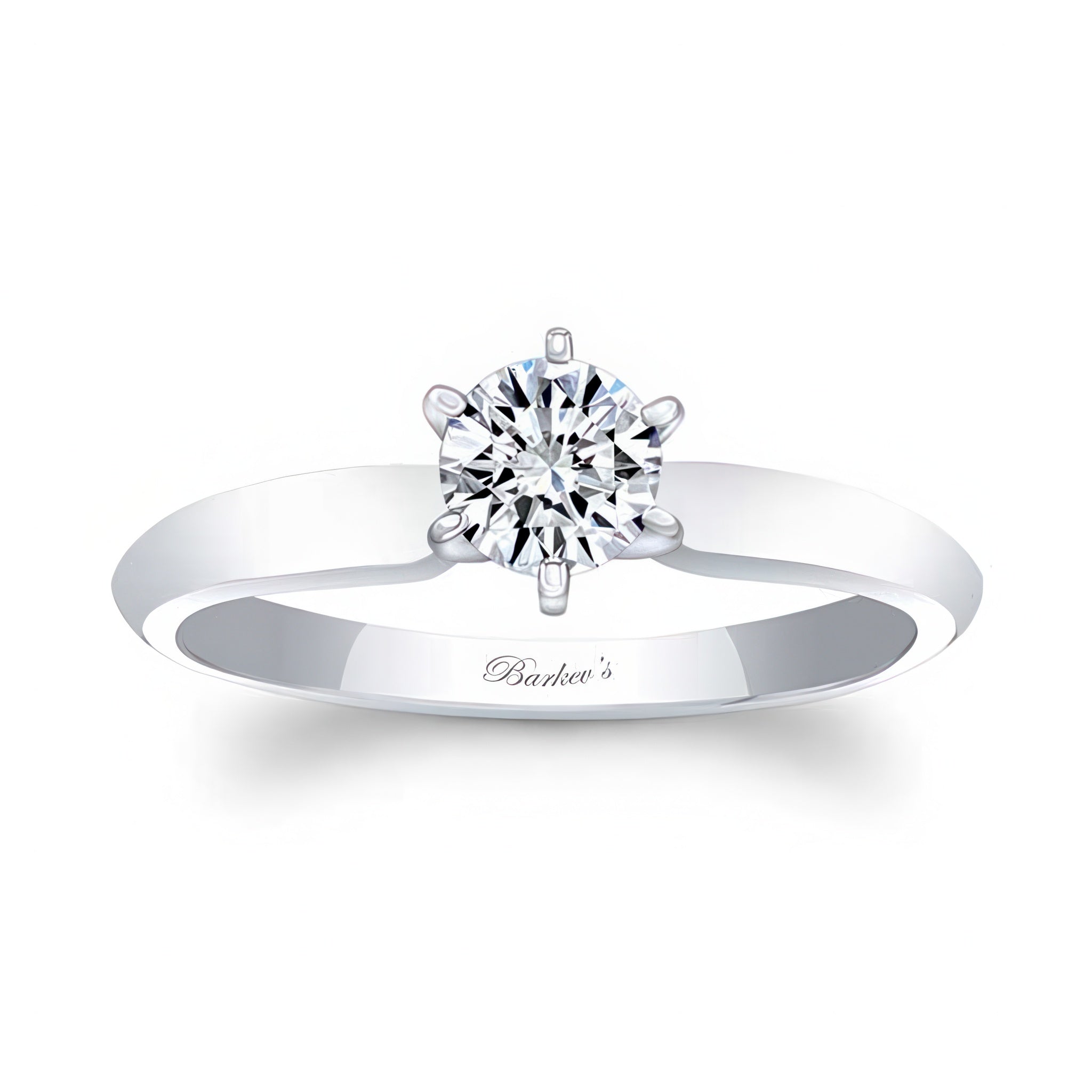 This six prong solitaire moissanite engagement ring features a half carat center and the classic six prong solitaire setting that delivers brilliance at an extremely affordable price.