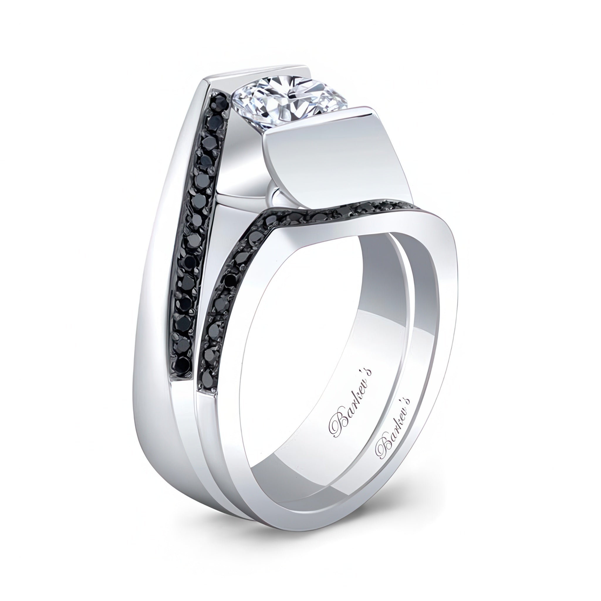 Tension Setting Black Diamond Accent Moissanite Bridal Set