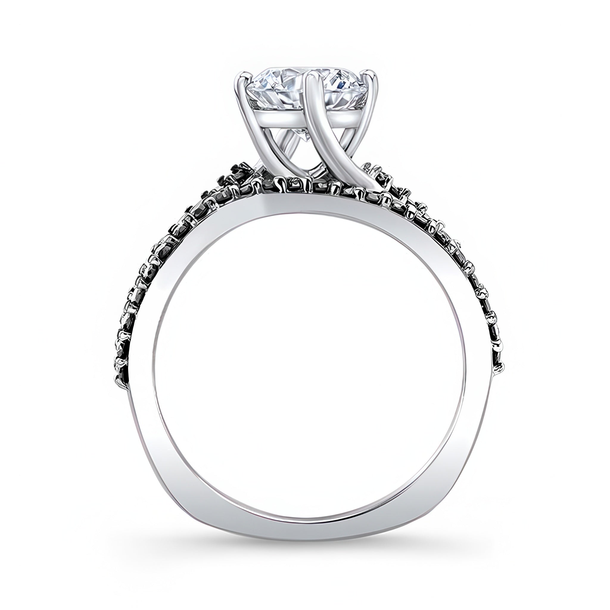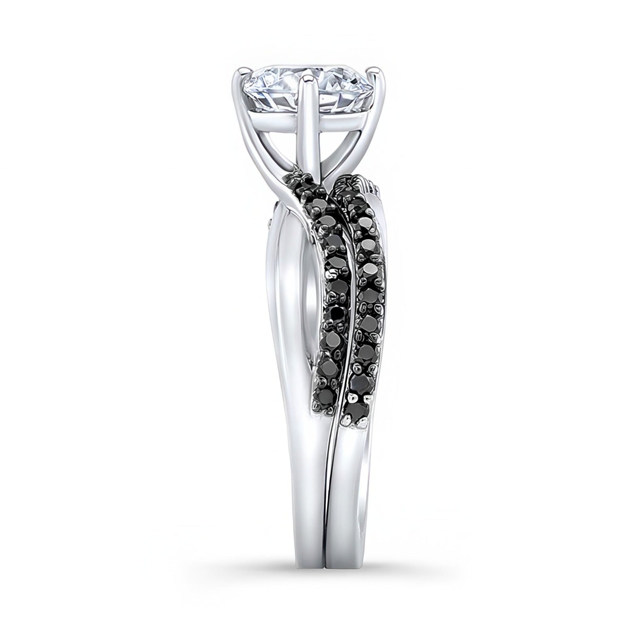 Where light meets shadow. Fiery moissanite and mysterious black diamonds collide in a bridal set that’s dramatic, radiant, and unapologetically unique—this Twisted Moissanite Bridal Set With Black Diamonds strikes the perfect balance.