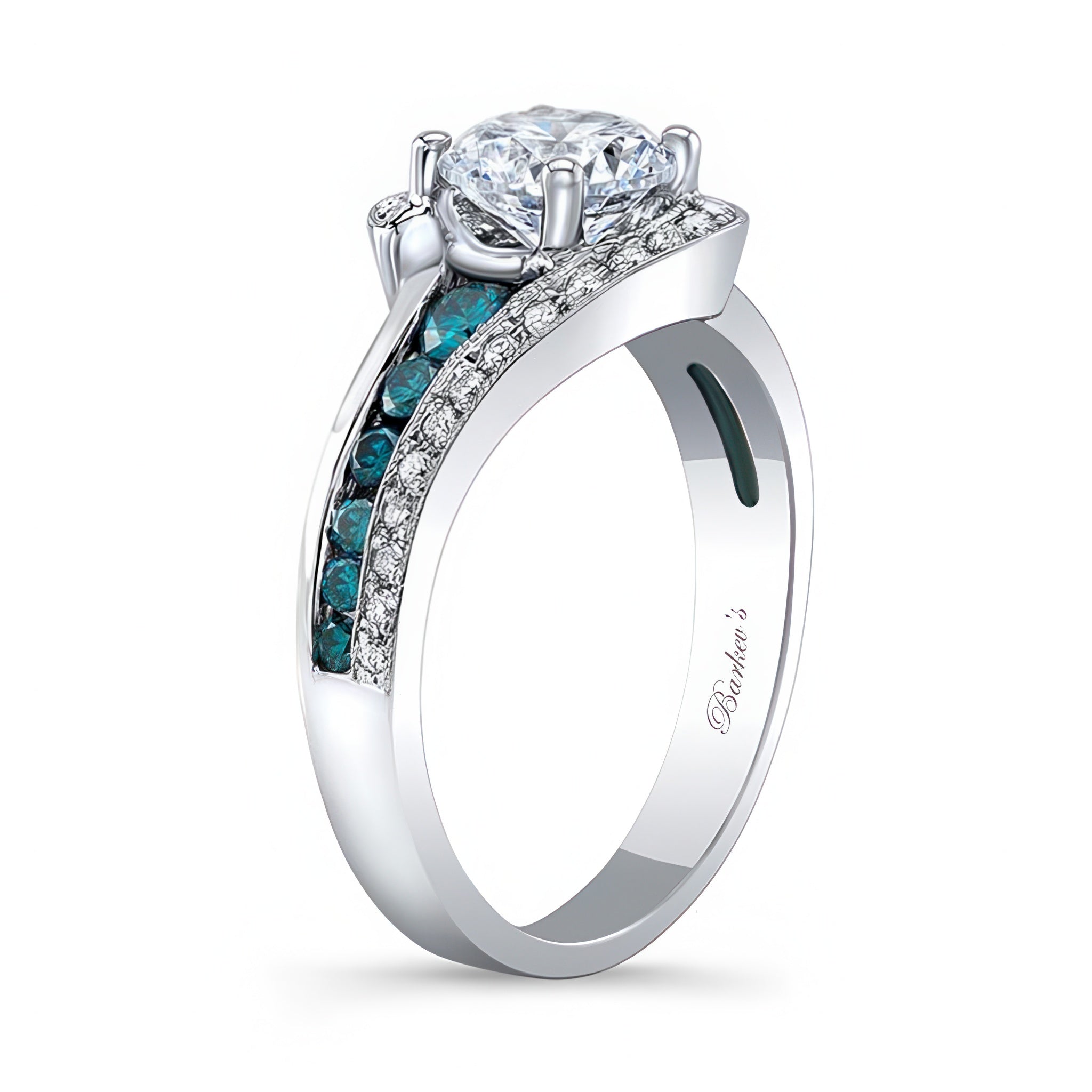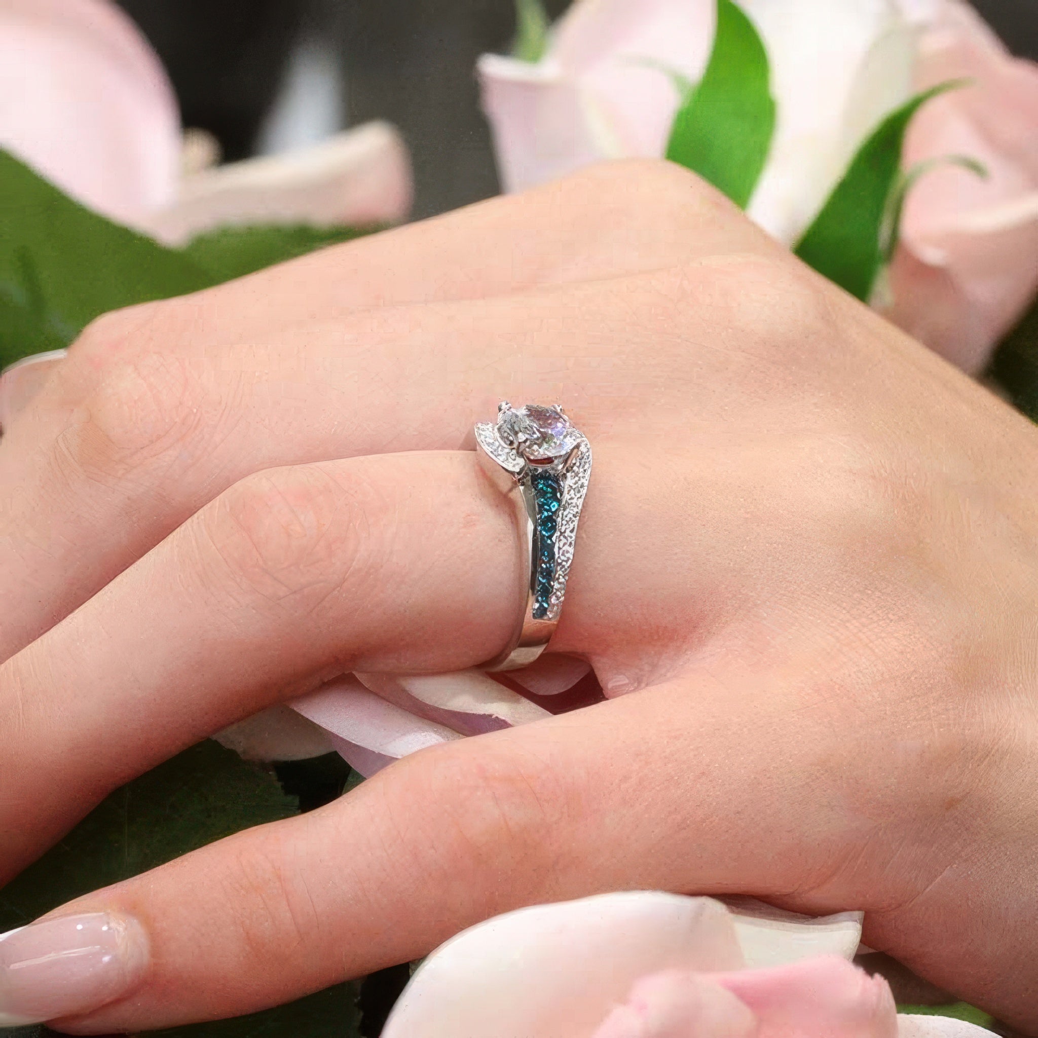 Unique Blue Diamond Accent Moissanite Engagement Ring