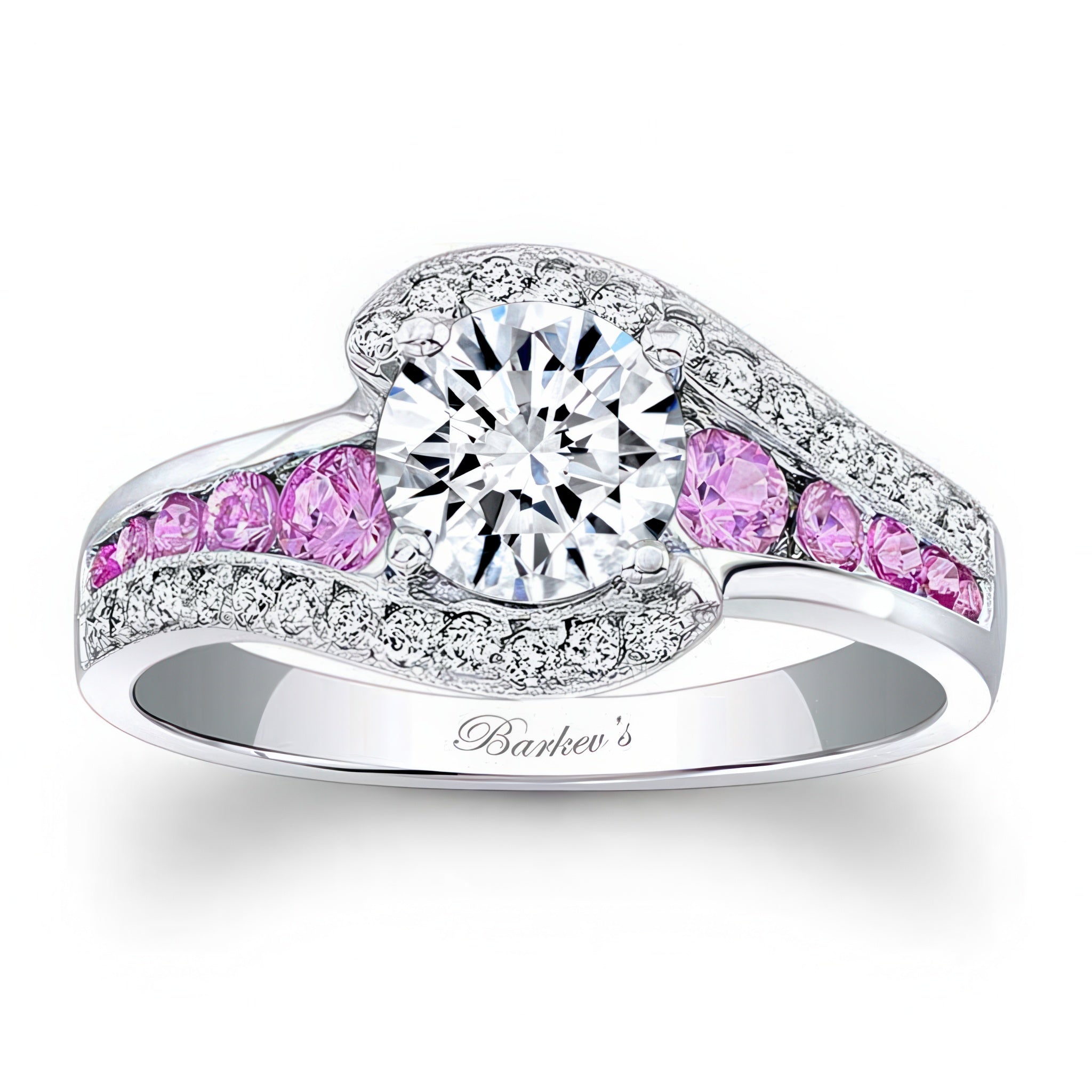 Unique Pink Sapphire Accent Moissanite Engagement Ring