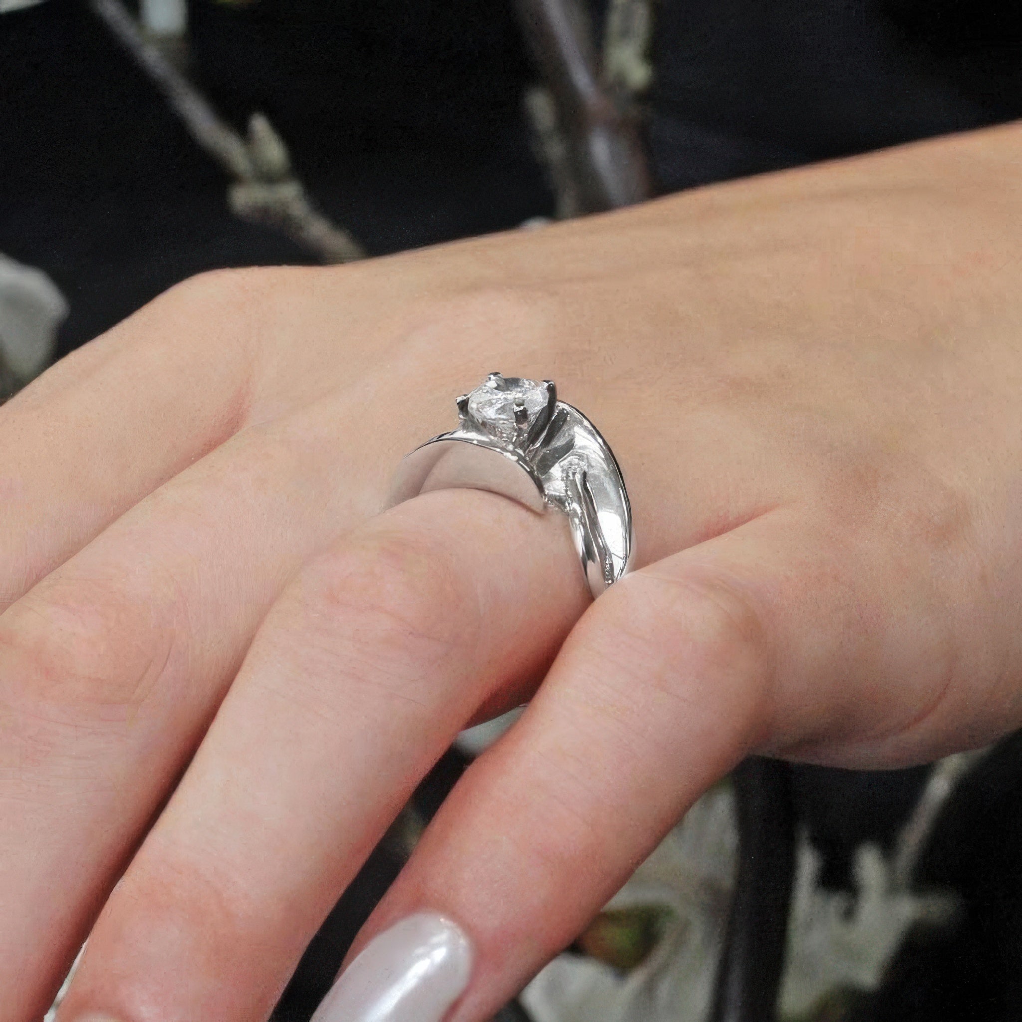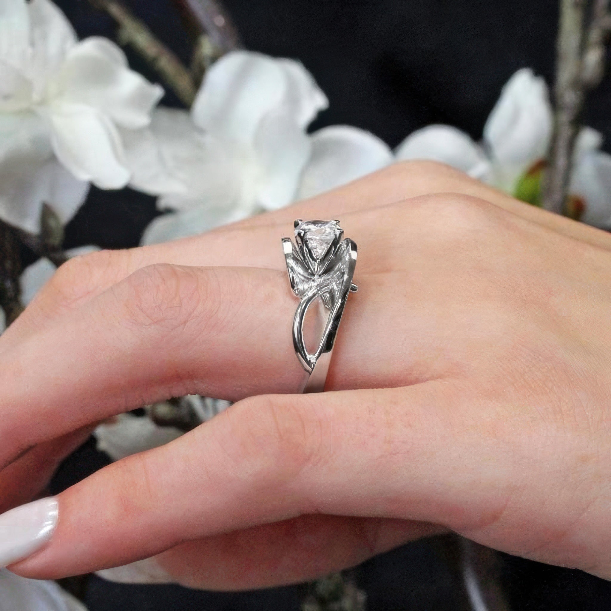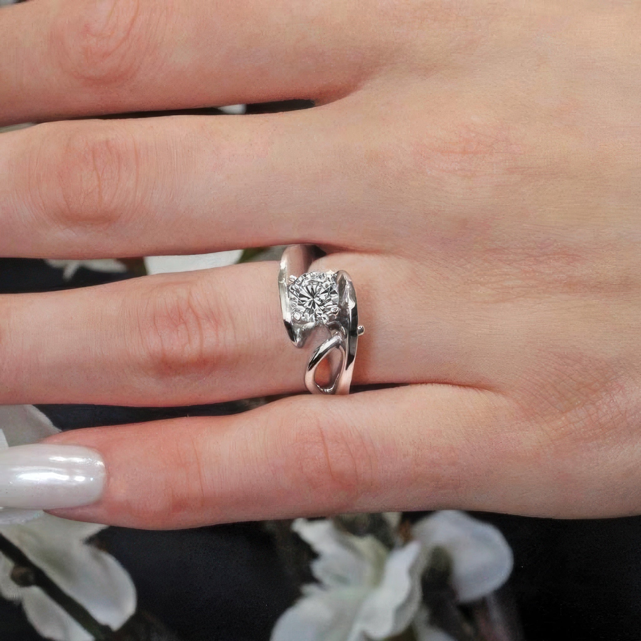 Unusual Solitaire Moissanite Engagement Ring