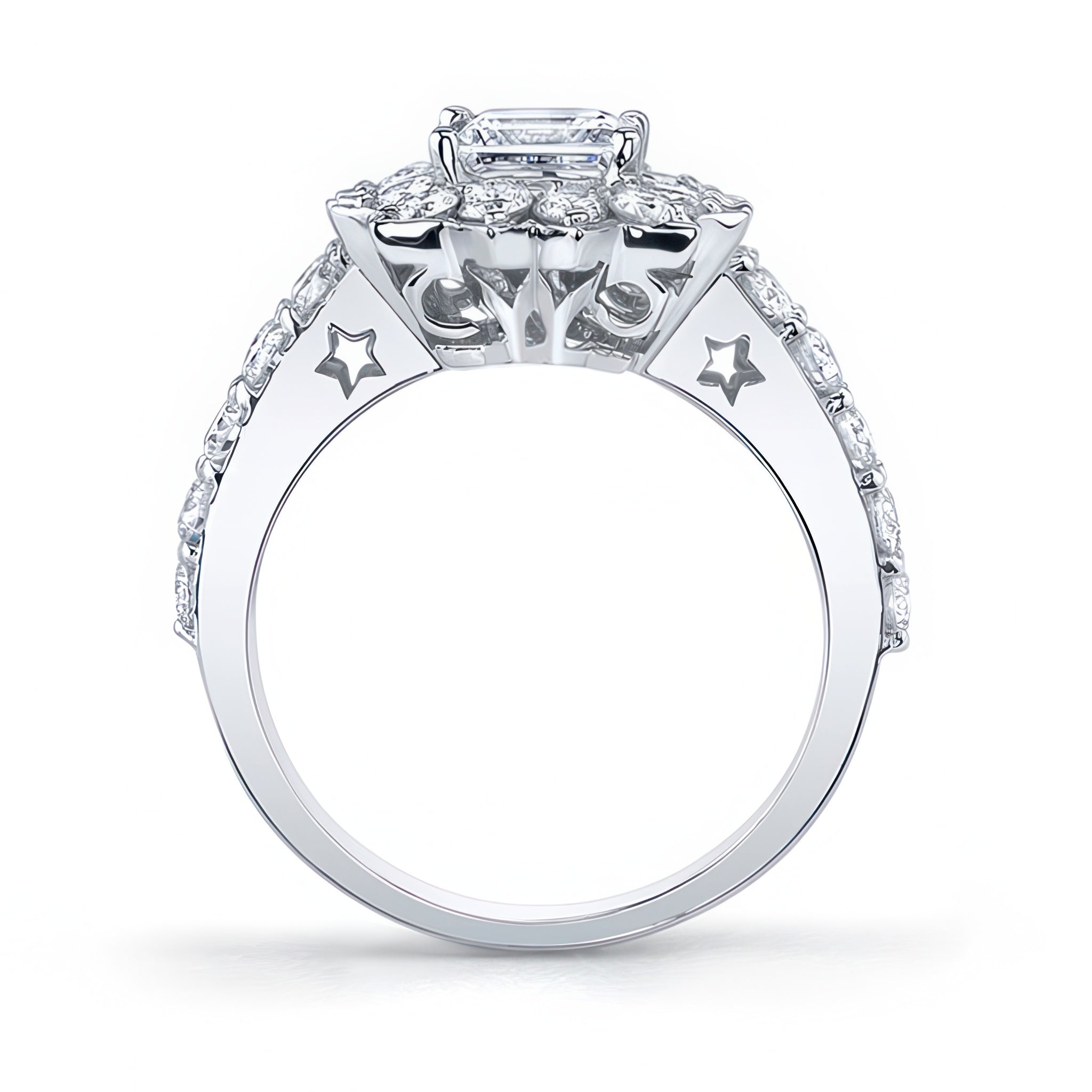 Explore our collection of moissanite engagement rings, offering brilliant, affordable alternatives to traditional diamonds. Each moissanite ring is designed for maximum brilliance and sustainability, making it the perfect choice for modern brides seeking elegance and value.