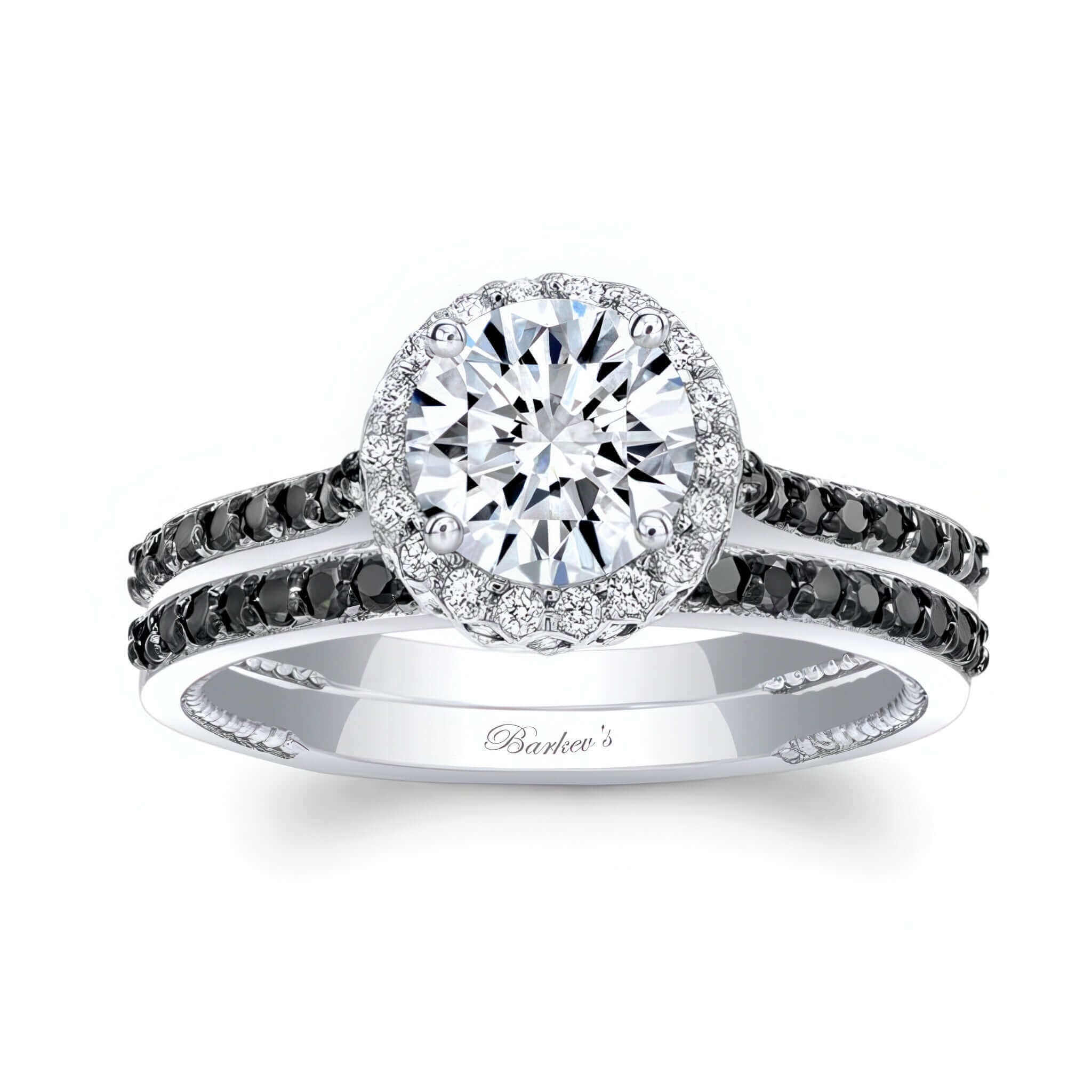 Round Halo Moissanite Black Diamond Accent Wedding Set