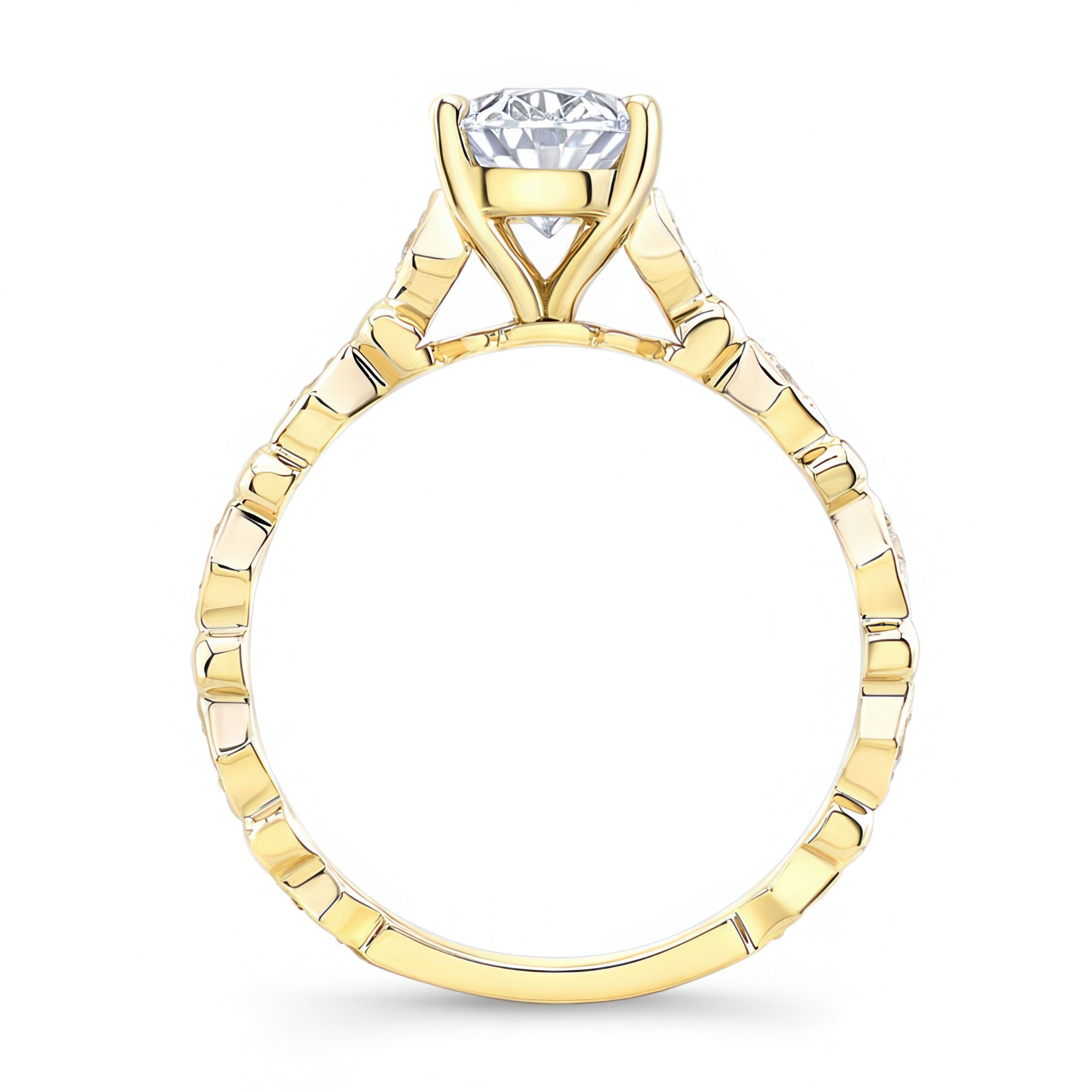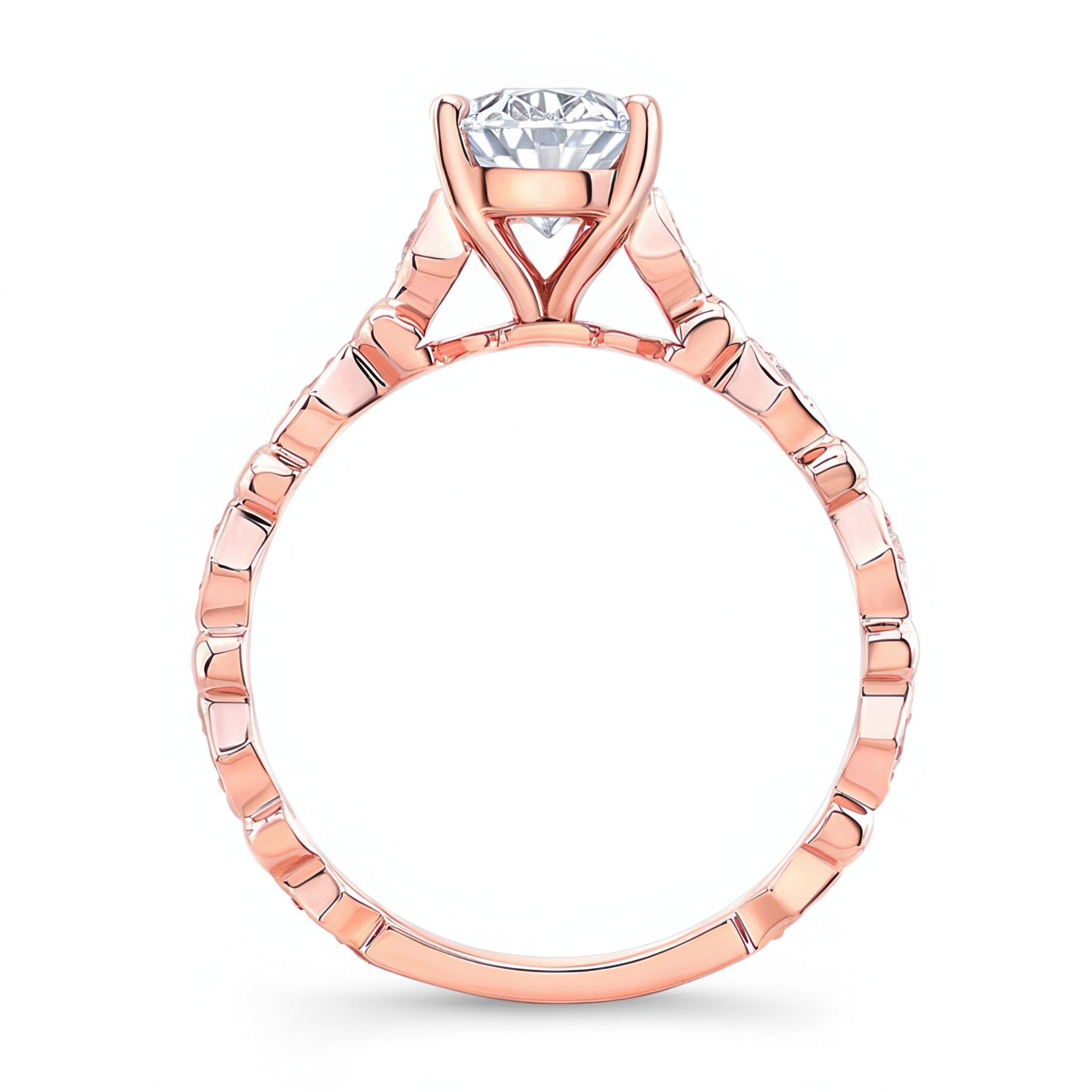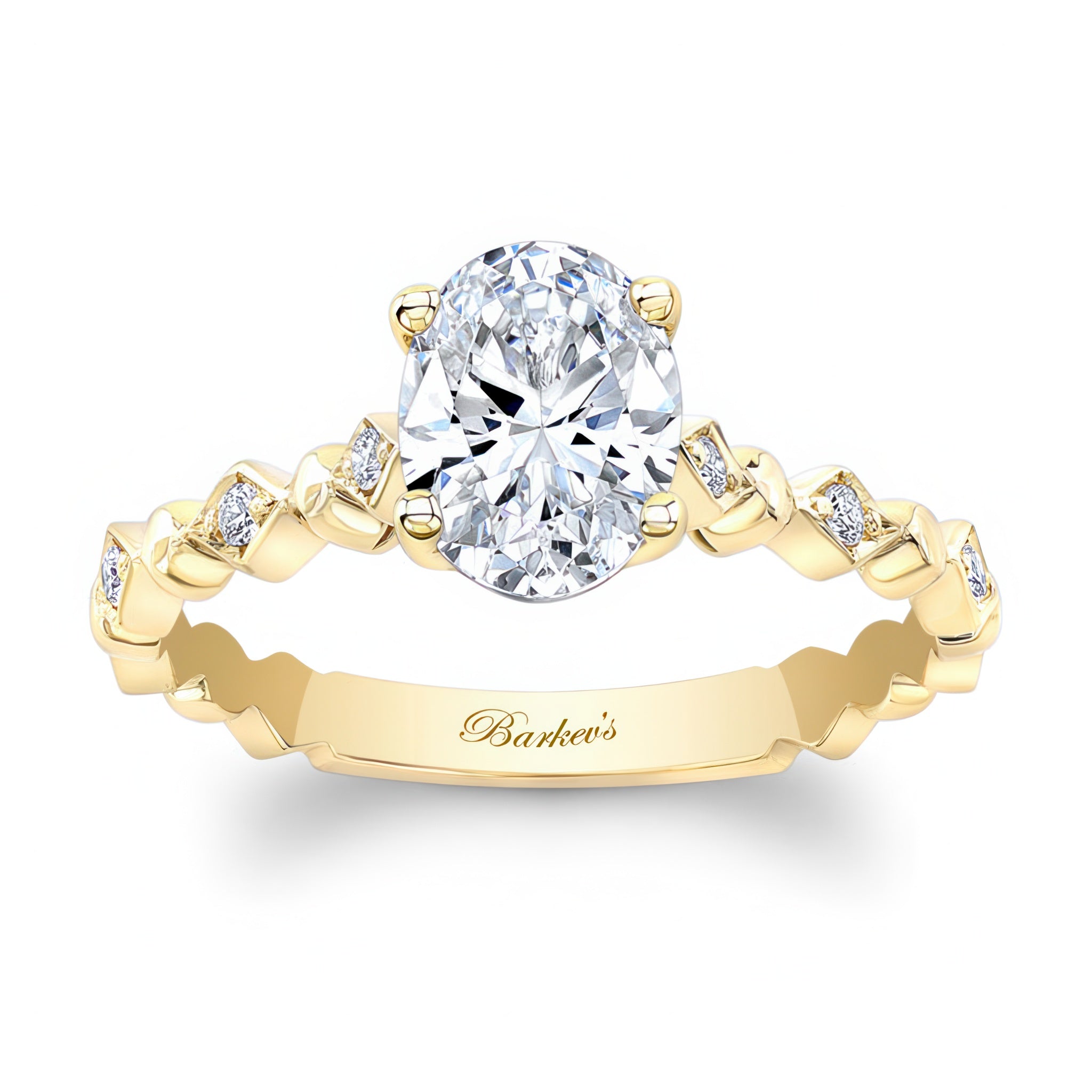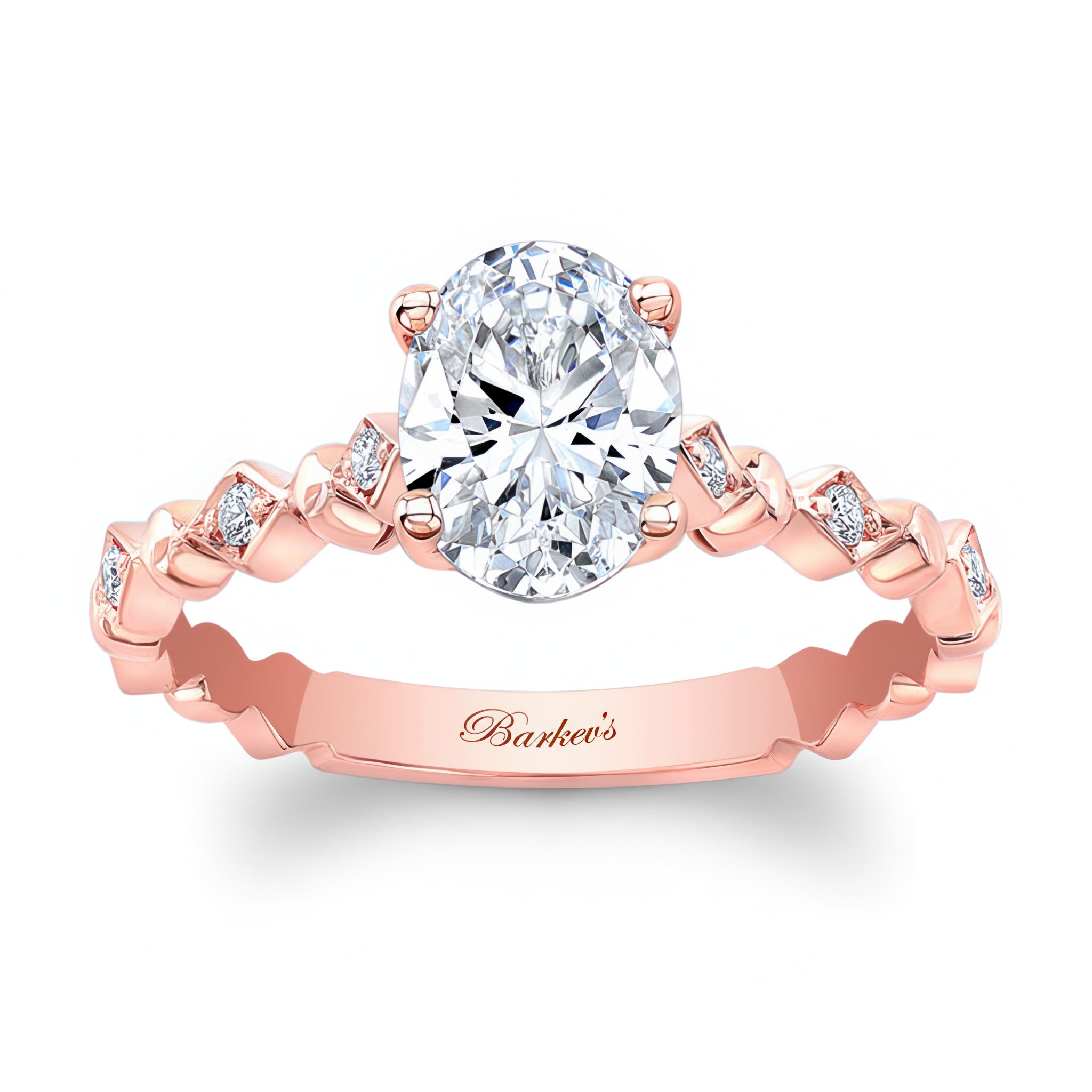 This art deco oval engagement ring combines simplicity and uniqueness in a dainty design. The center stone sits beautifully on the playful diamond pave setting adorning the band.