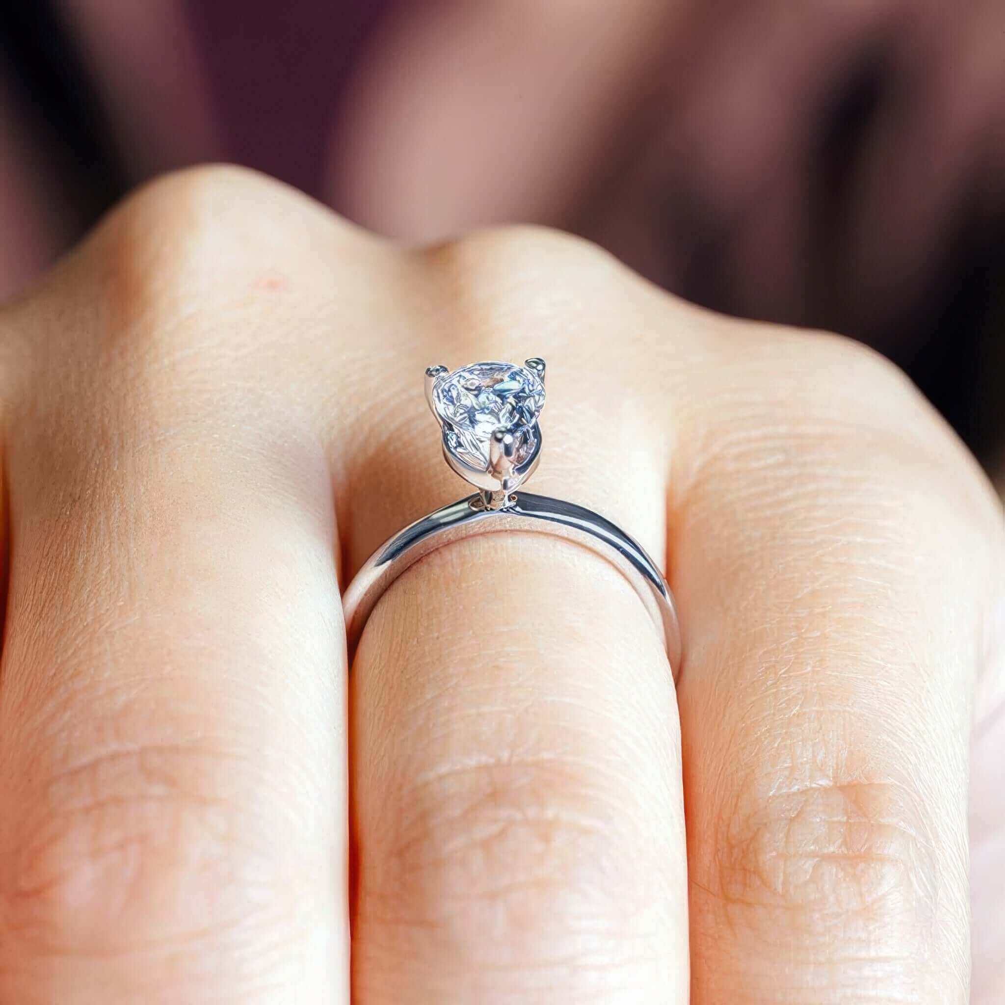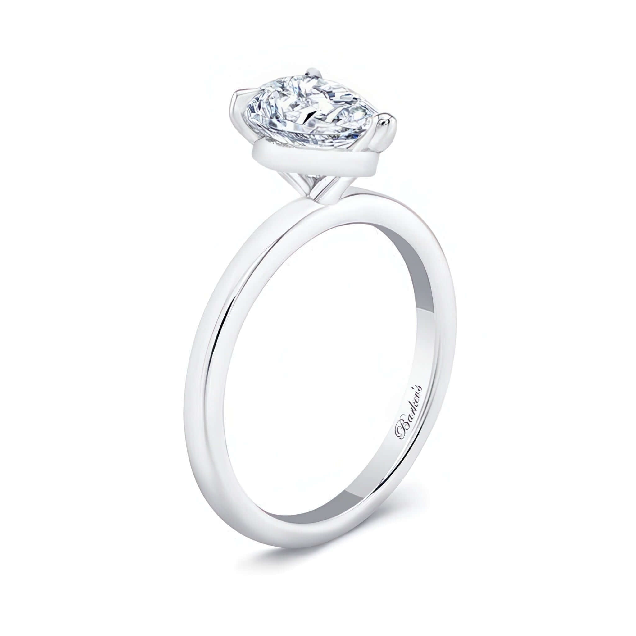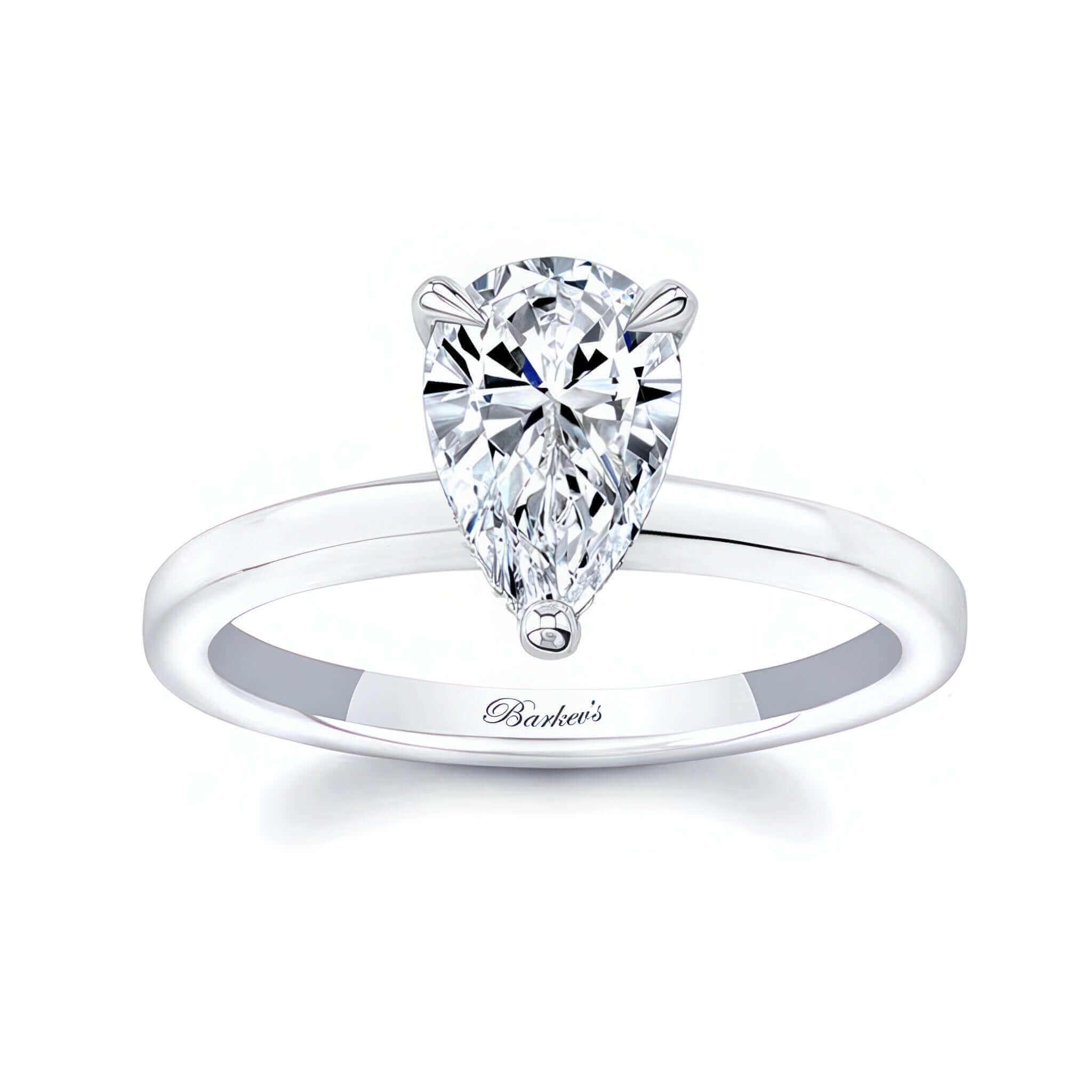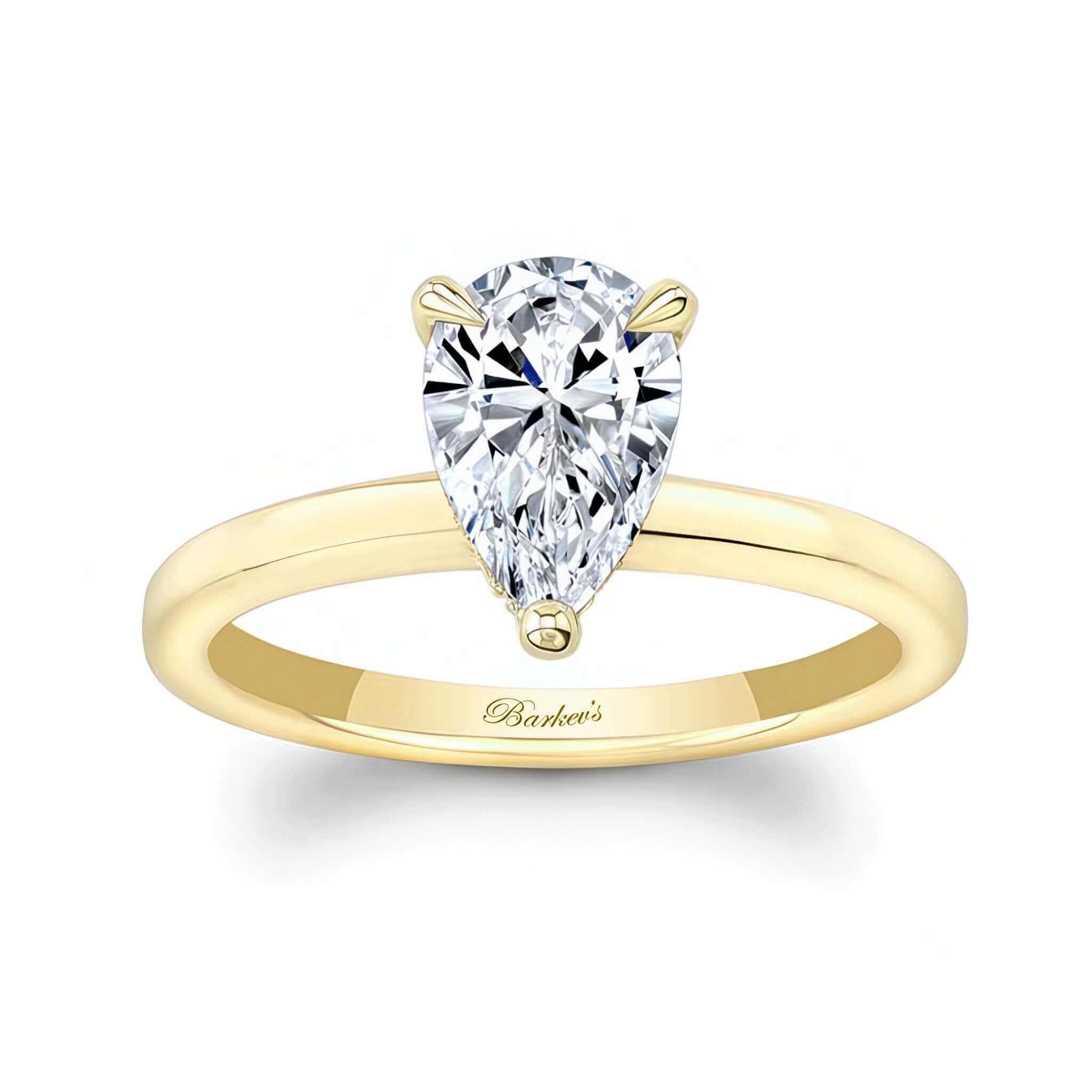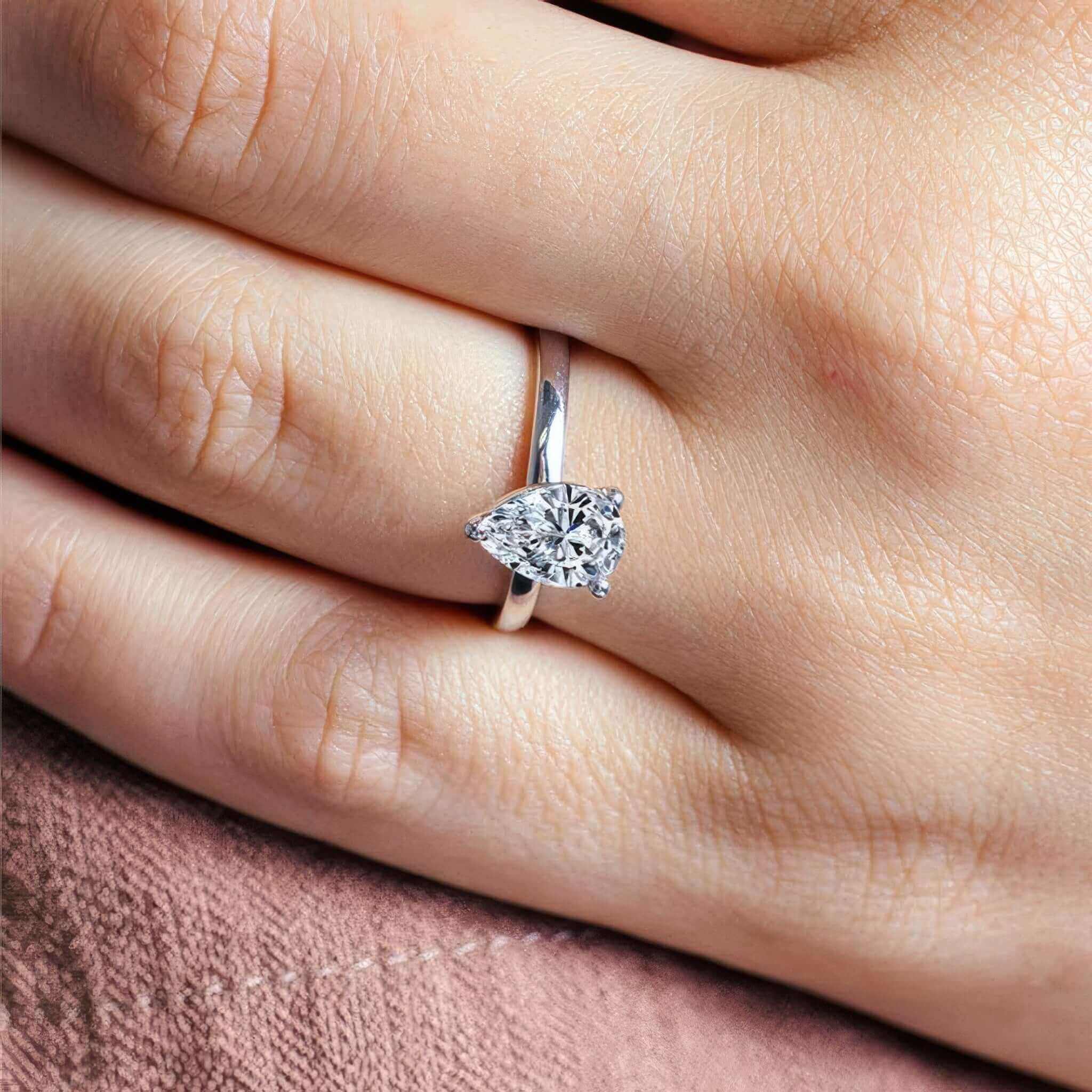 A modern pear solitaire ring featuring a prong set pear shape center for a stunning look.