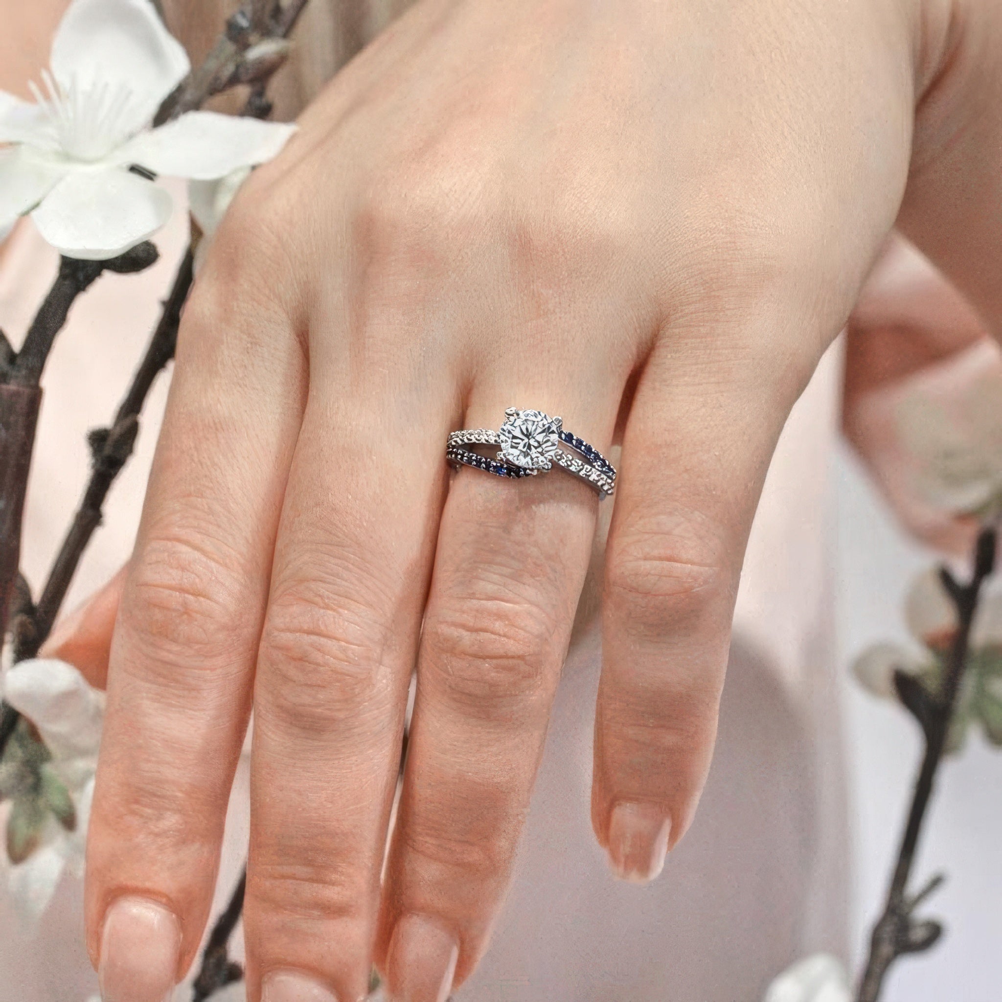1 Carat Round Cut Sapphire Accent Ring