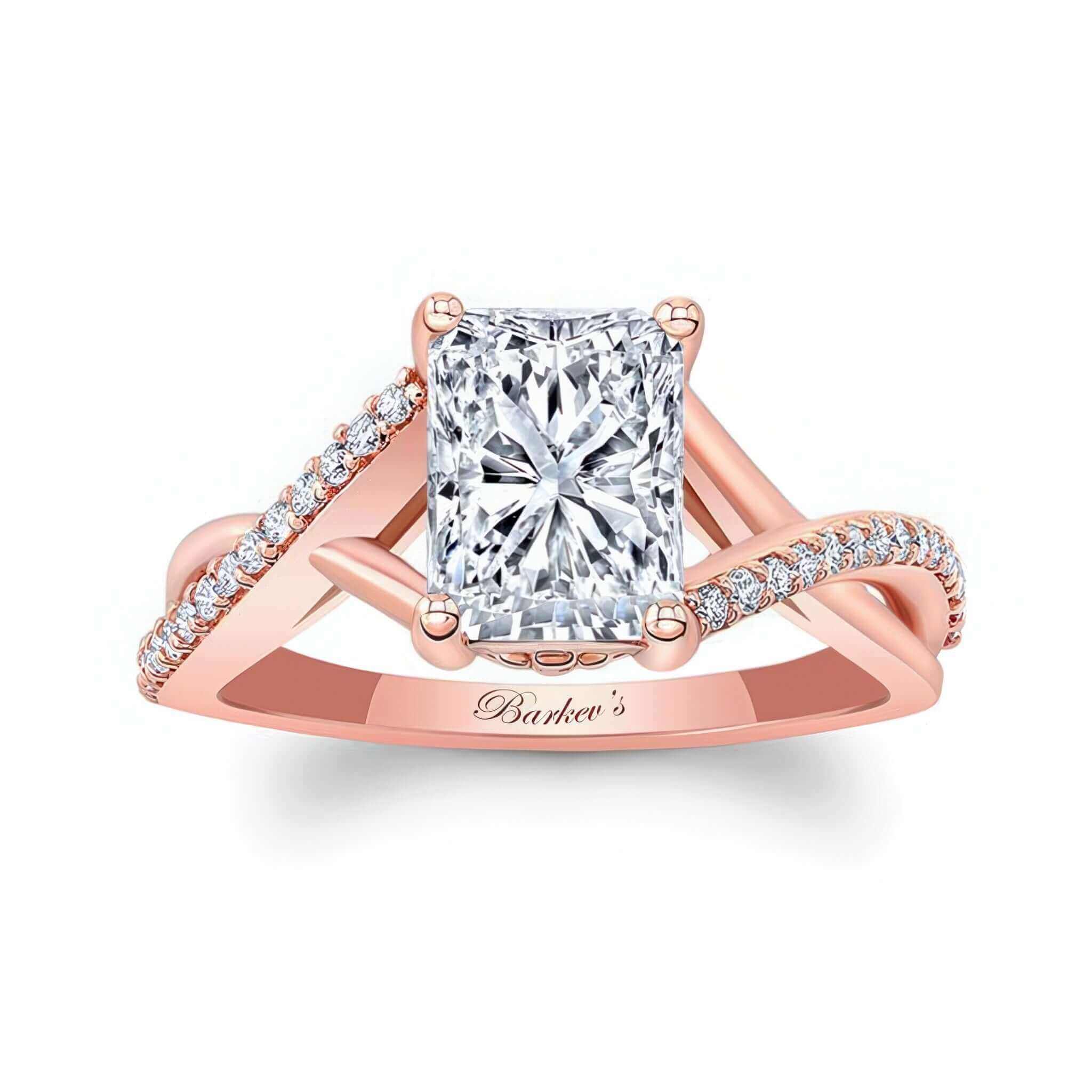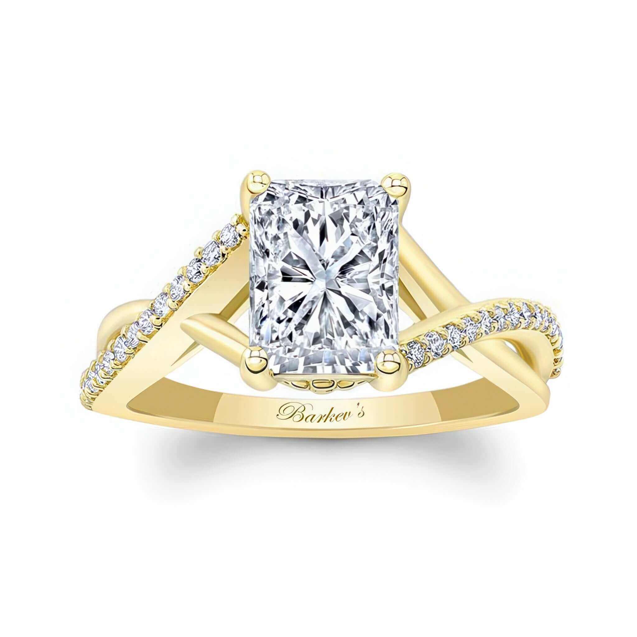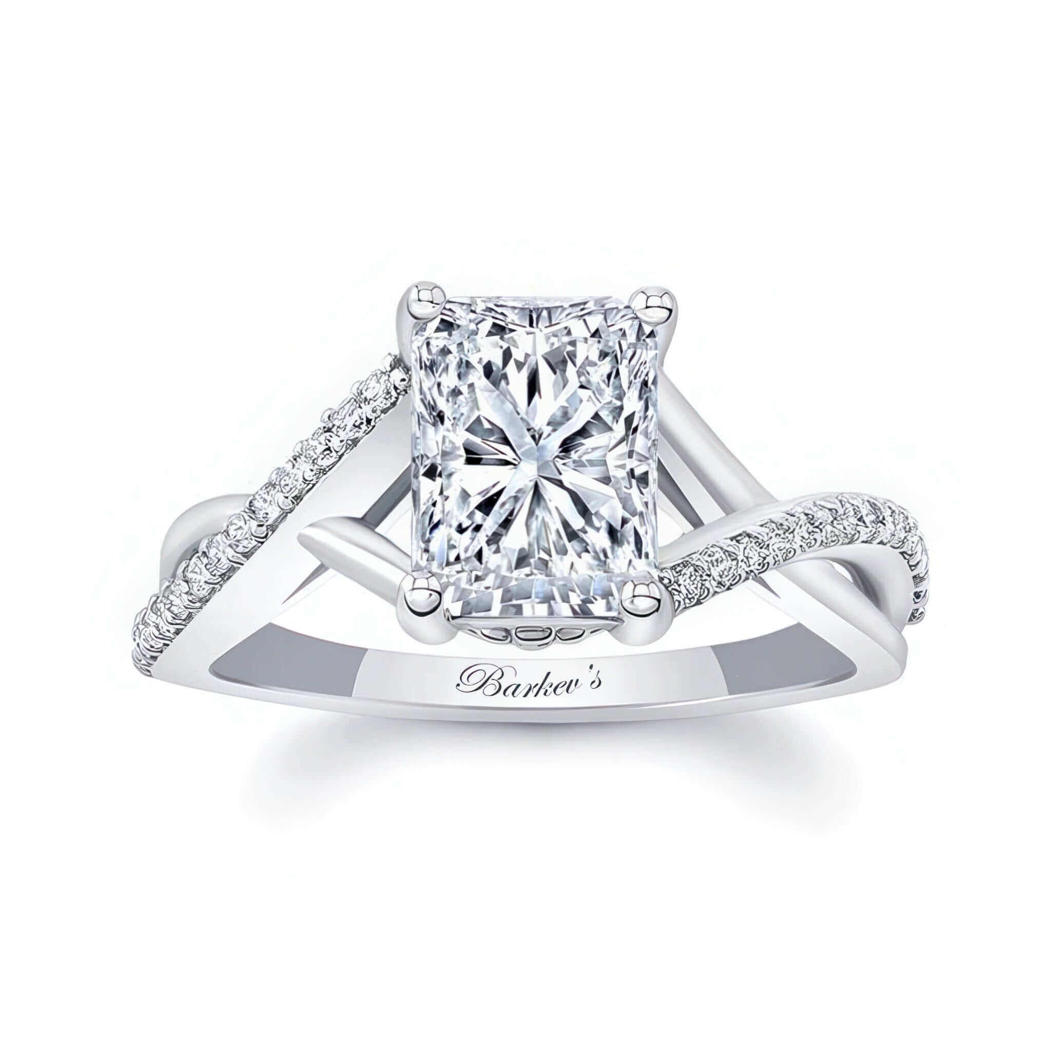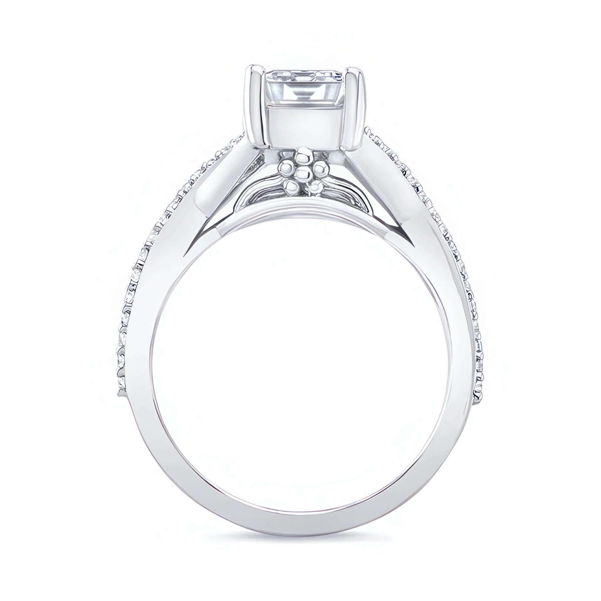This 2 carat radiant cut diamond ring will turn heads with it's overlapping diamond shank, large center stone and flower motif.