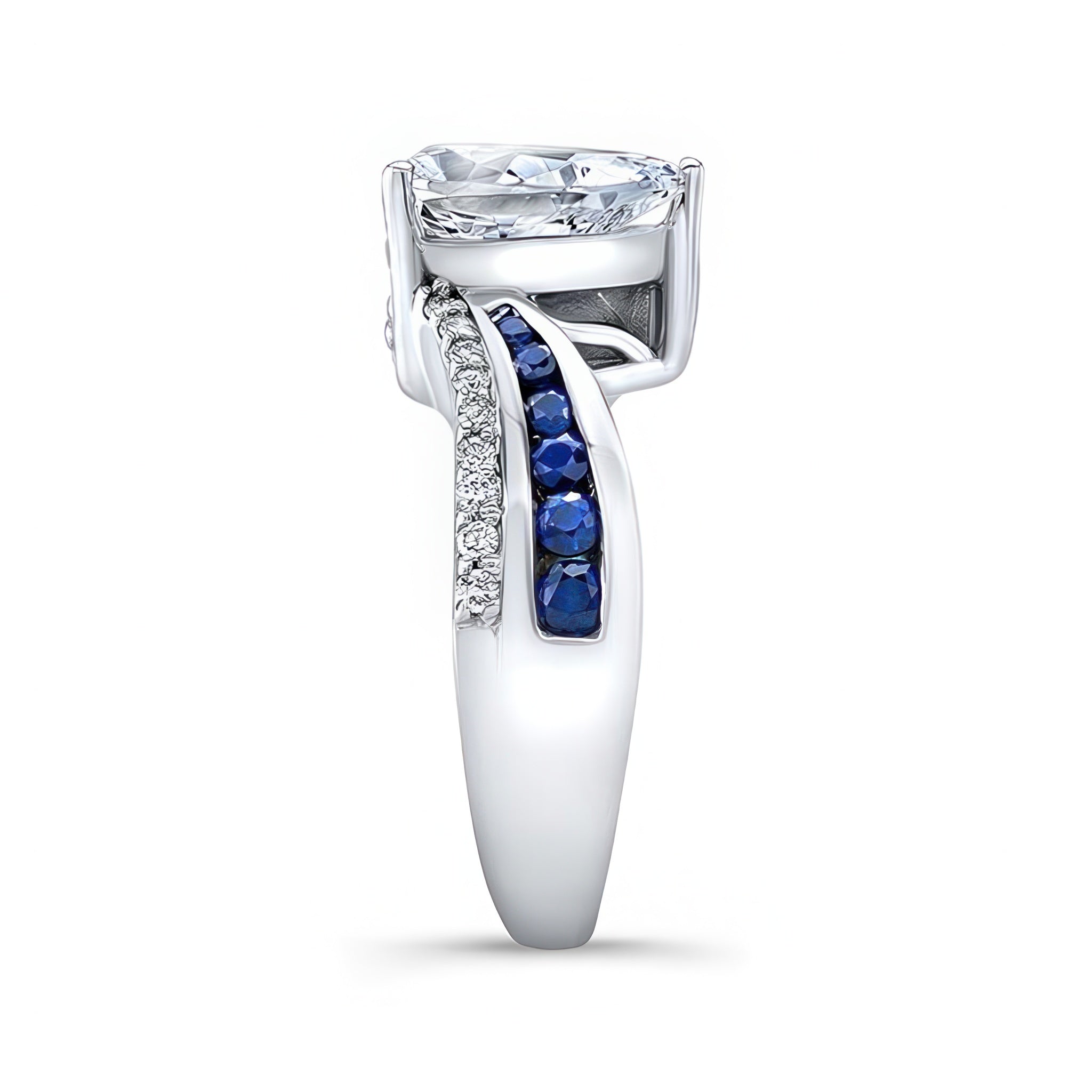 Blue Sapphire Accent Pear Shaped Ring