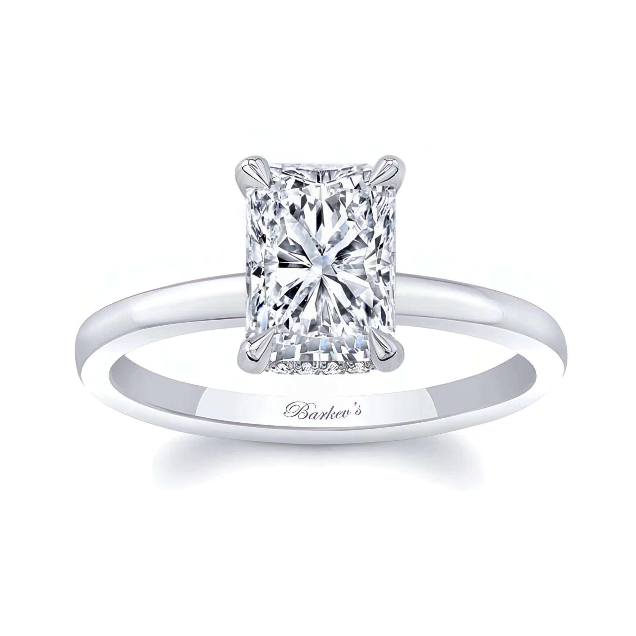 An exquisite radiant cut engagement ring featuring a hidden halo of diamond side stones sitting just under the 2.00ct. center. A true show stopper.