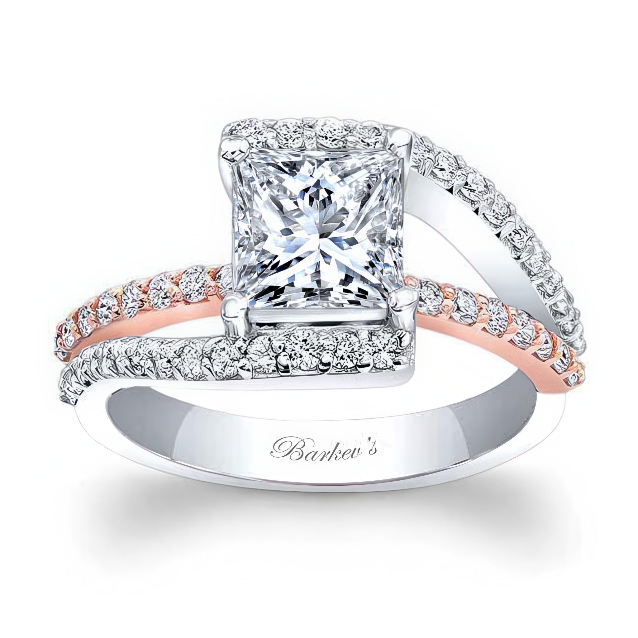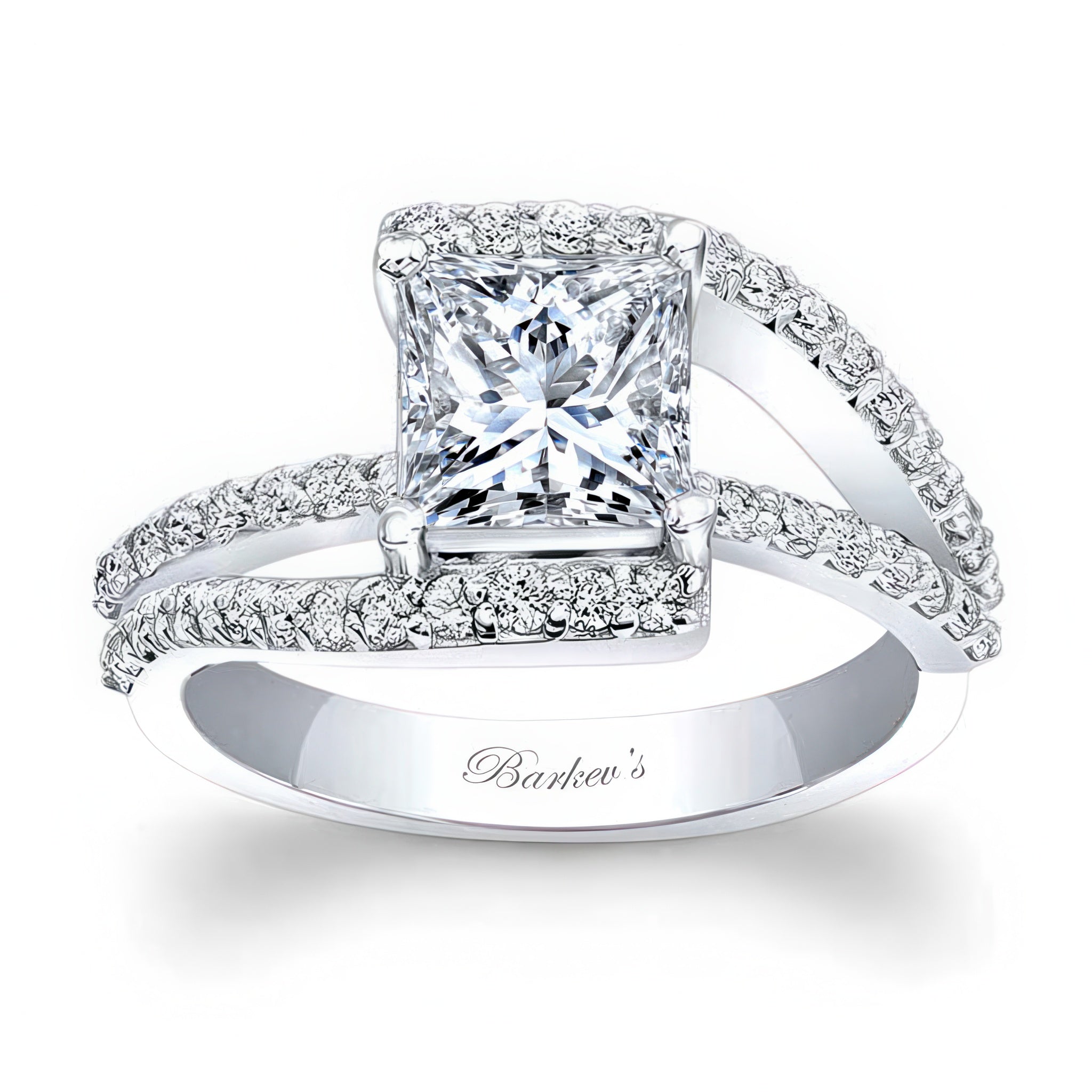 This split shank princess cut engagement ring features a prong set center with shared prong diamonds on the shank, shoulders and bridge for an added touch of elegance.
