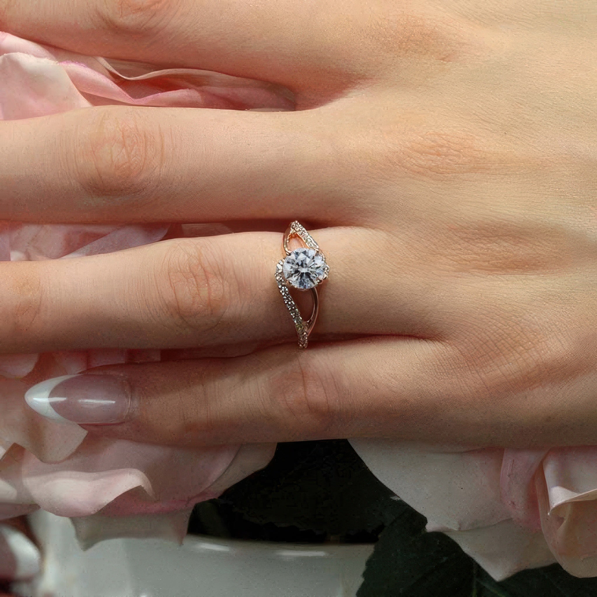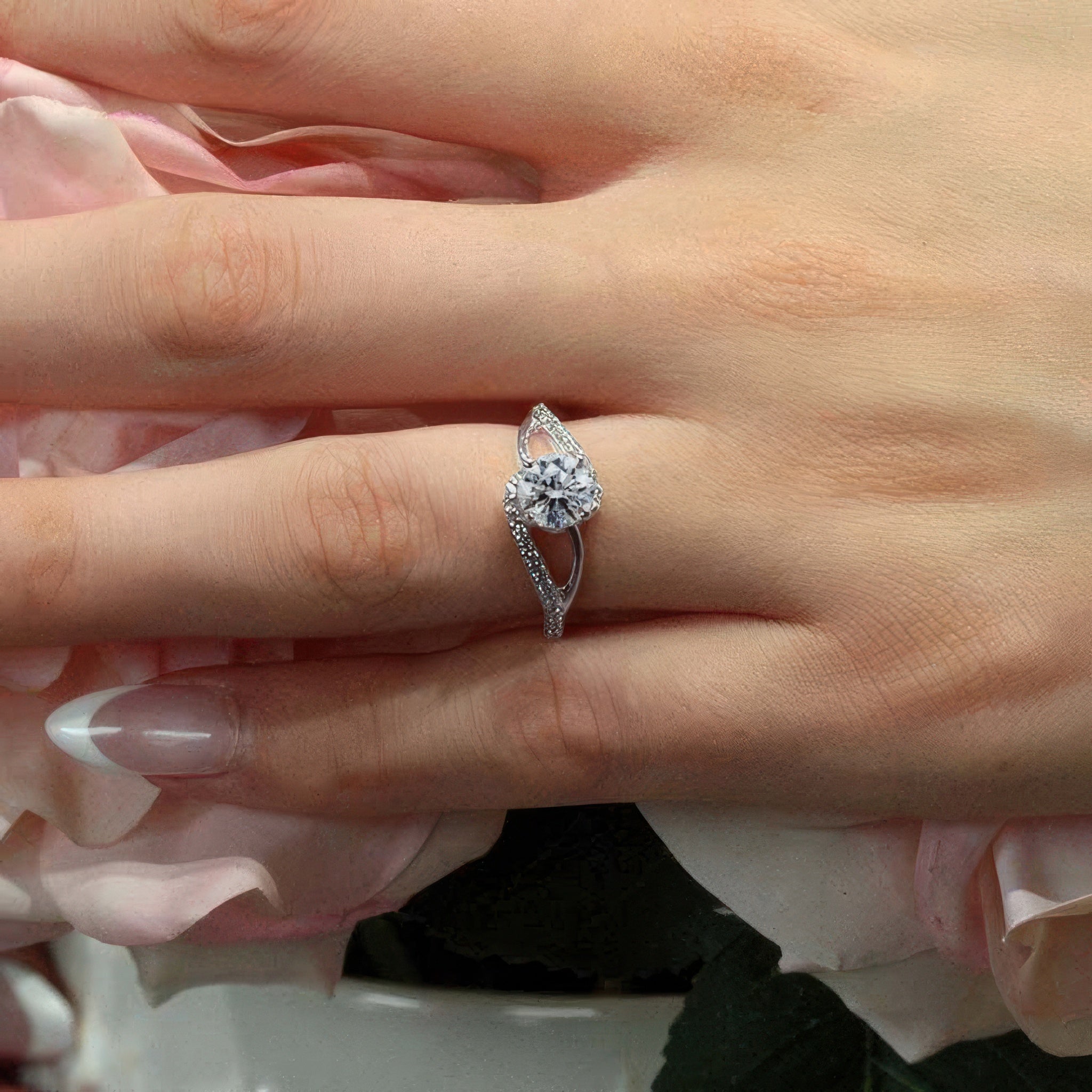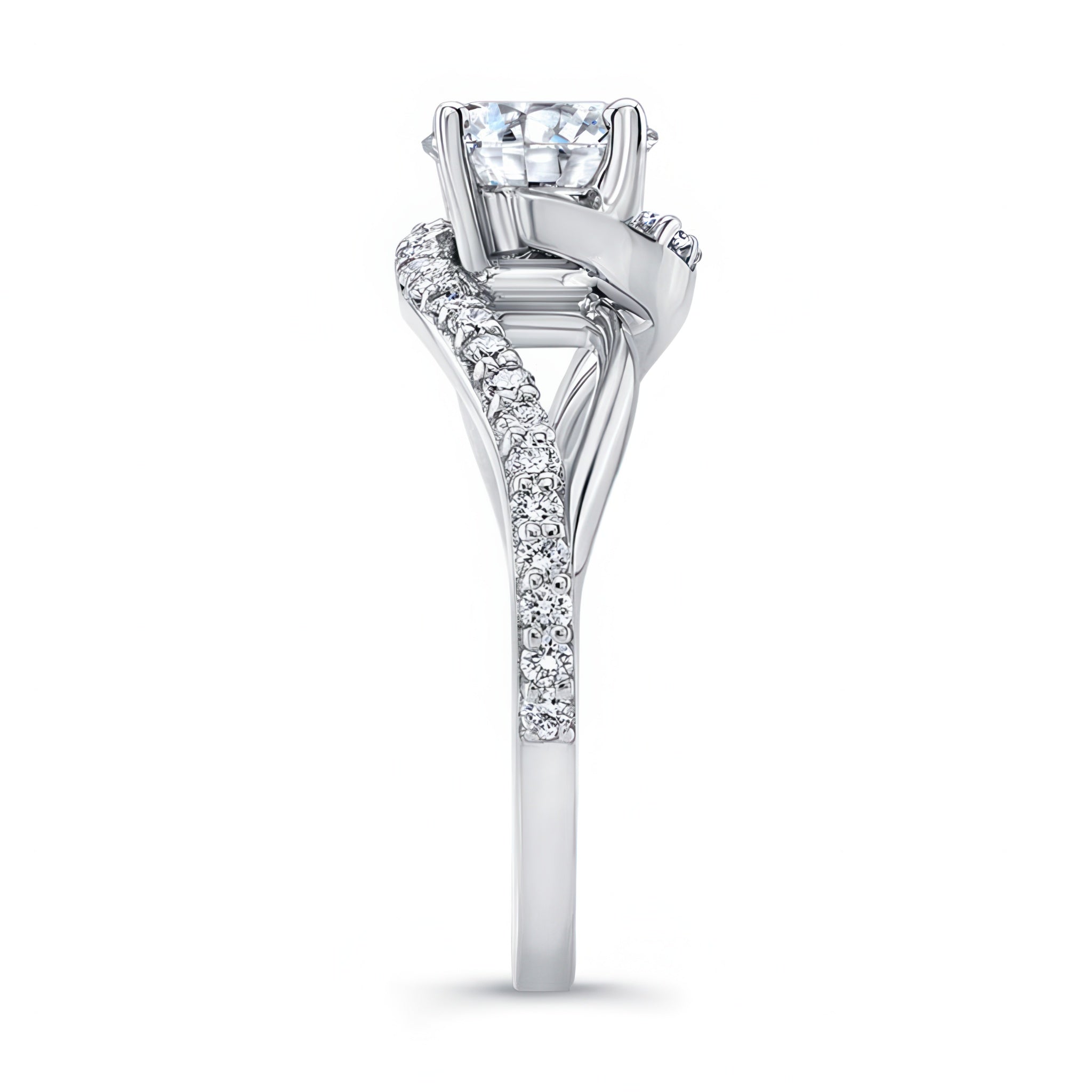 This split shank ring features a round center, while it's split shoulders are adorned with diamonds for a flawless final look.