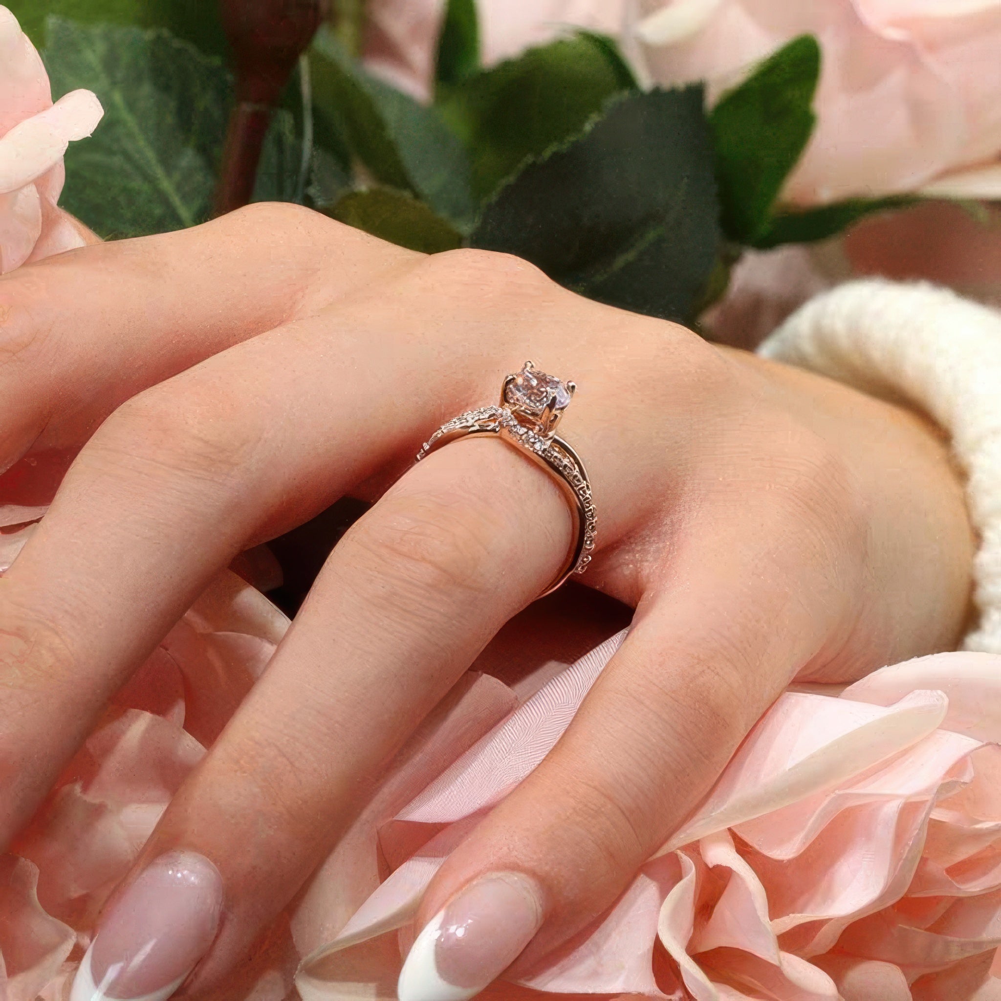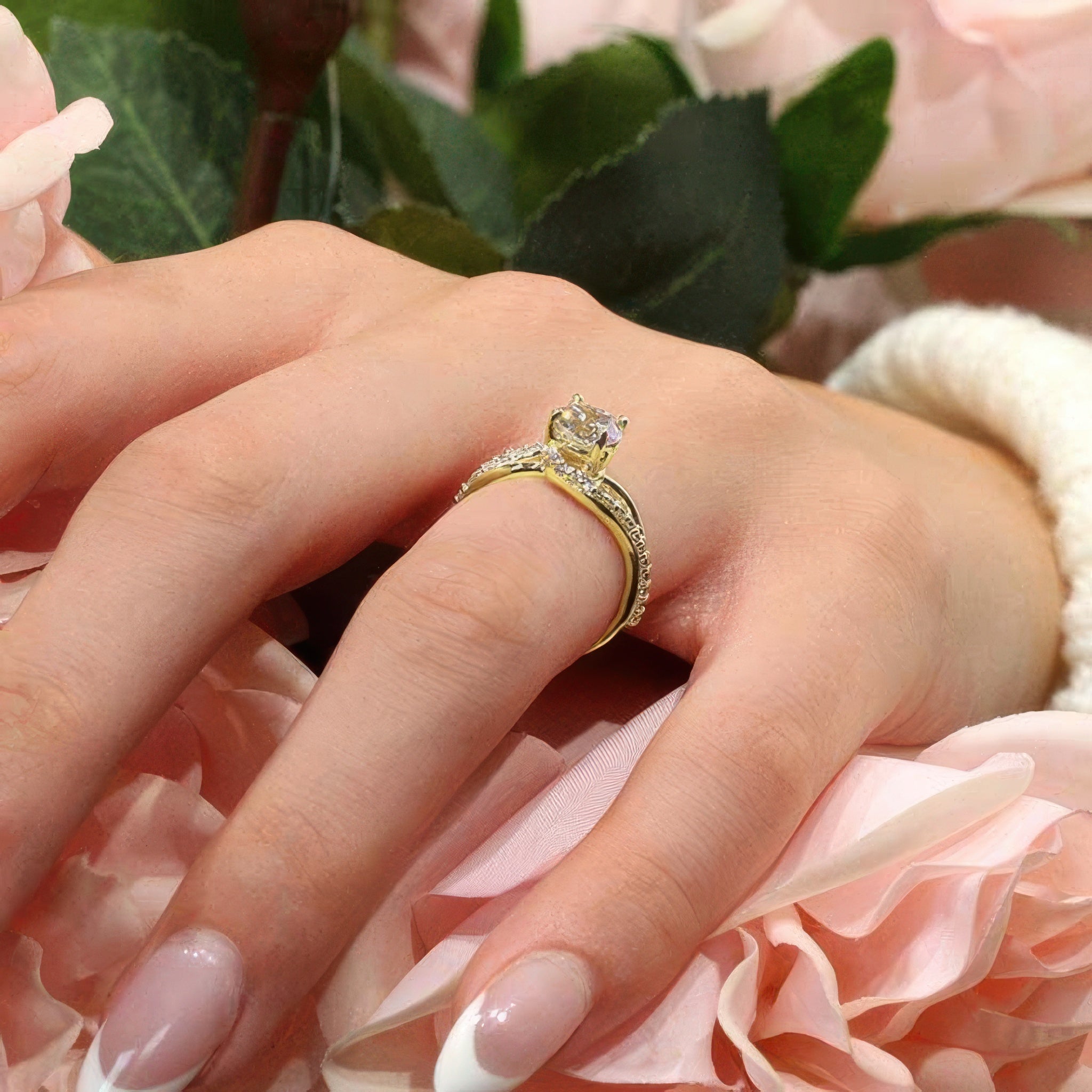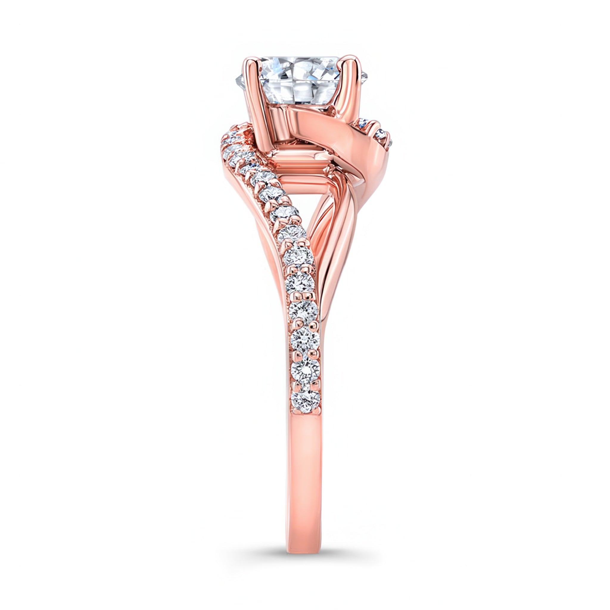 This split shank ring features a round center, while it's split shoulders are adorned with diamonds for a flawless final look.