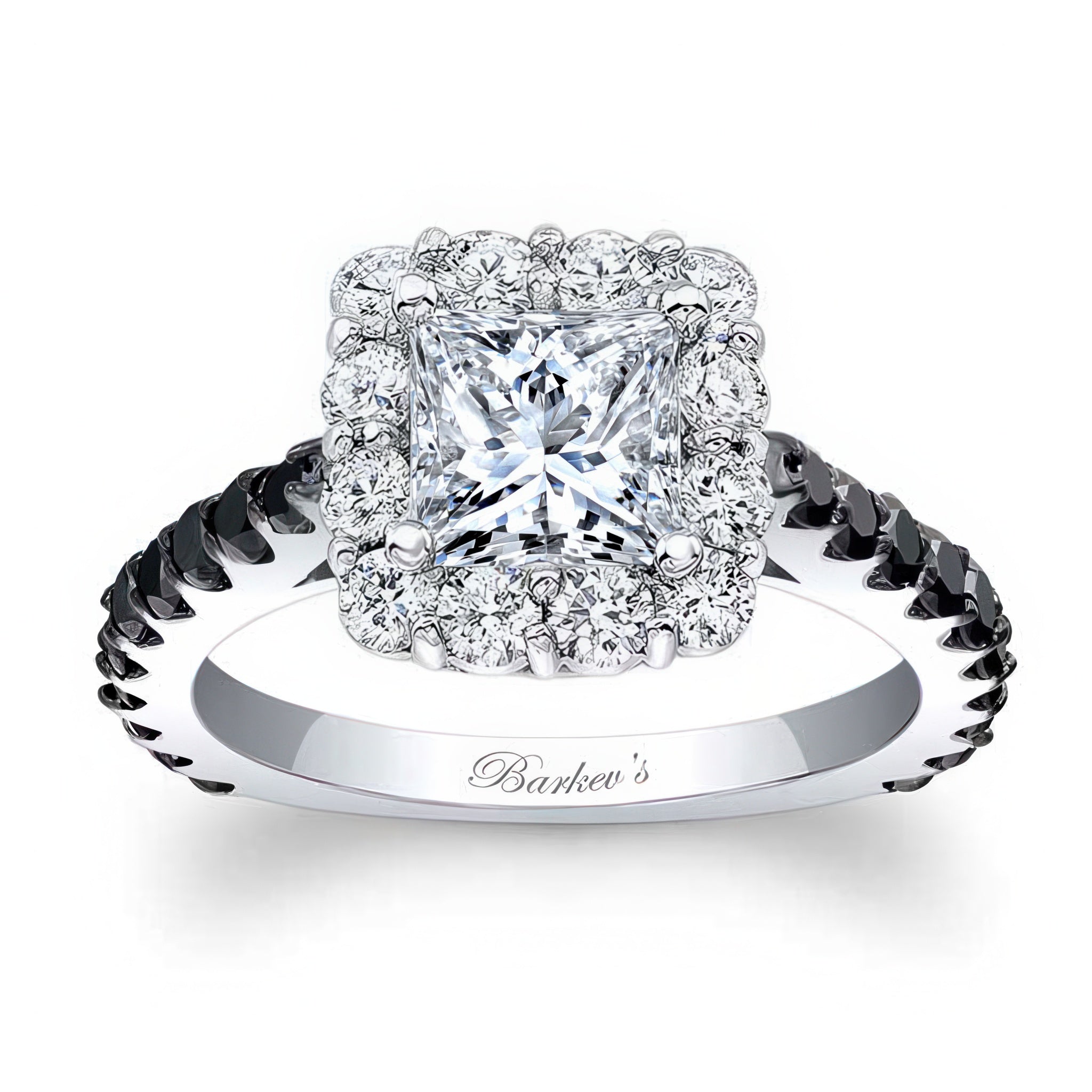 2 Carat Halo Black Diamond Accent Engagement Ring