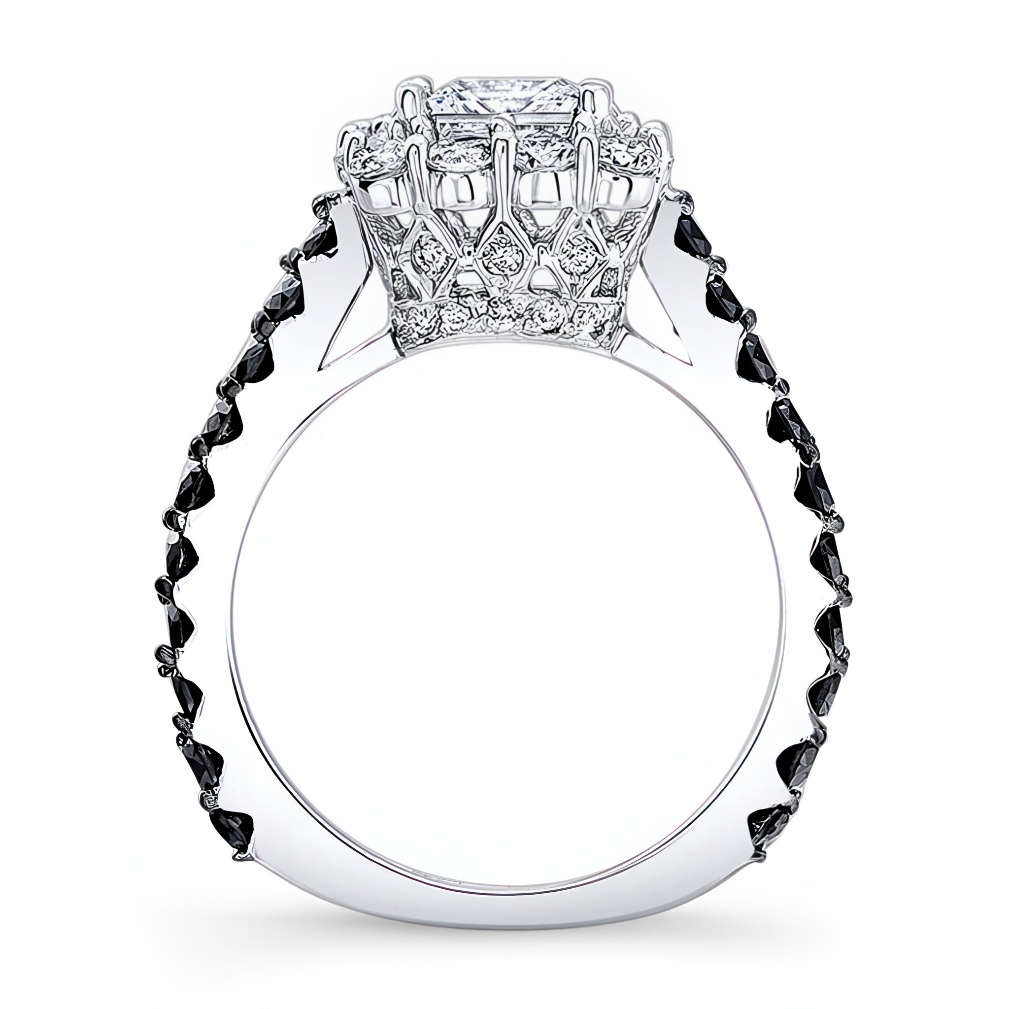 Pave Princess Cut Black Diamond Accent Ring