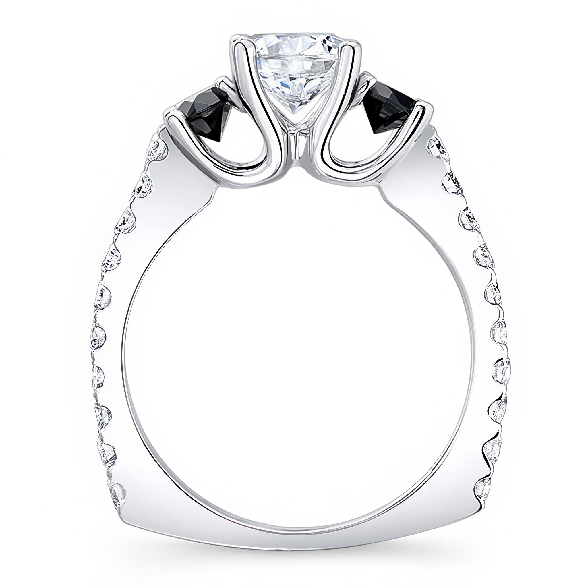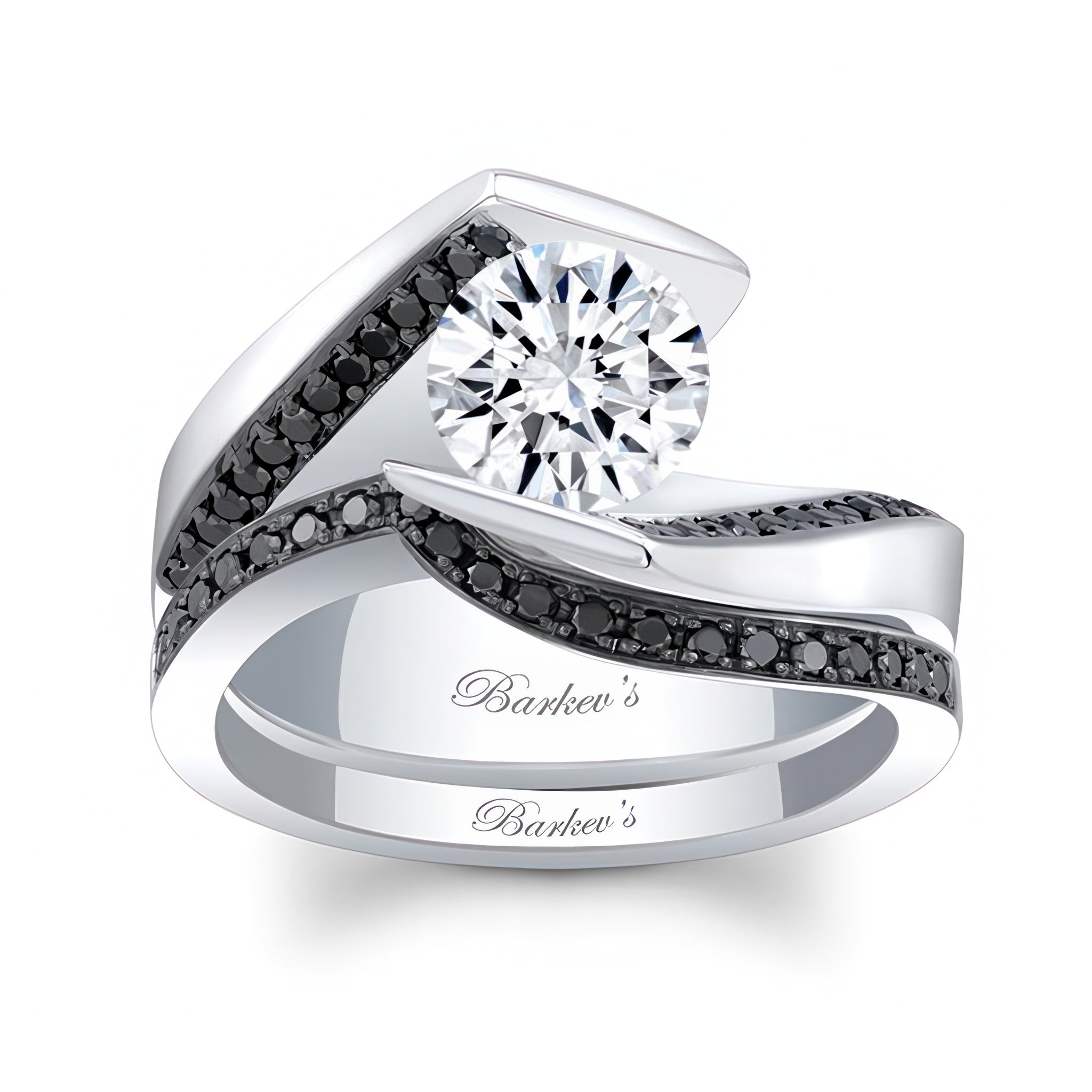 Pear Shaped Black Diamond Accent Wedding Set With 2 Bands