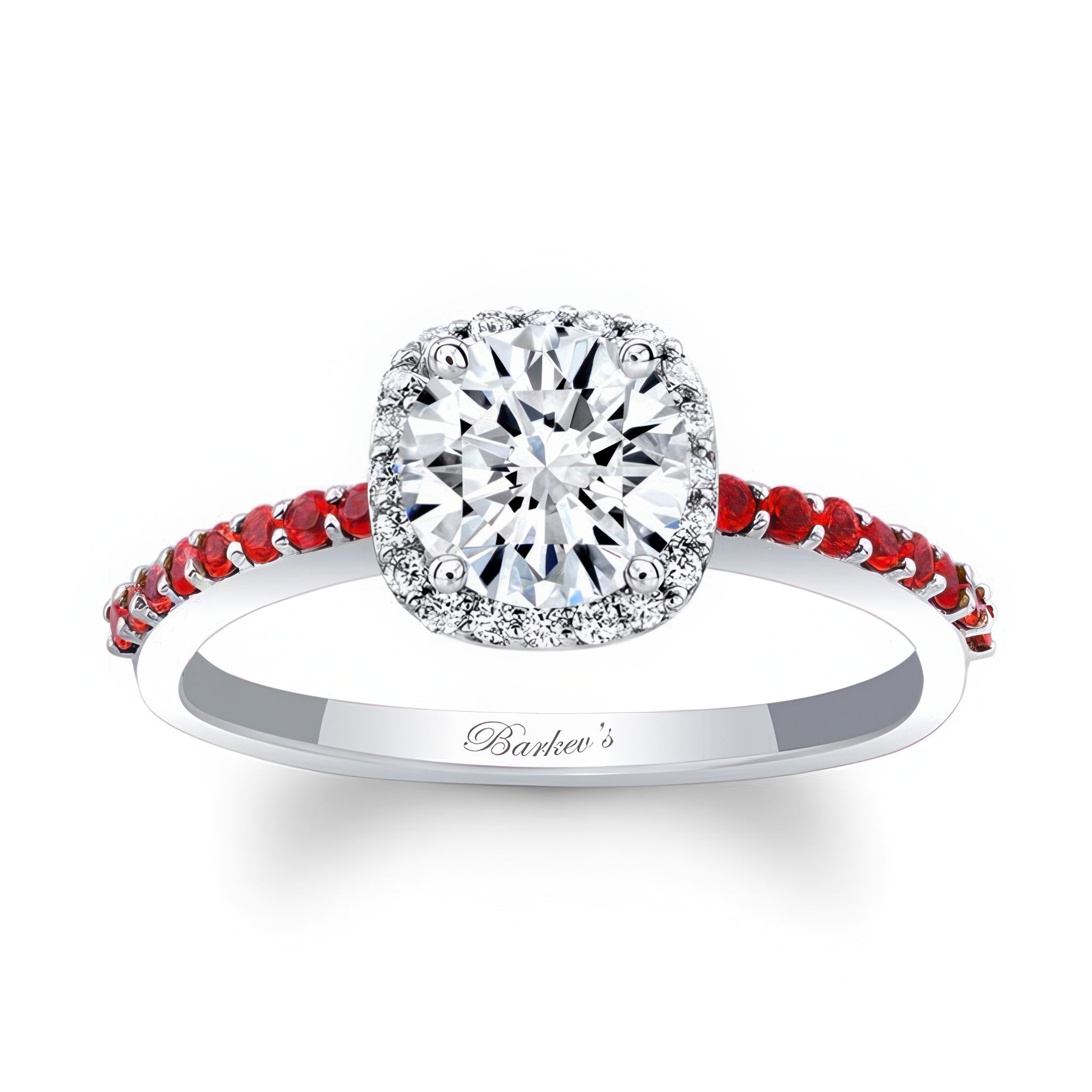 1 Carat Round Diamond Halo Engagement Ring With Rubies