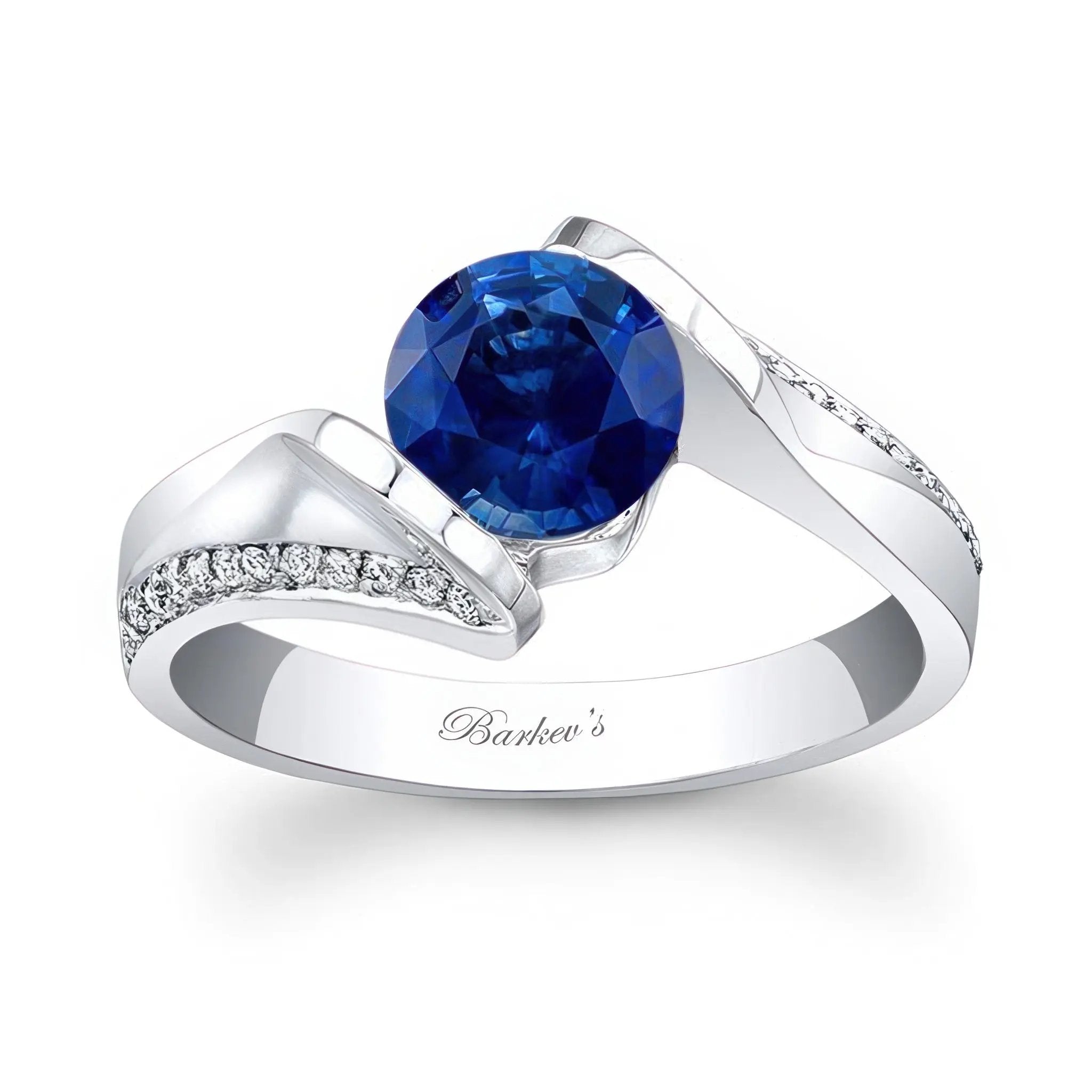 A bold channel sapphire and diamond ring featuring a channel set round center captured by split twisted ridges with pave set diamonds accenting the shoulders for a stunning touch of sophistication.