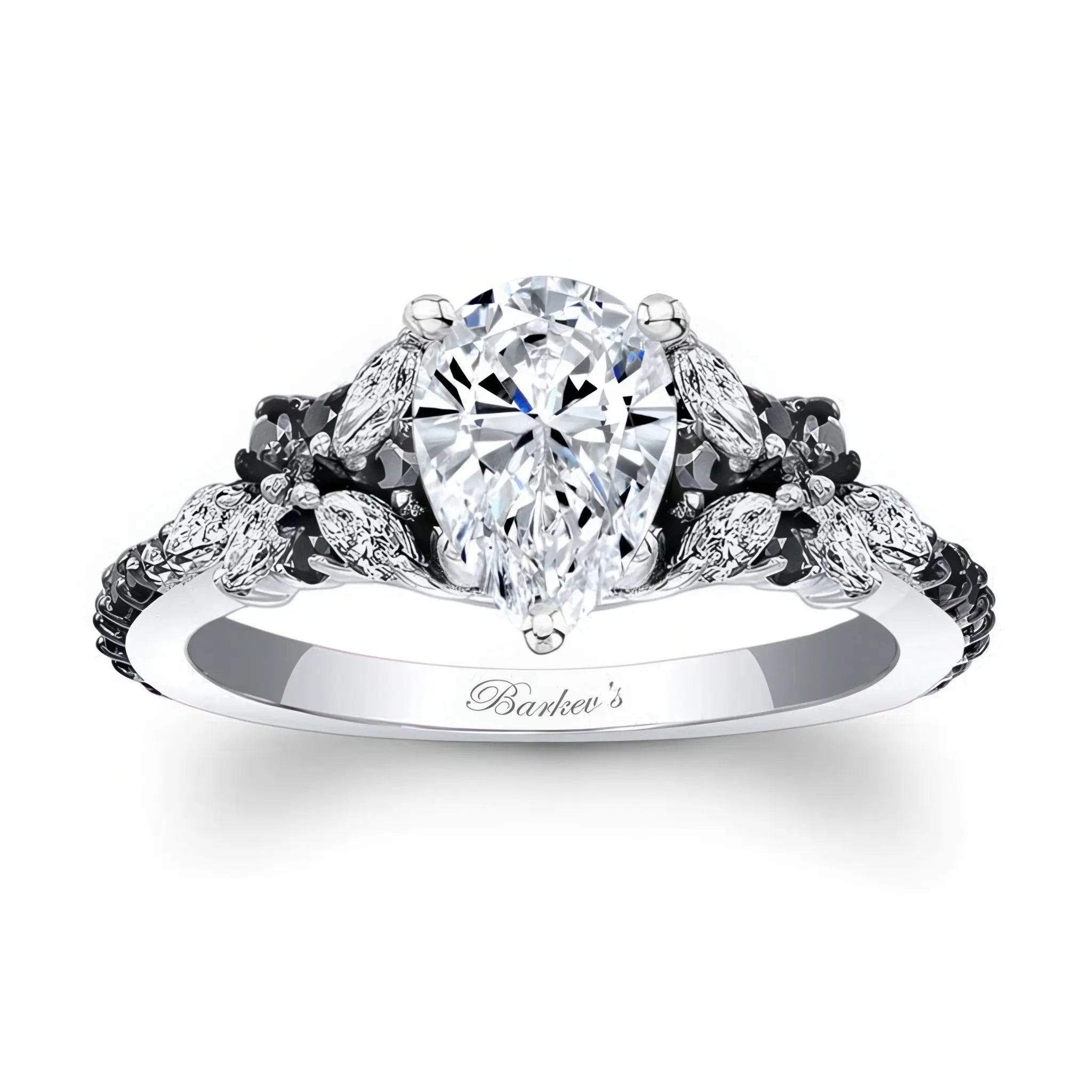 Pear Shape Vintage Moissanite Ring With Black Diamonds