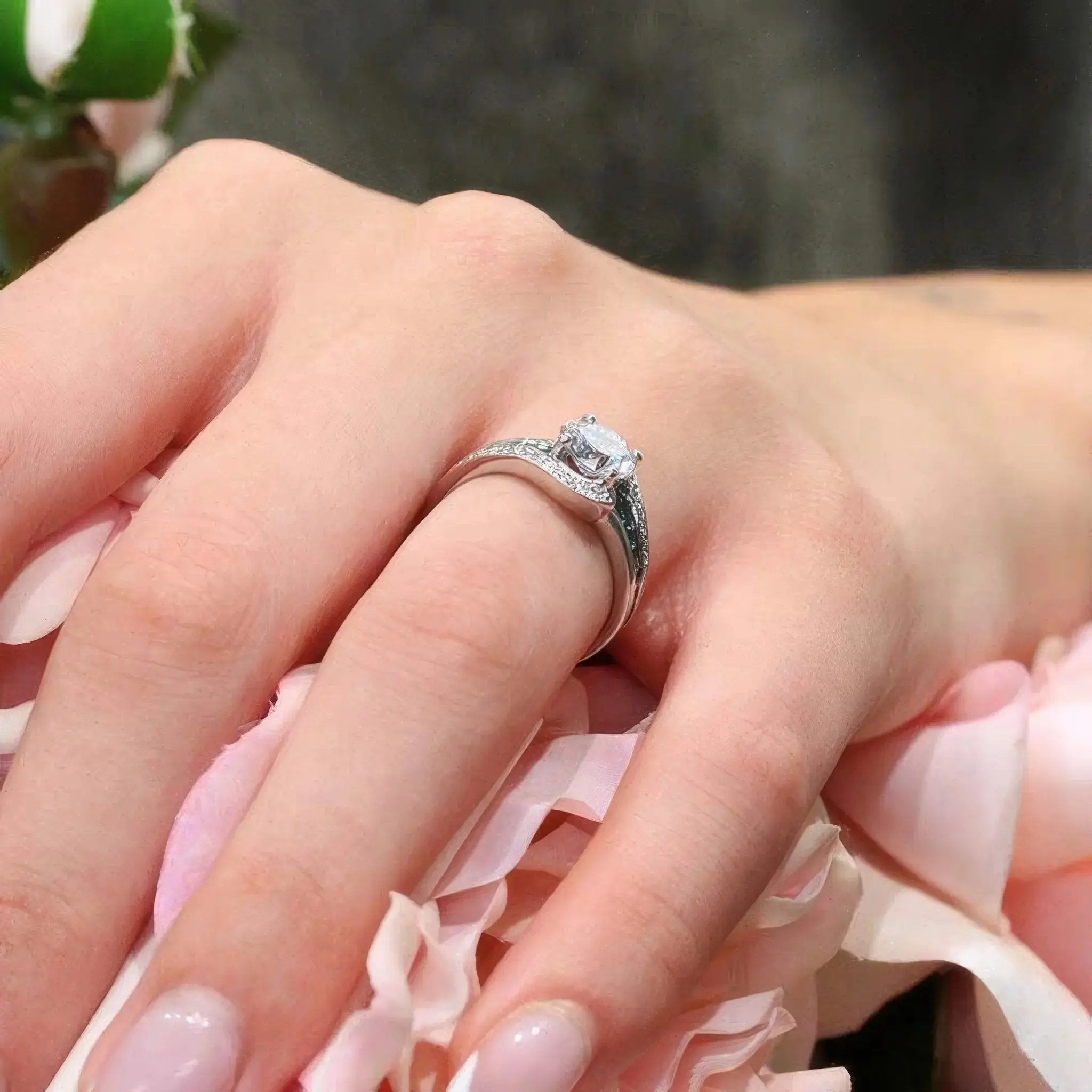 Unique Blue Diamond Accent Moissanite Engagement Ring