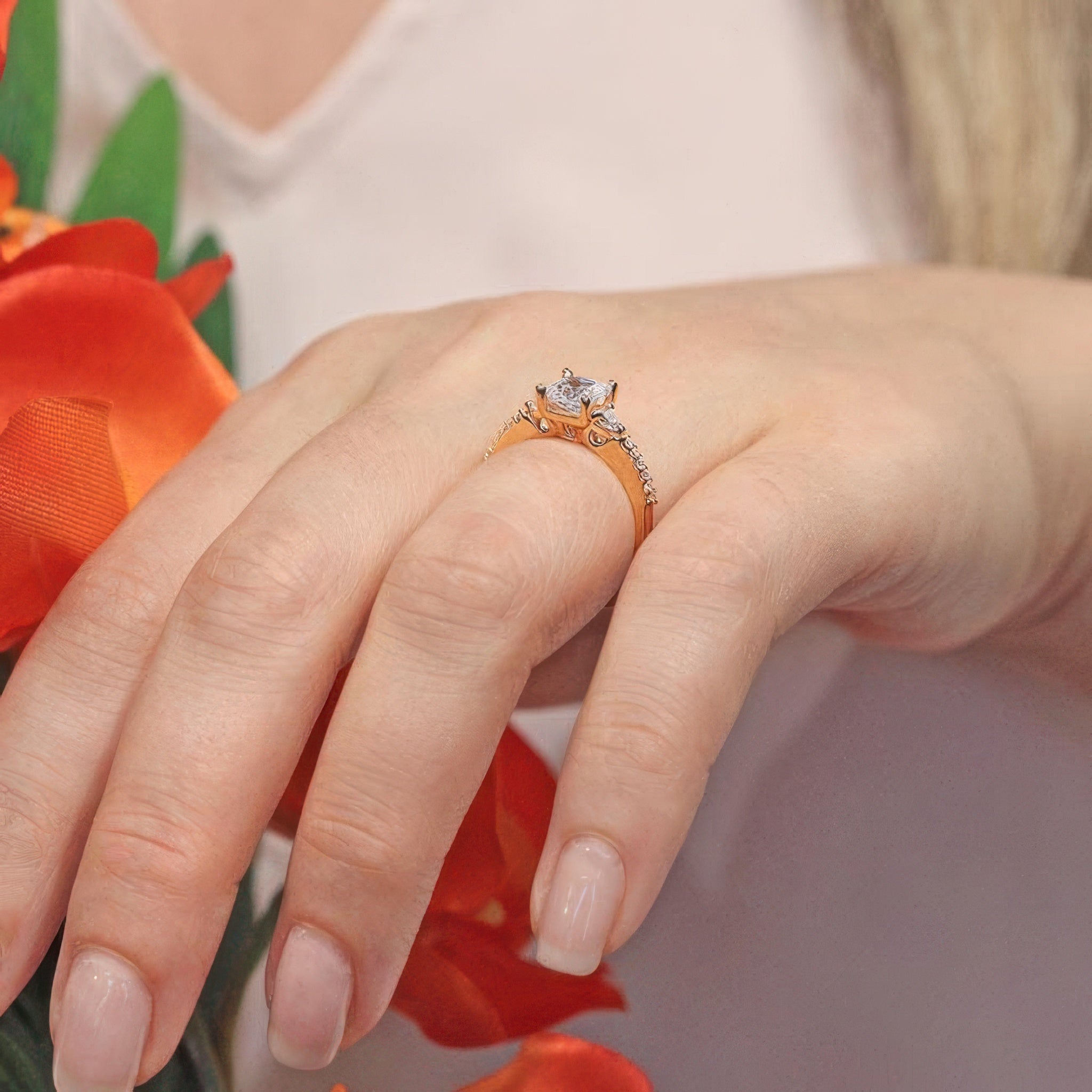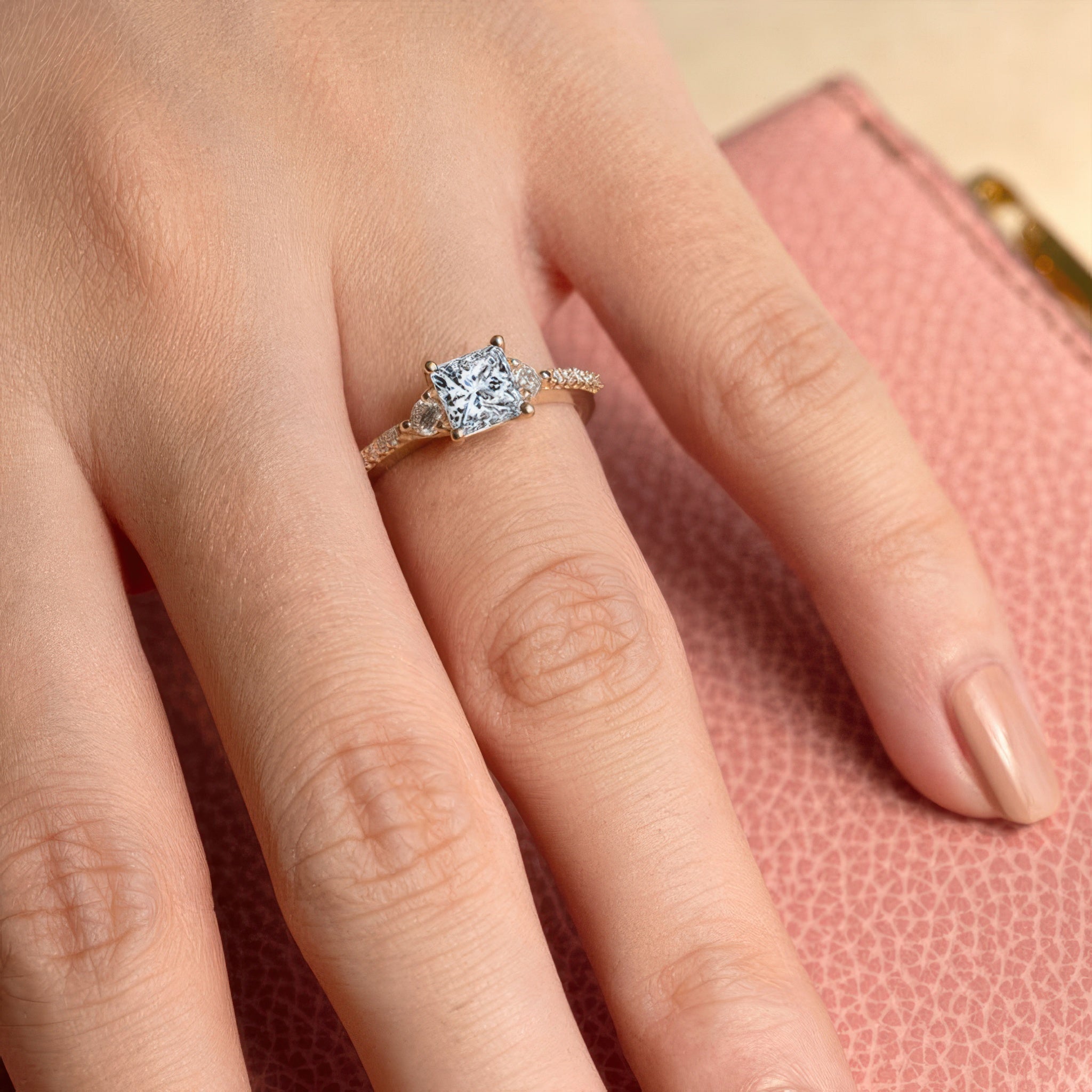 3 Stone Princess Cut Engagement Ring