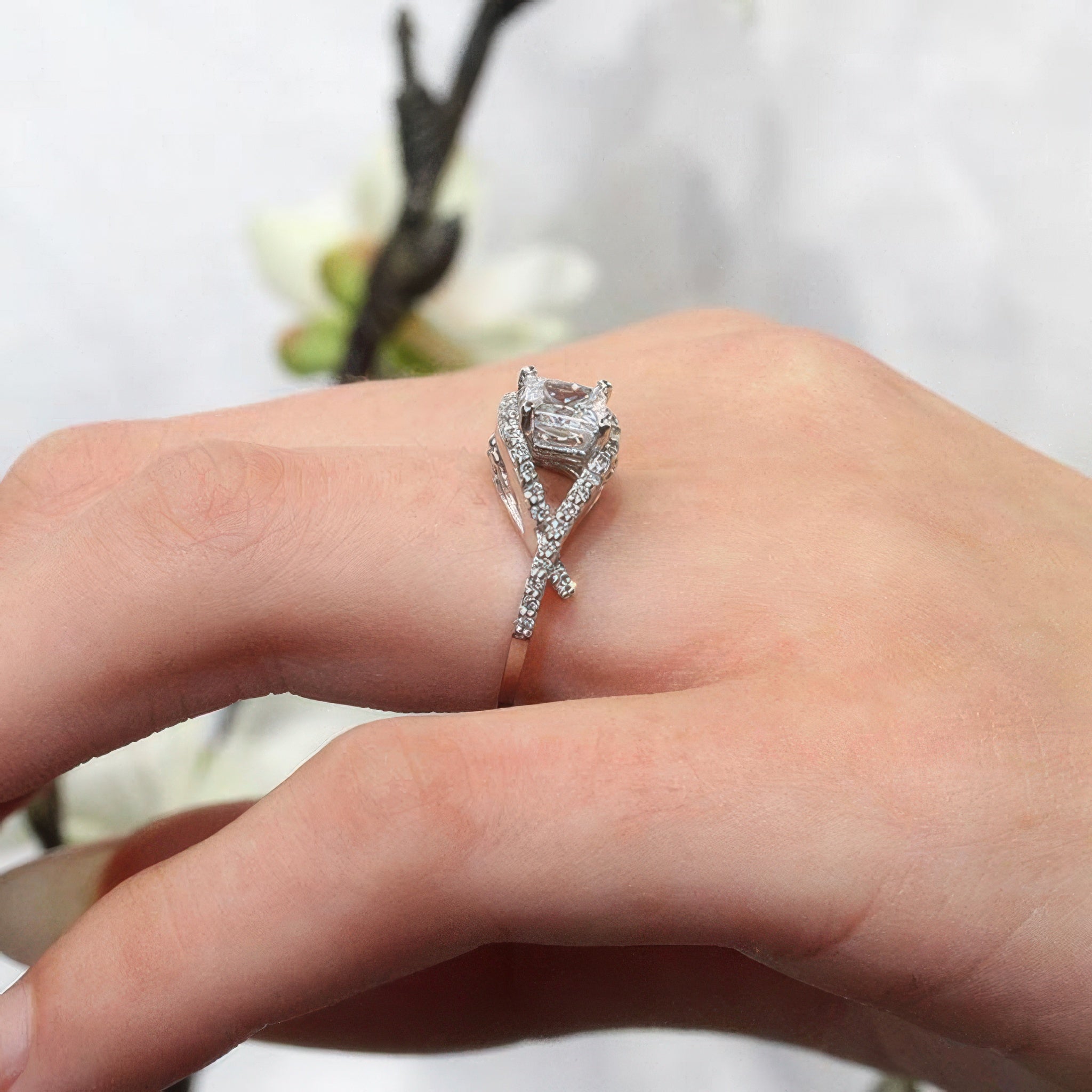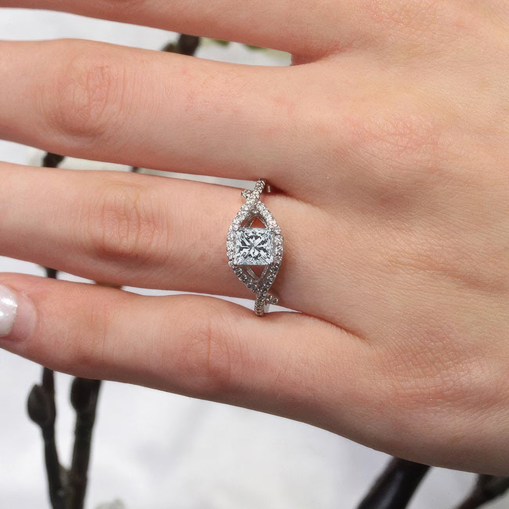 Criss Cross Princess Cut Diamond Ring