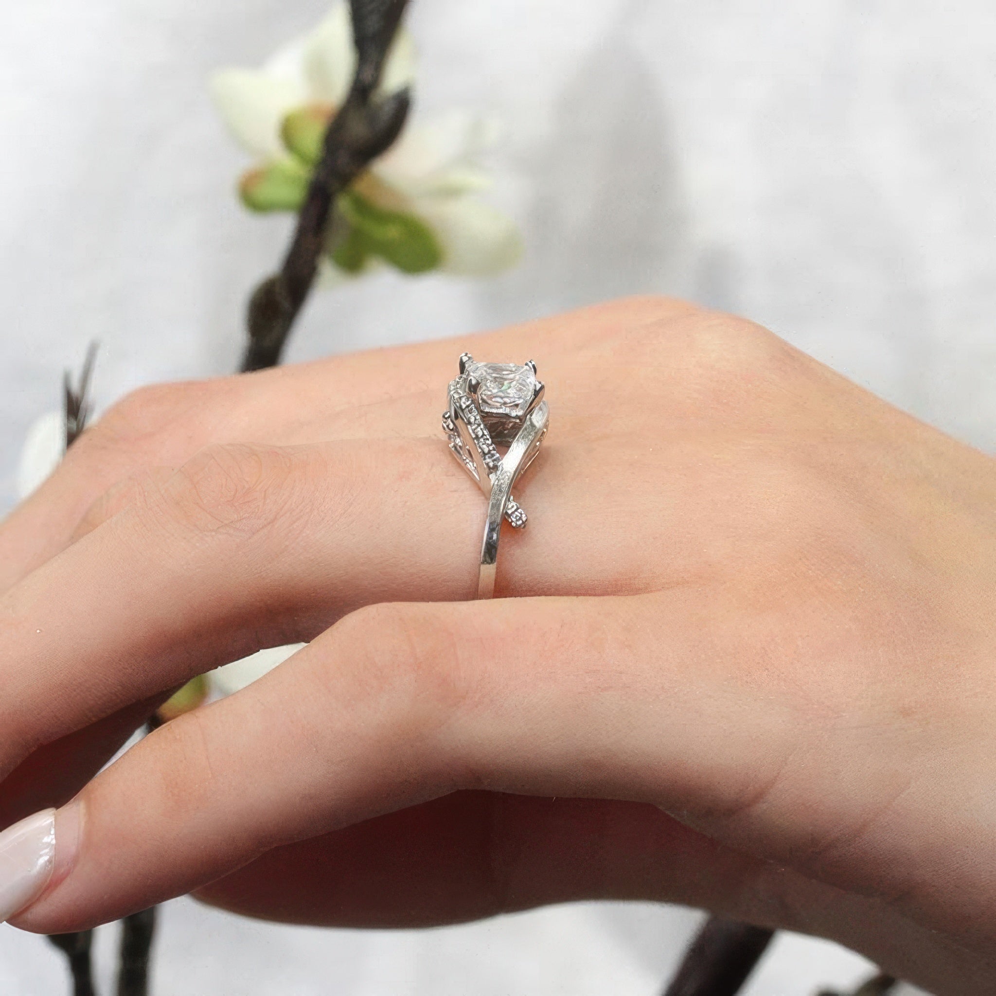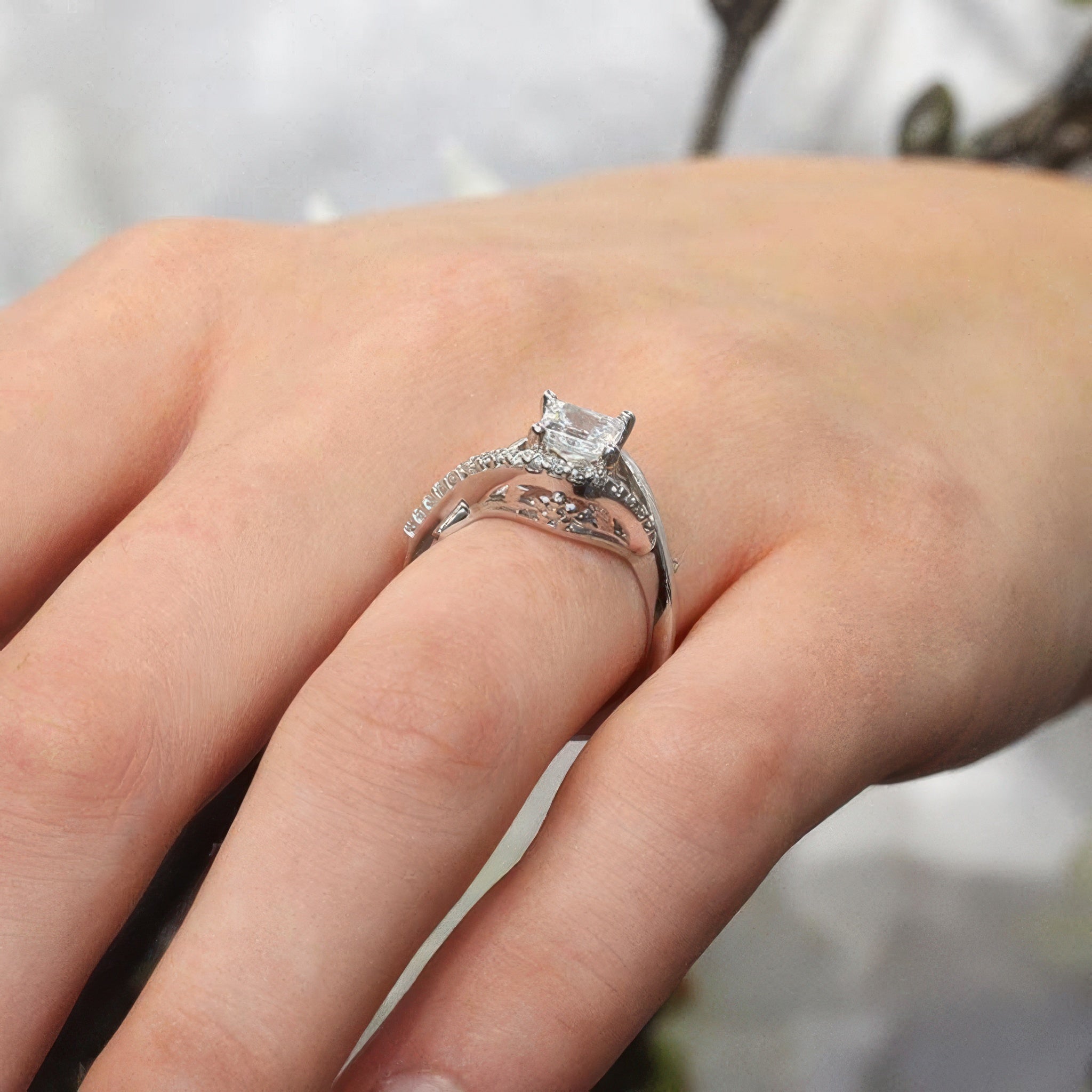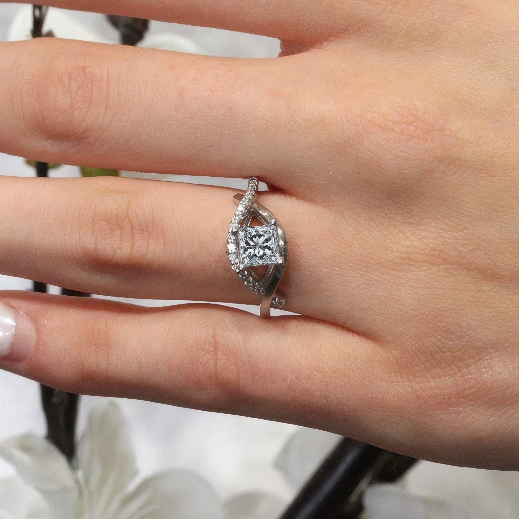 Criss Cross Princess Cut Engagement Ring