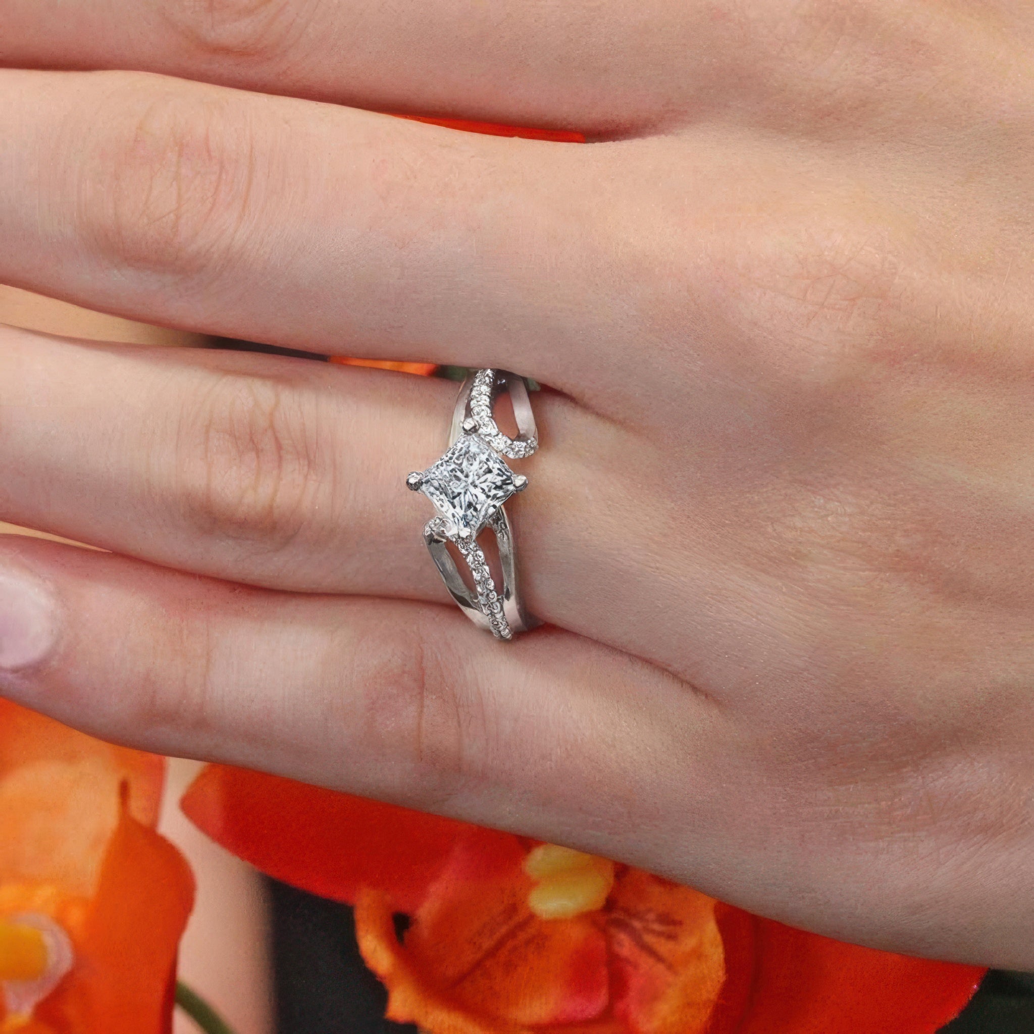 Looping Split Shank Princess Cut Ring