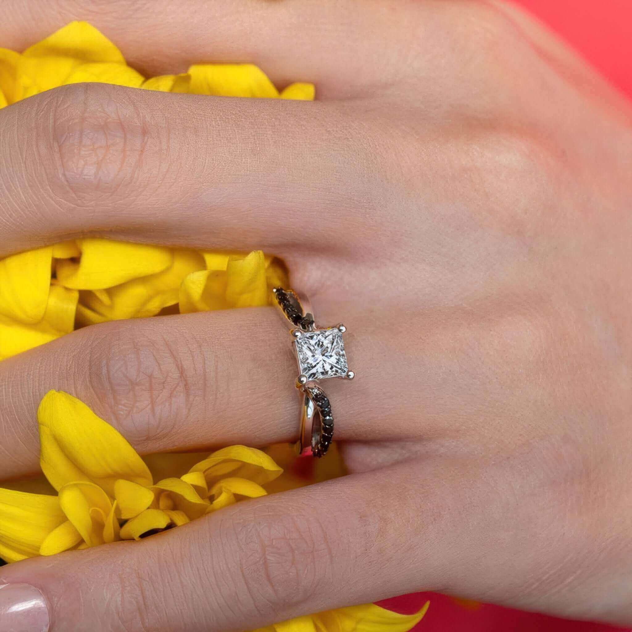 Princess Cut Black Diamond Accent Ring
