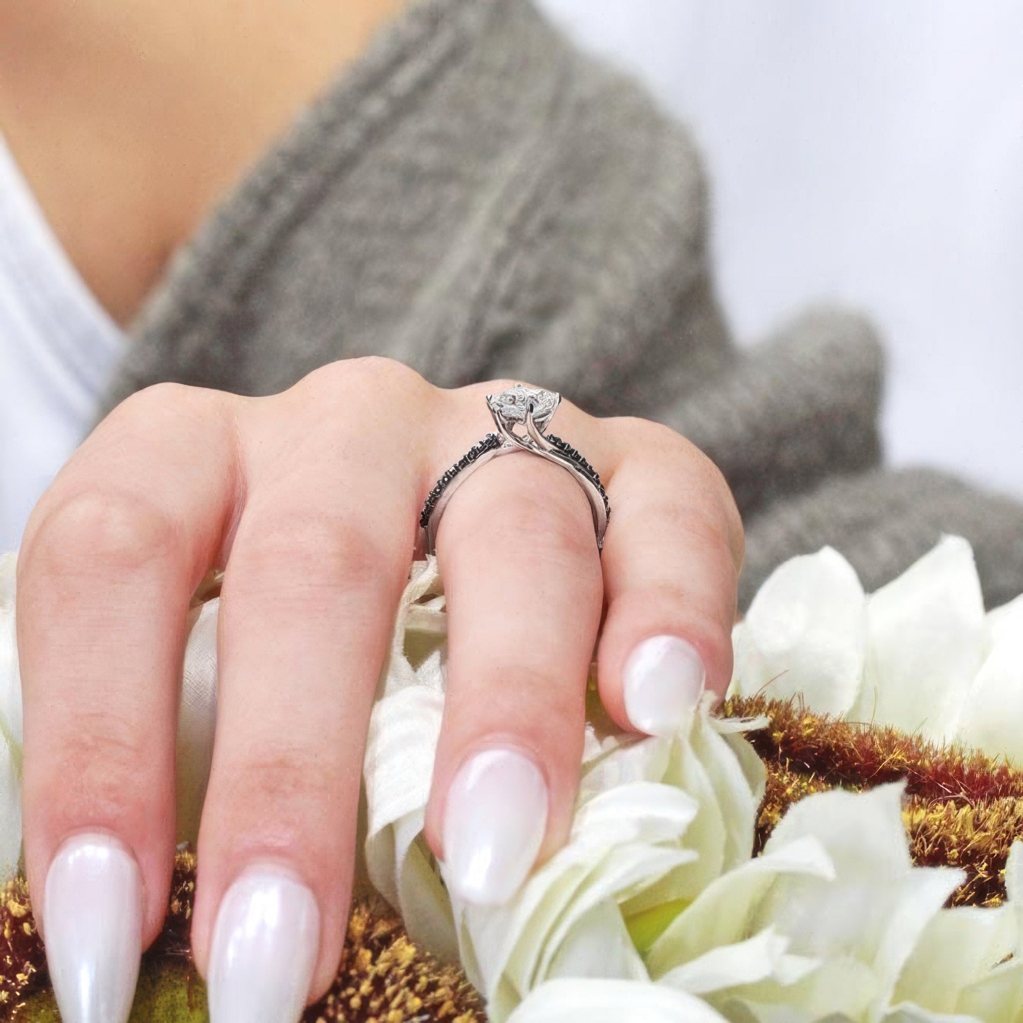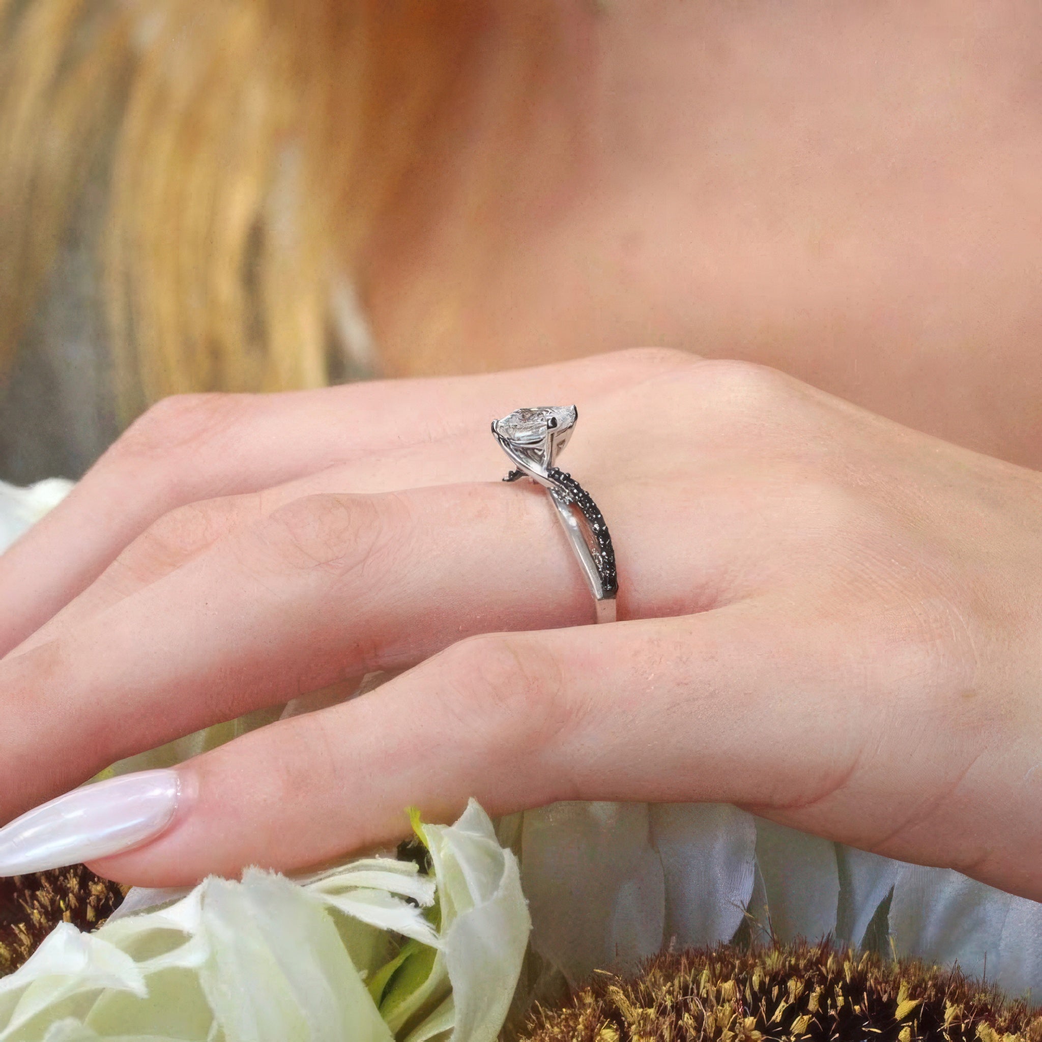 Whether you're drawn to the symbolism of black diamonds or just love the way they look against a bright white center, the Princess Cut Black Diamond Accent Twist Engagement Ring brings uniqueness and sophistication to your forever piece. It's a bold balance of light and shadow—just like your love: brilliant, deep, and unforgettable.