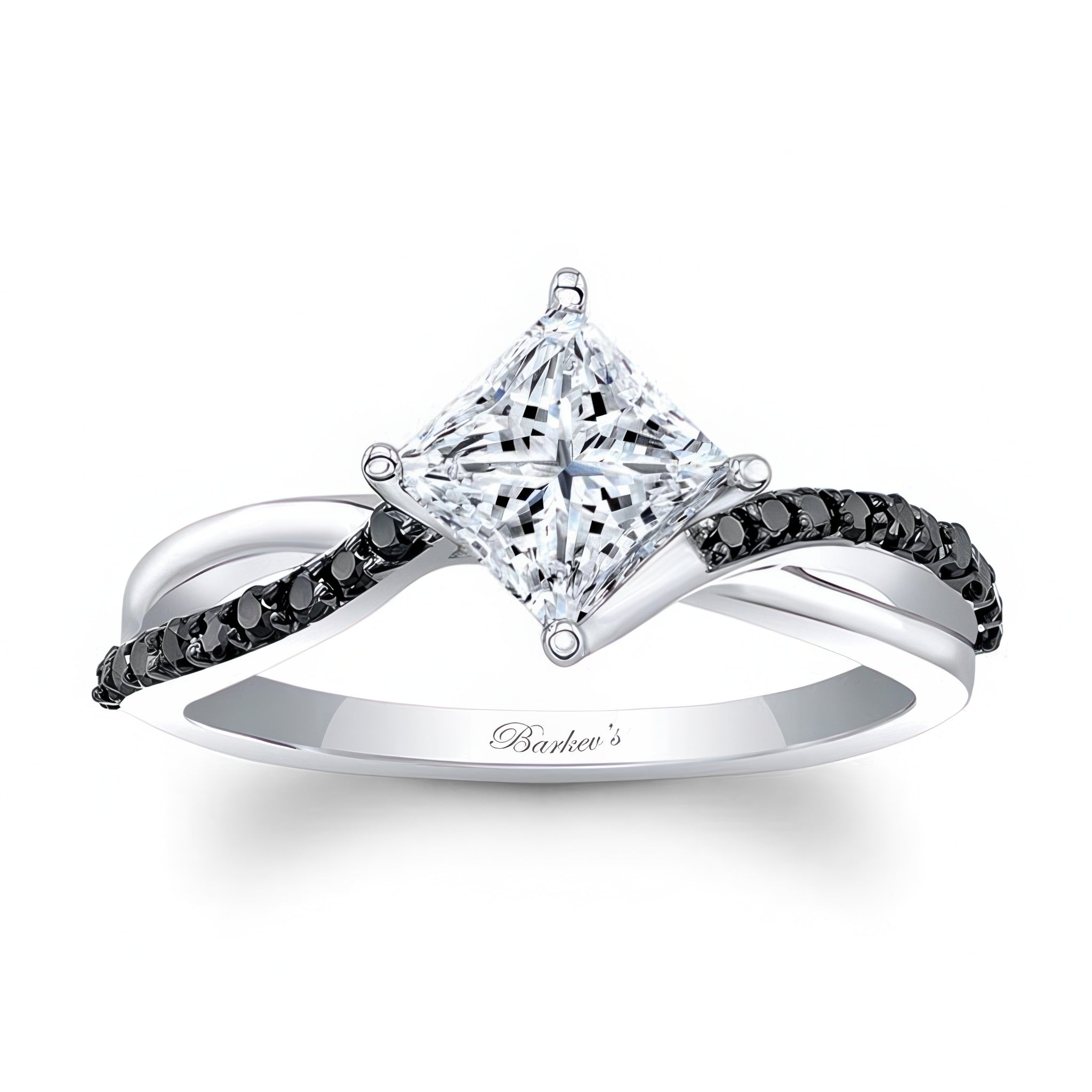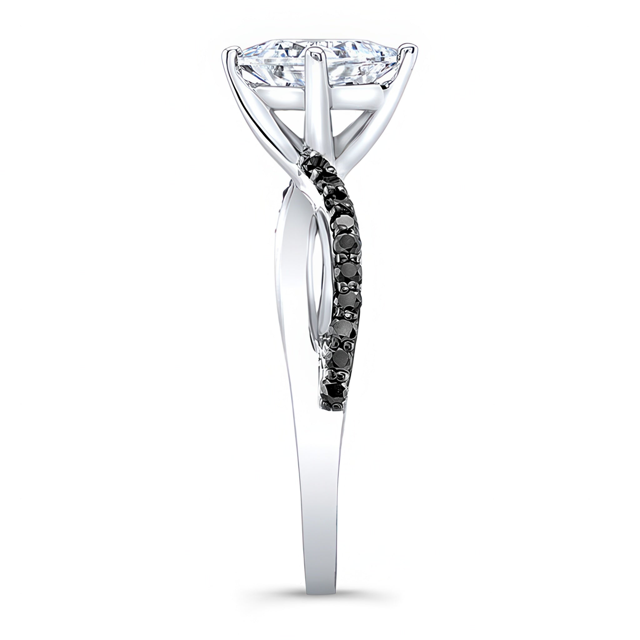 Princess Cut Black Diamond Accent Twist Engagement Ring