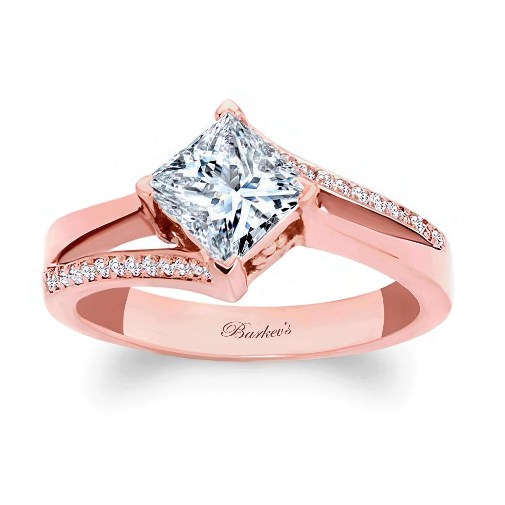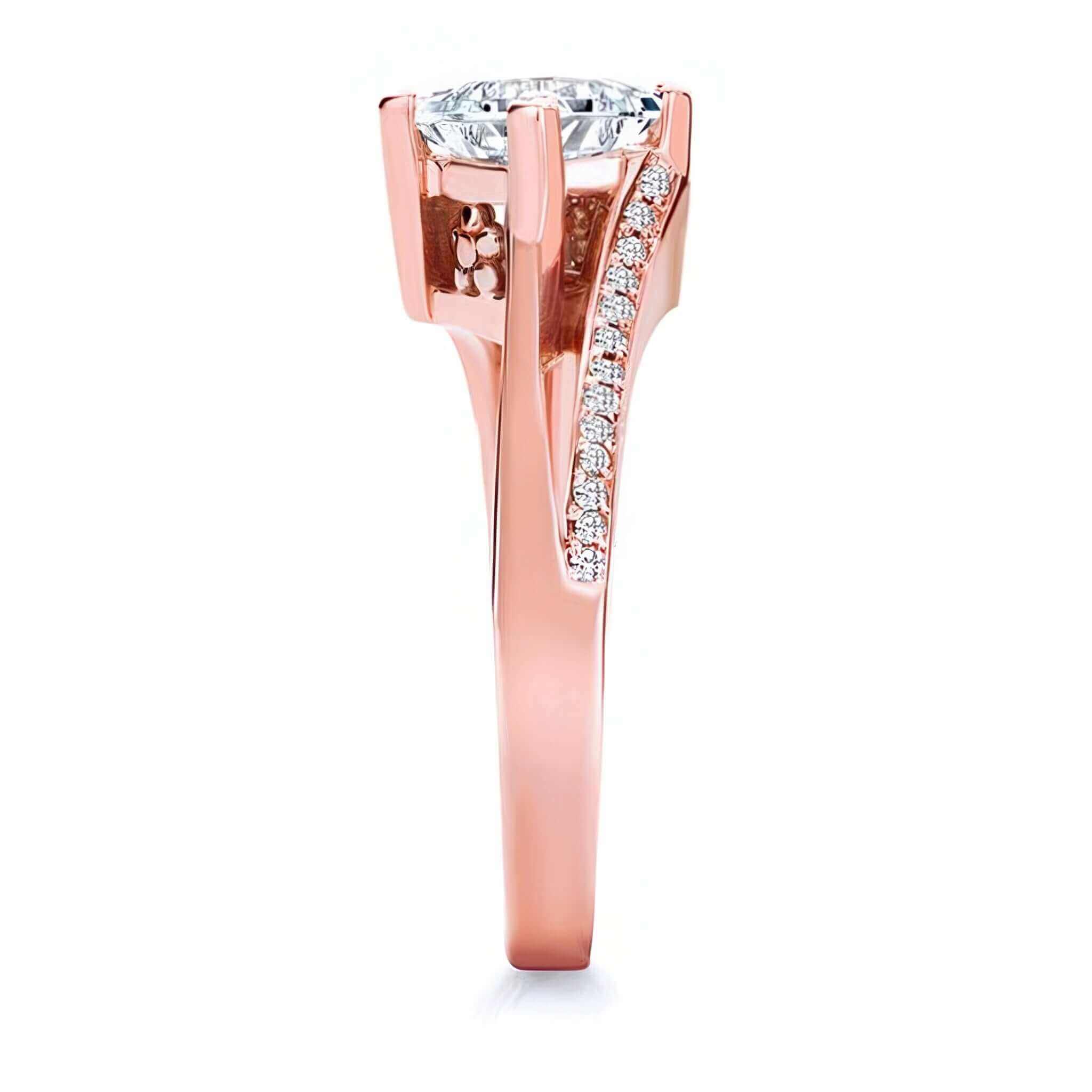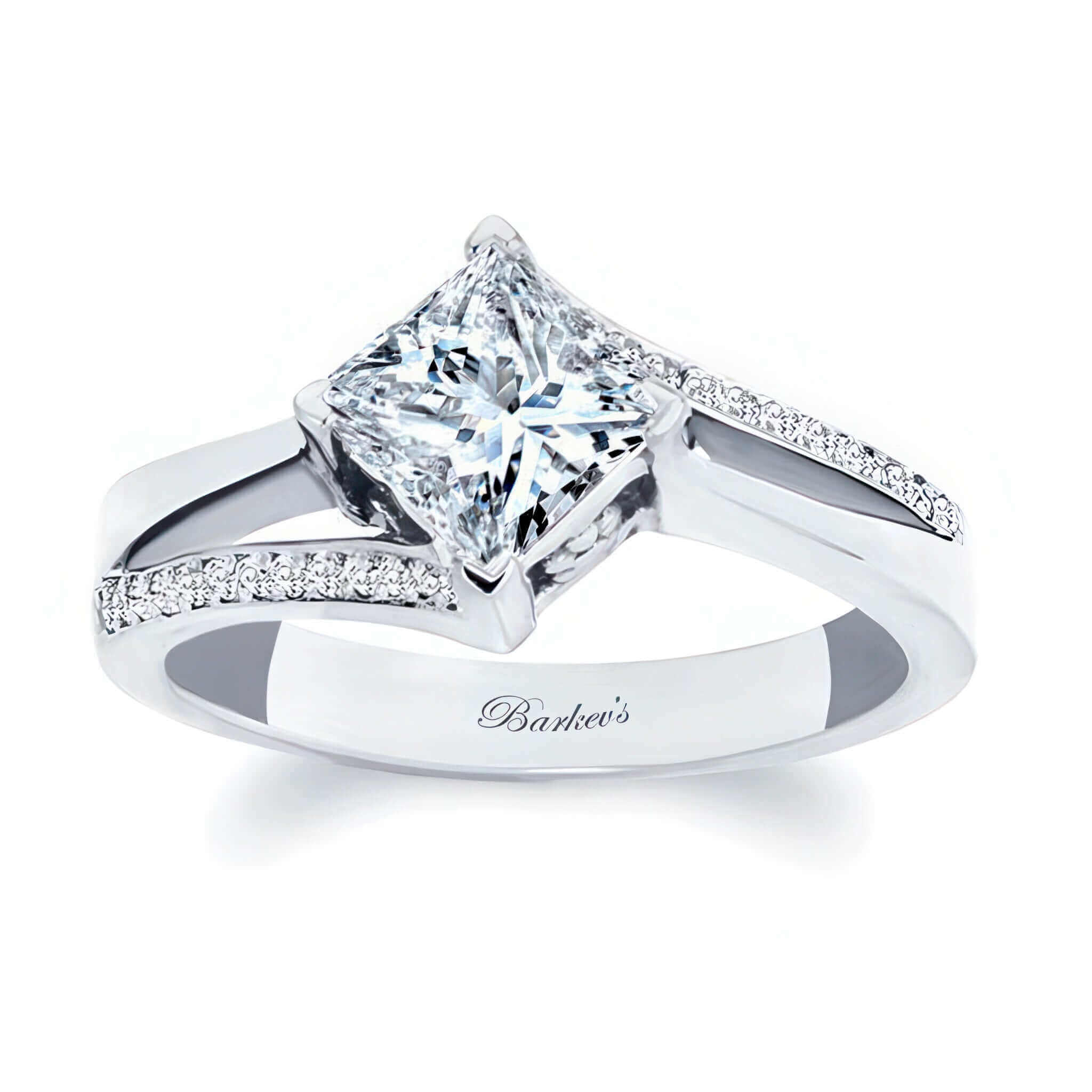 A beautiful princess cut split shank ring featuring a square center and diamond melees on the side.
