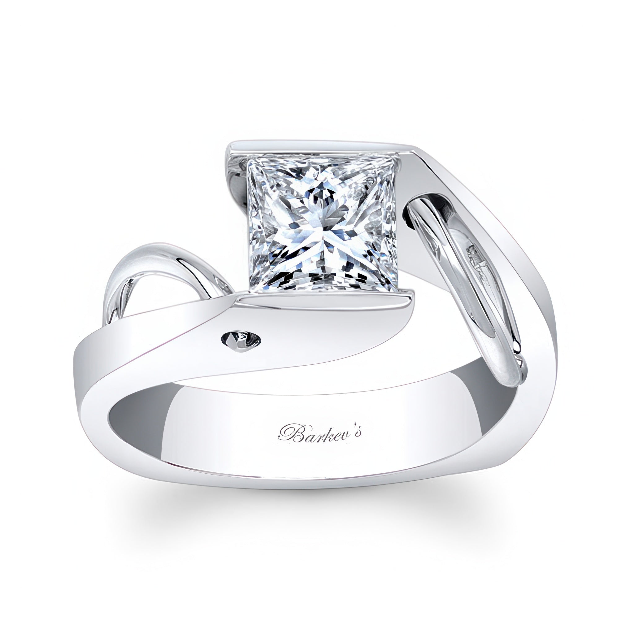 This wire accent princess cut solitaire ring features a channel set princess cut center with a wire accent trim arching up the sides and poking through the shank for a stunning unique look.