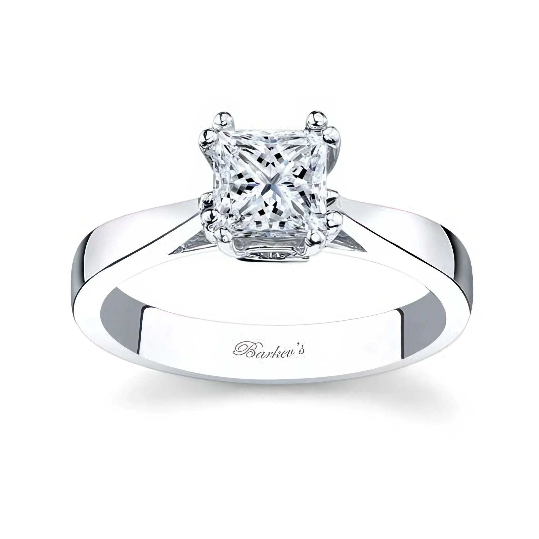 This classic double prong princess cut moissanite solitaire ring features a double prong set princess ut center with a simple tapering shank.