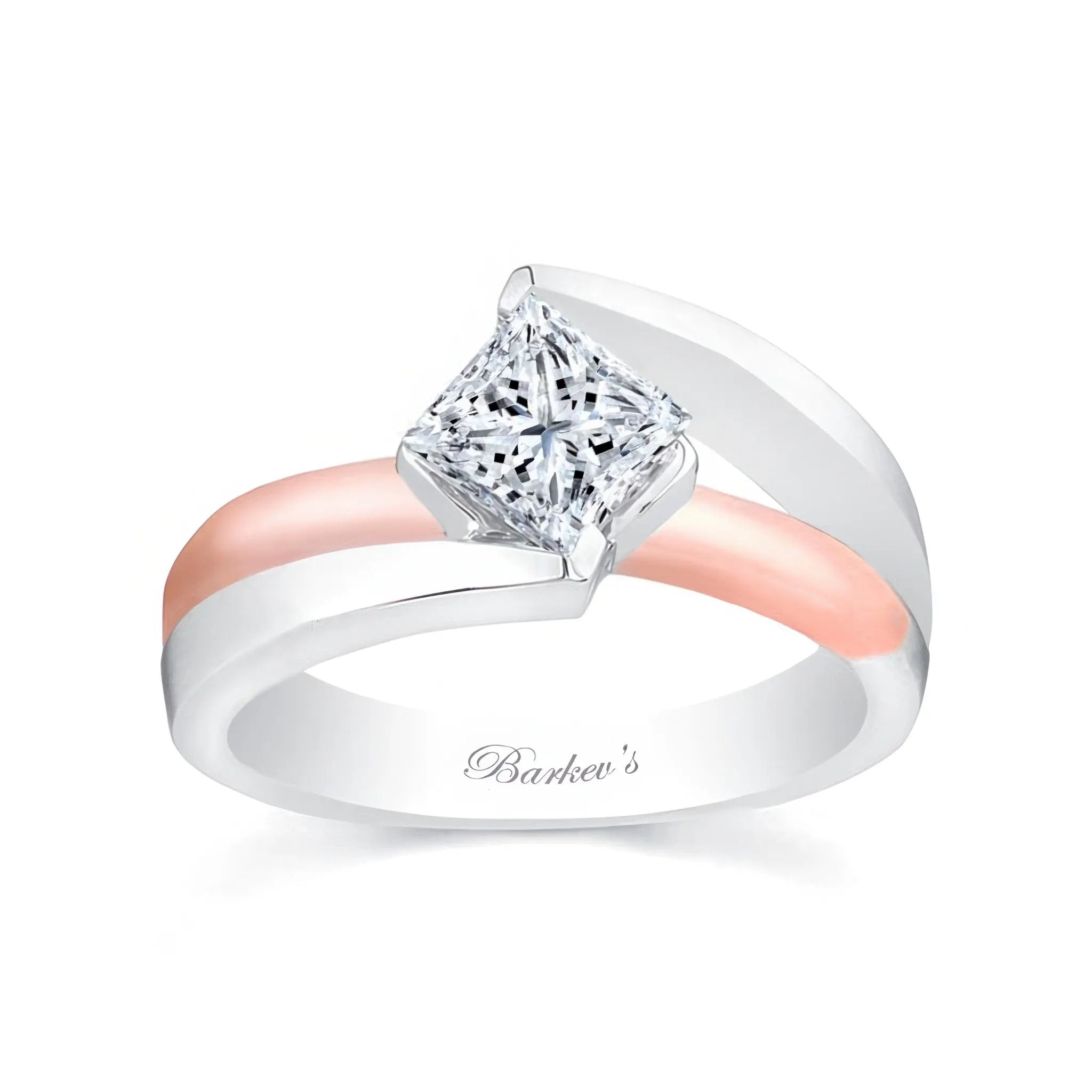 This split shank princess cut moissanite solitaire engagement ring features a half prong set princess cut center with a unique split shank.