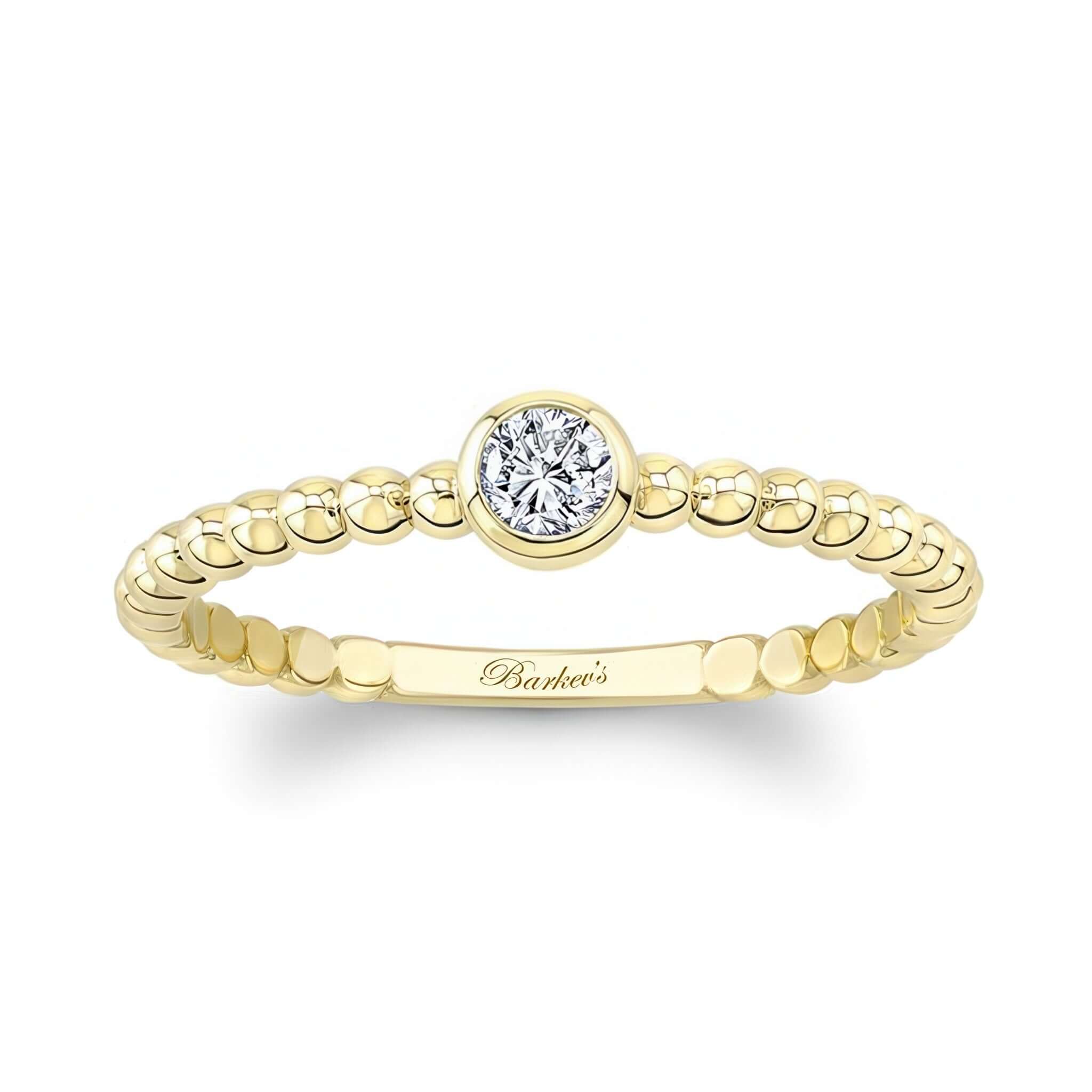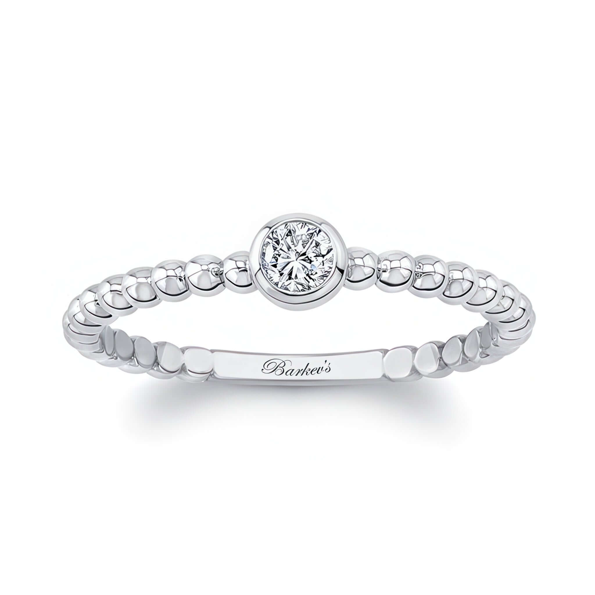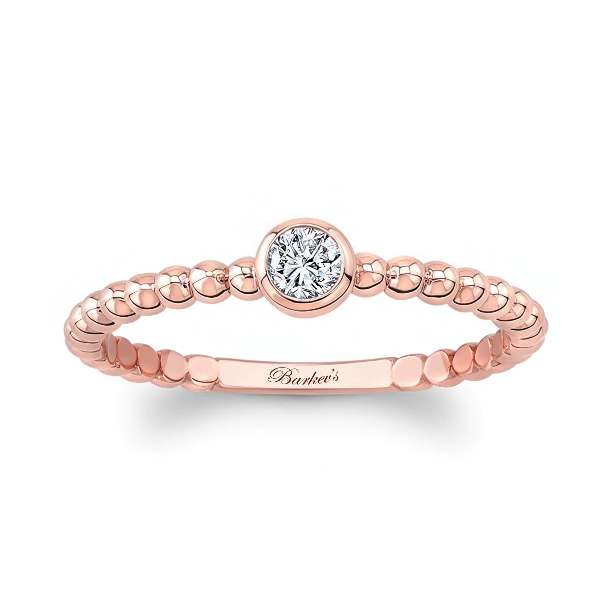 A minimalist promise ring featuring a simple beaded design and a bezel set diamond.