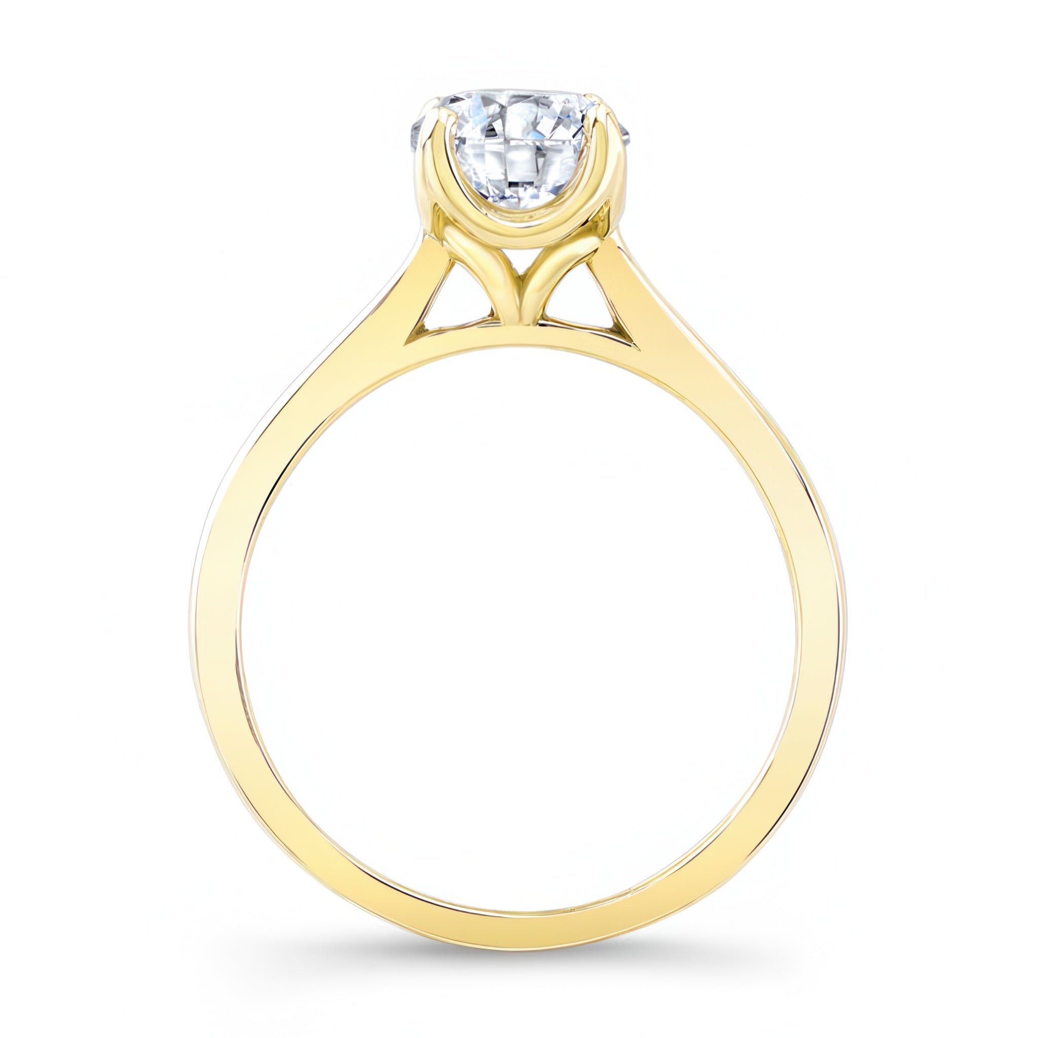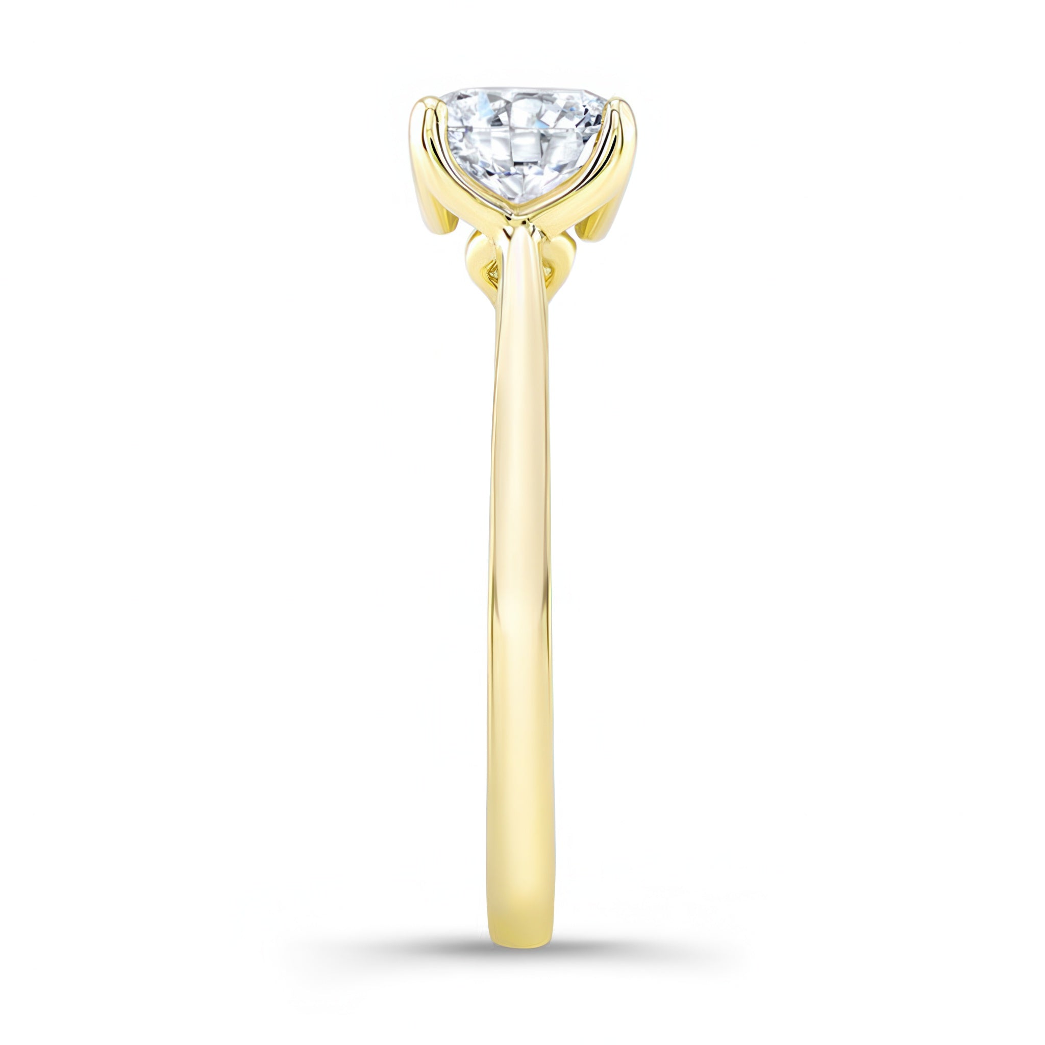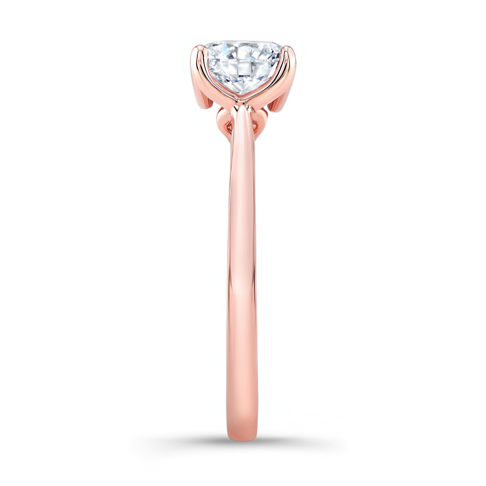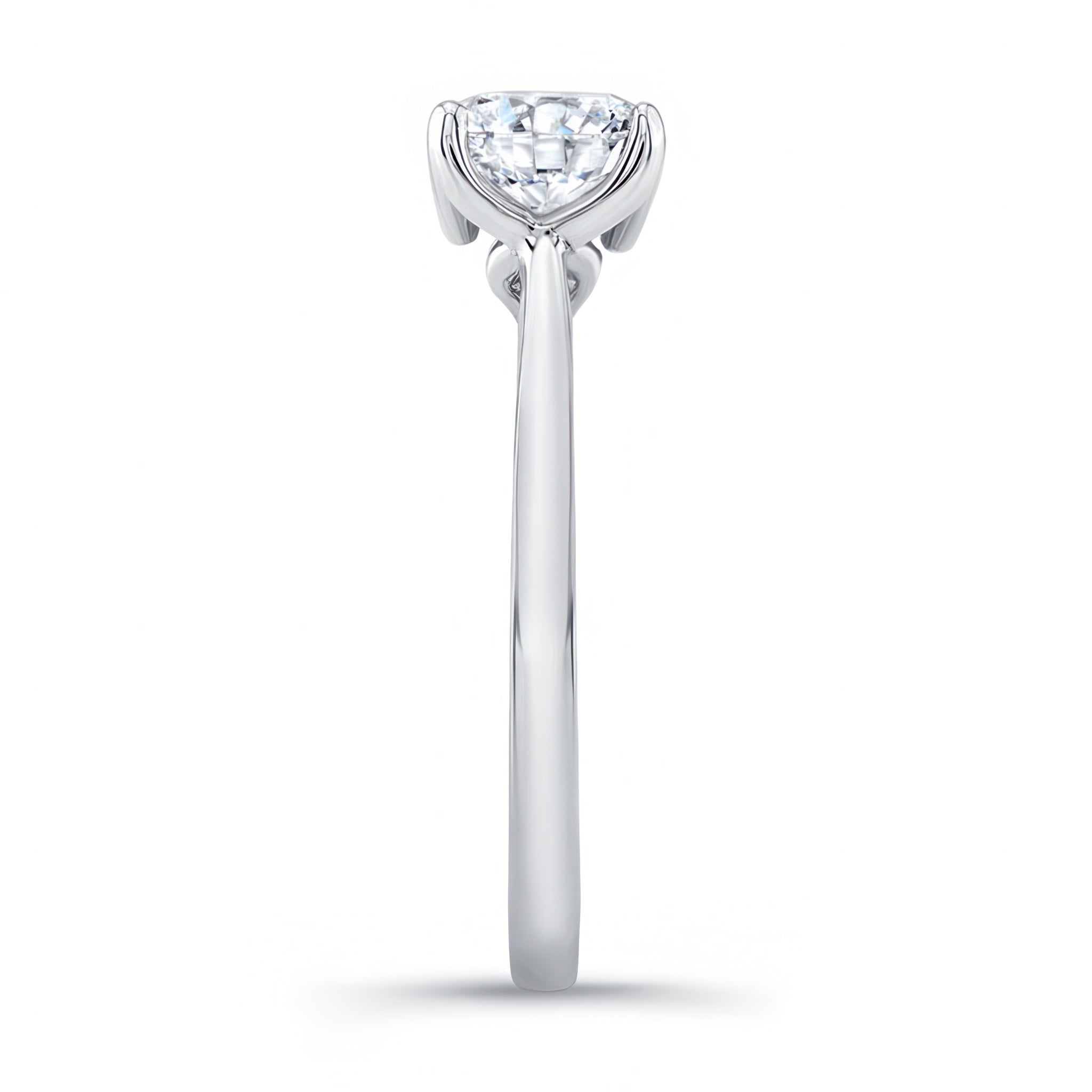 A delicate curved solitaire ring boasting a classic and everlasting design, with a brilliant round center and a beautiful side view.