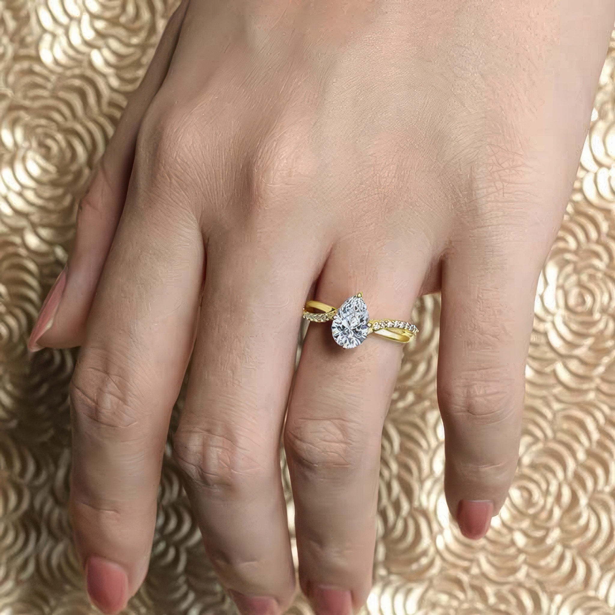 Pear Shaped Engagement Ring With Twisted Band