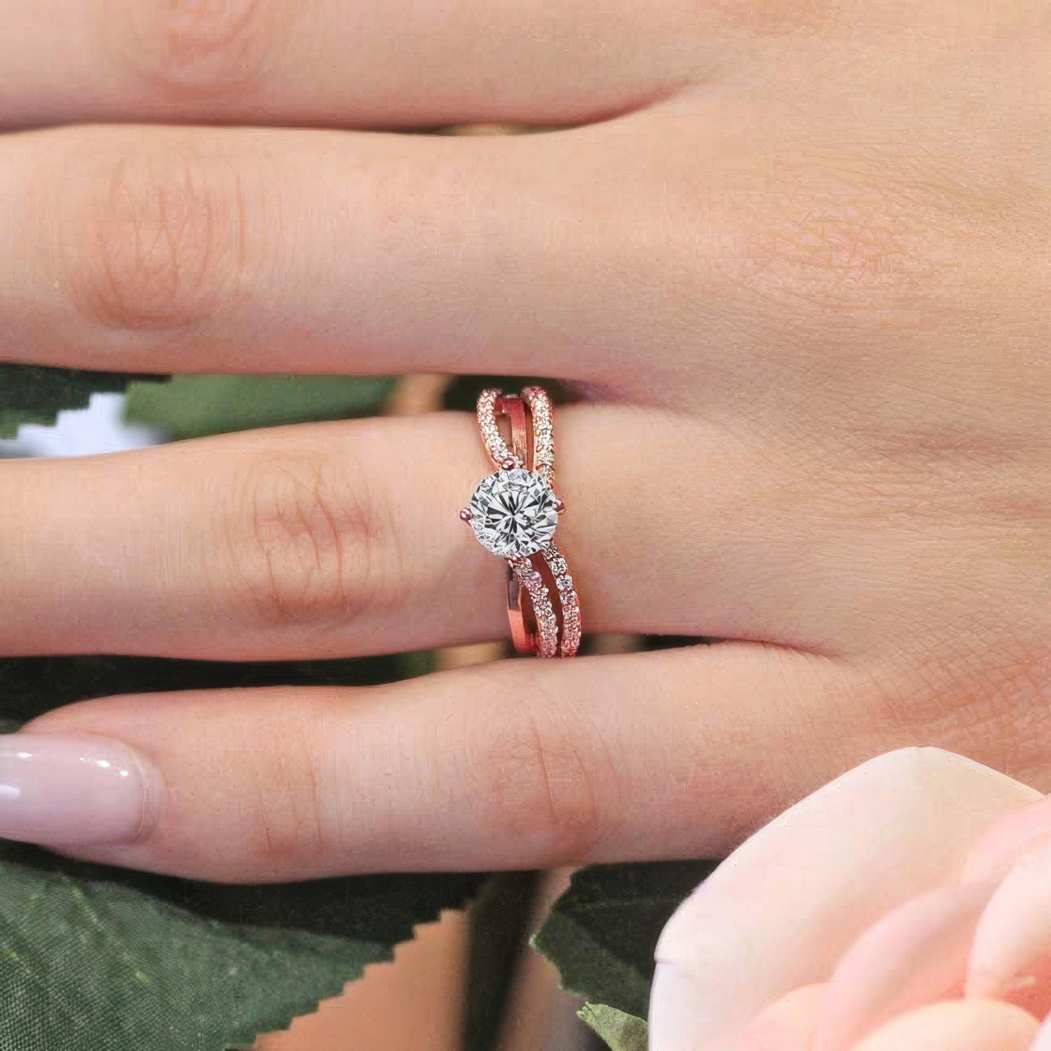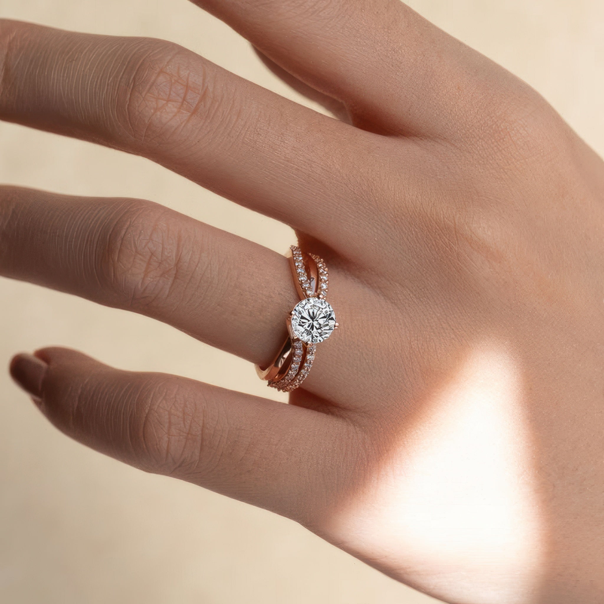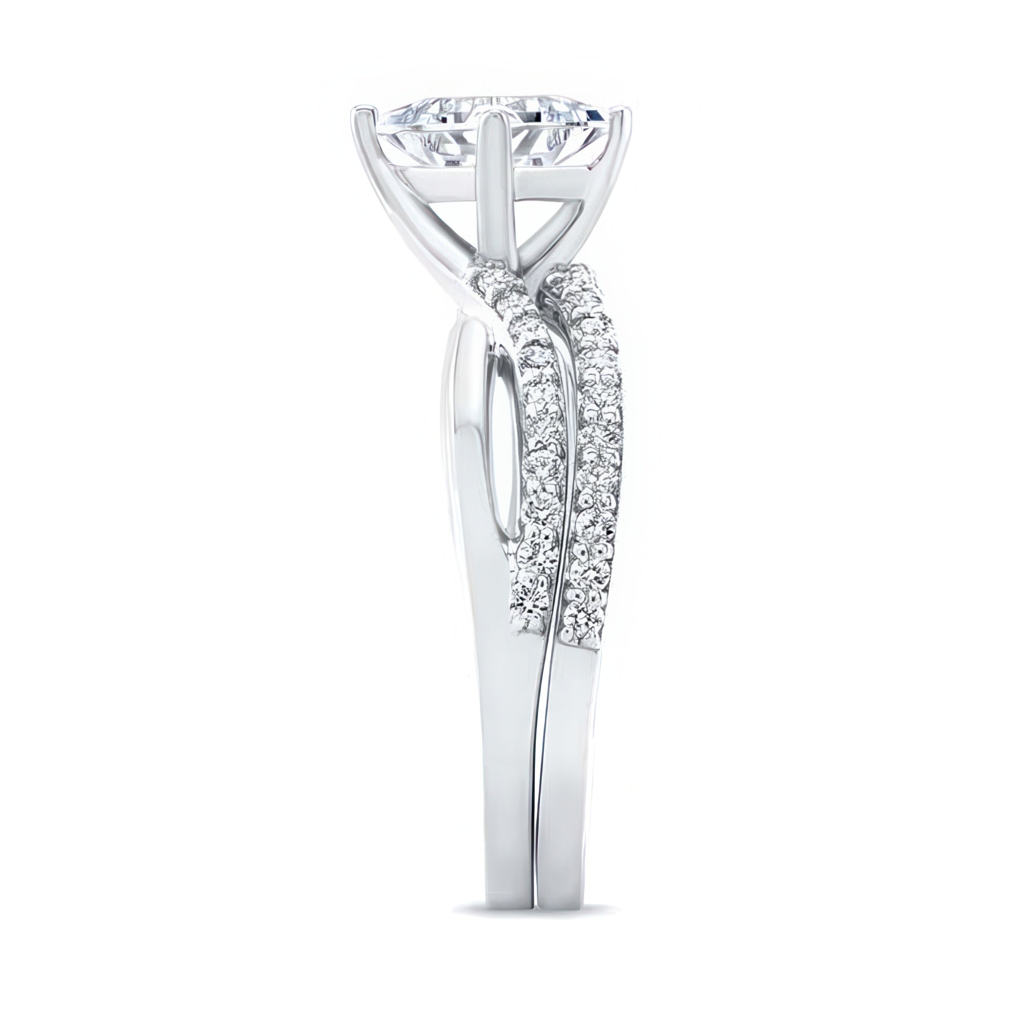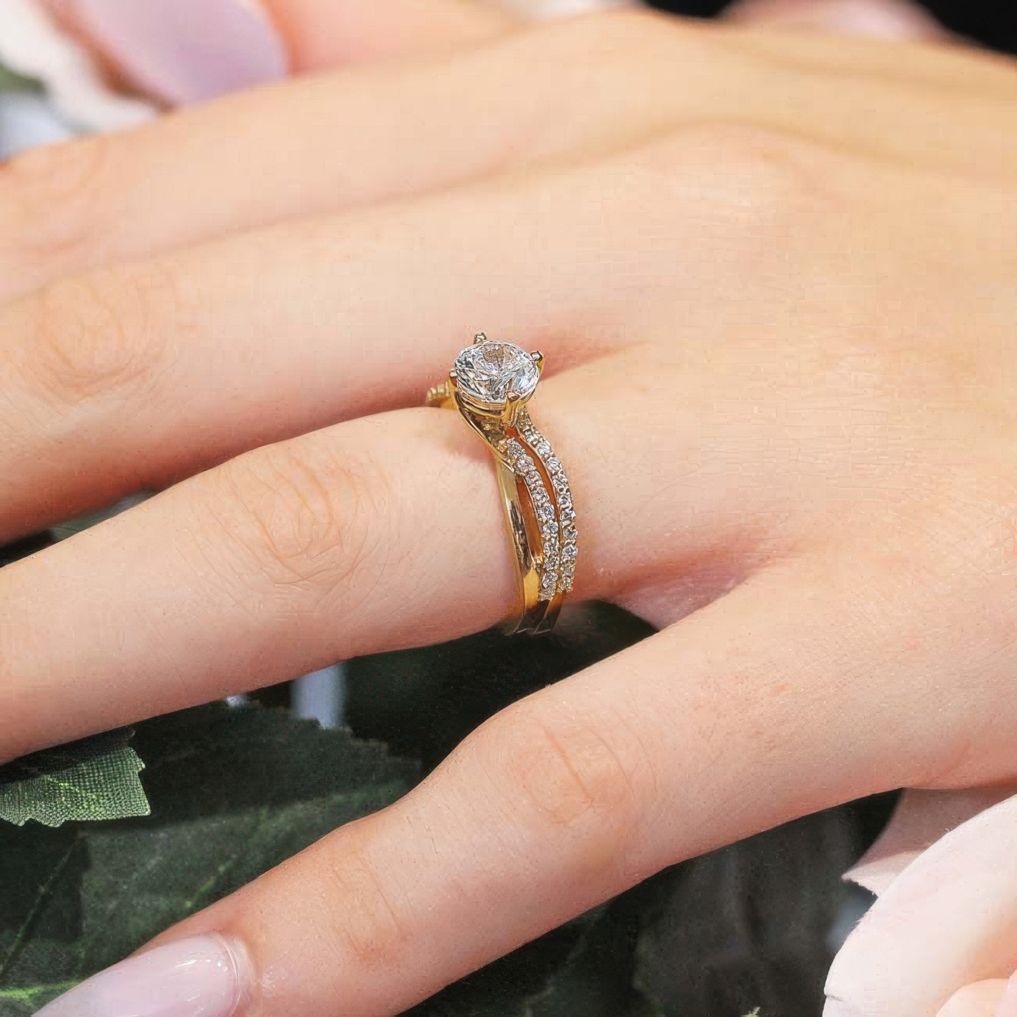 A perfect pair, made to last forever — introducing our Twisted Bridal Set that is designed for movement and minimalism with just the right amount of sparkle. The engagement ring features a brilliant round center stone, embraced by an artful twist that draws the eye and adds dimension.