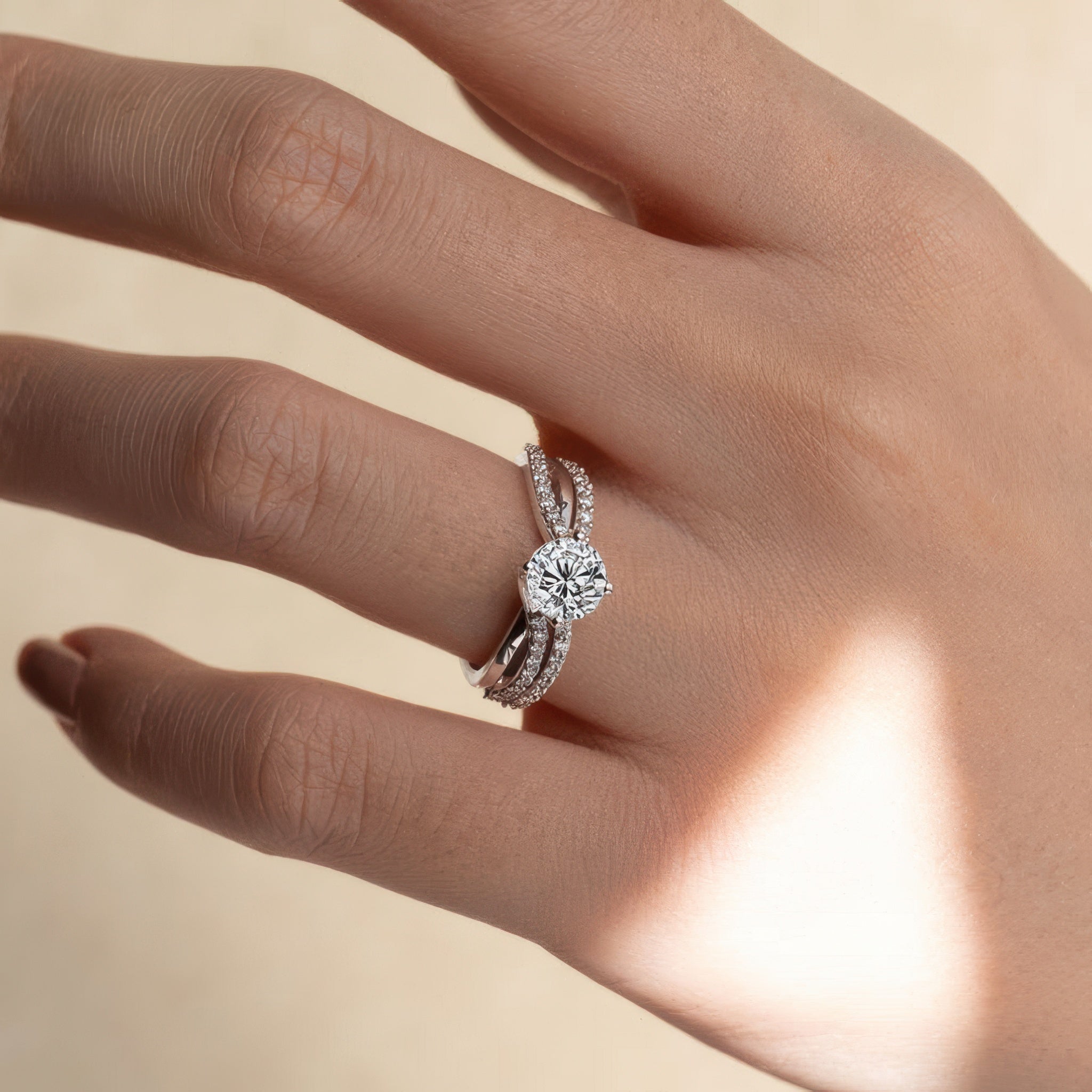 Whether you're drawn to a classic diamond or a gemstone with personal meaning, this twisted design offers versatility, comfort, and style from every angle.